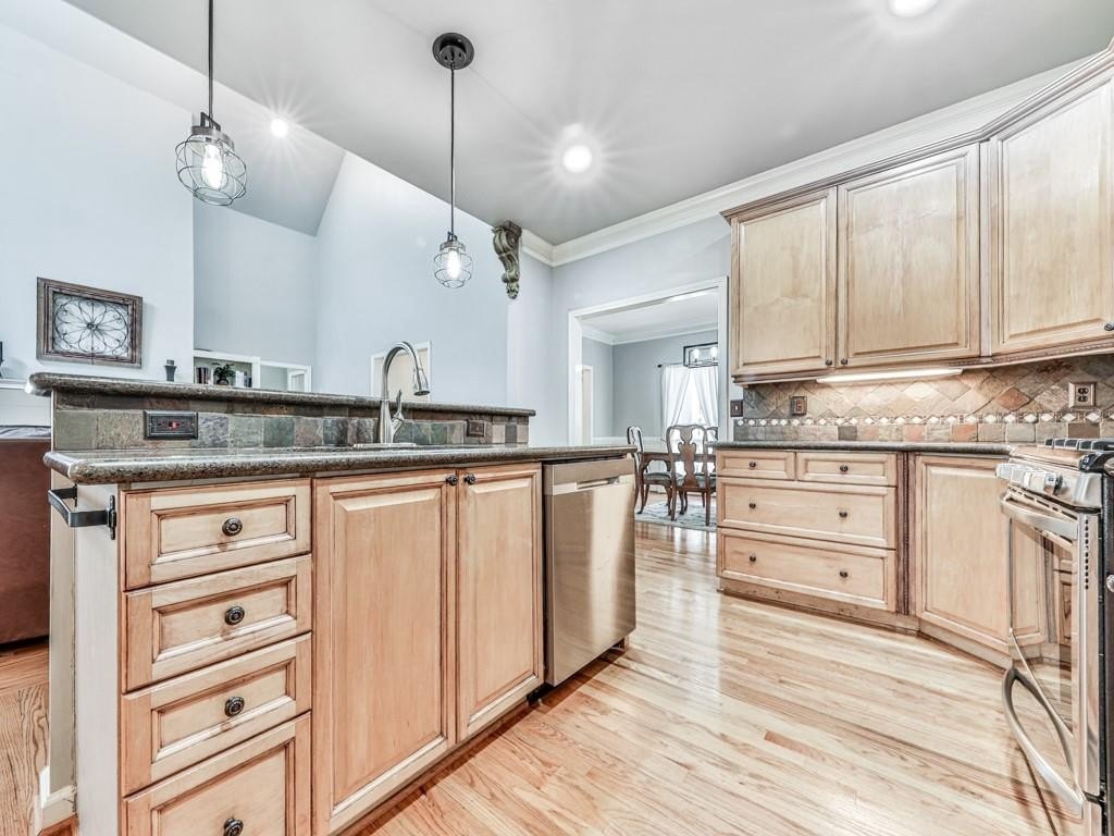 Welcome to your slice of paradise! Nestled in a tranquil setting, this stunning ranch-style home with a finished basement is the epitome of comfort, elegance, and versatility. Perfectly designed for every day living, this residence offers everything you’ve been searching for and more! Enjoy the convenience and luxury of a spacious master suite located on the main level, featuring a beautiful en-suite bathroom and ample closet space for all your wardrobe needs. Prepare to be captivated by the heart of this home – a breathtaking open concept kitchen. Featuring stainless steel appliances, an island with bar seating, and beautiful granite countertops. Custom cabinetry provides ample storage, while the stylish backsplash adds a touch of sophistication. Positioned adjacent to the kitchen, the spacious dining area is perfect for hosting festive dinner parties or enjoying casual weeknight meals. Step into the heart of the home, where a vaulted ceiling creates an airy, open ambiance. Gather around the cozy fireplace on chilly evenings or host unforgettable gatherings with friends and family in this inviting space. Need a home office or a creative space? This flexible bonus room on the upper floor is perfect for remote work, hobbies, or even a playroom—the possibilities are endless! Bask in natural light year-round in the charming oversized sunroom, a perfect spot for your morning coffee or afternoon reading while enjoying views of your lush backyard. This home also boasts three additional well-appointed bedrooms, a full bathroom with modern finishes, a dedicated laundry room, and a two-car garage. Step outside to your private paver patio, adorned with a gorgeous pergola, ideal for outdoor dining or relaxing under the stars. The serene creek, complete with a picturesque walking bridge, adds a touch of tranquility to your outdoor experience. The fully equipped 2 bedroom basement apartment with a kitchen, full bath, laundry, private entrance and dedicated parking is a rare find! This space is perfect for hosting guests or generating rental income, providing both comfort and financial flexibility. Situated in a friendly community, you’ll enjoy the perfect blend of privacy and accessibility. Experience the best of both worlds, with nature trails nearby and shopping, dining, and entertainment just a short drive away.