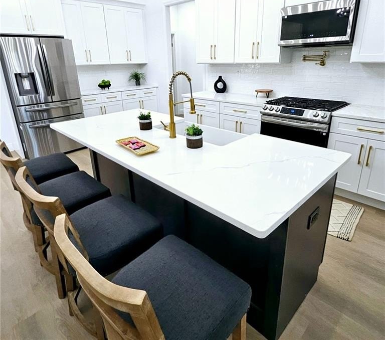 Welcome to this new custom made, and luxurious craftsman home. It has all you need and more. Designed for comfort and style. Built with three sided brick, architectural roof and side entry garage. Inside, you will have the dining room that can accommodate lots of family and friends. The guest room/office next to it, is a multi use room with modern double doors you can use for privacy and has a meticulously custom made accent wall. Living room has an open concept with a modern fireplace and beautiful cathedral ceilings, seamlessly flowing into the kitchen which has lots of upgrades ready for any occasion. It has Calacatta countertop, farmhouse sink, soft close cabinets, oversized island, pot filler, and stainless steel Samsung appliances. This home boasts 6 bedrooms 3.5 baths. Very spacious rooms throughout, along with tiled bathrooms. Master room on main level has beautiful accent wall with lot of natural lighting. Master bath is tiled, together with double vanity, double rain shower with a separate freestanding tub. Master closet is also very spacious with custom made dividers to keep your closet organized. Upstairs, you will have two separate rooms for more privacy or to use as entertainment room. The entire home has LVP waterproof flooring, modern touches and elegant accent walls. The beautiful covered front porch and back porch will make you want to unwind after a long day. Come and see it yourself !