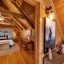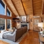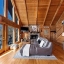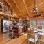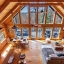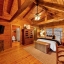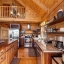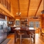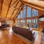 Inside, the great room immediately impresses with soaring cathedral ceilings, exposed beams, and a beautiful stone wood-burning fireplace. Floor-to-ceiling windows bring in lots of natural light while framing the breathtaking scenery outside. Whether you’re relaxing with family or entertaining guests, this space creates the ultimate mountain lodge feel.