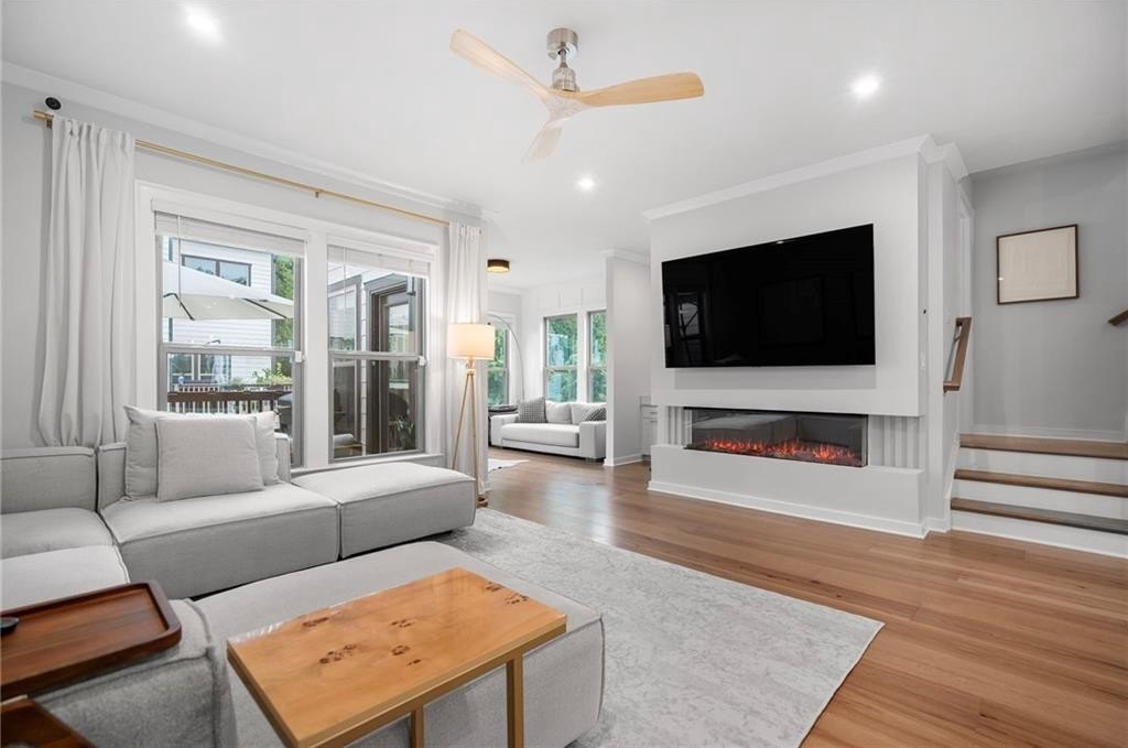 Sophistication starts at the front door, with rich hardwood floors and elegant architectural details that create a warm, elevated tone that flows throughout the entire house. Thoughtful custom accent walls add dimension and personality to every room, while curated lighting fixtures bring a stylish, elevated feel.