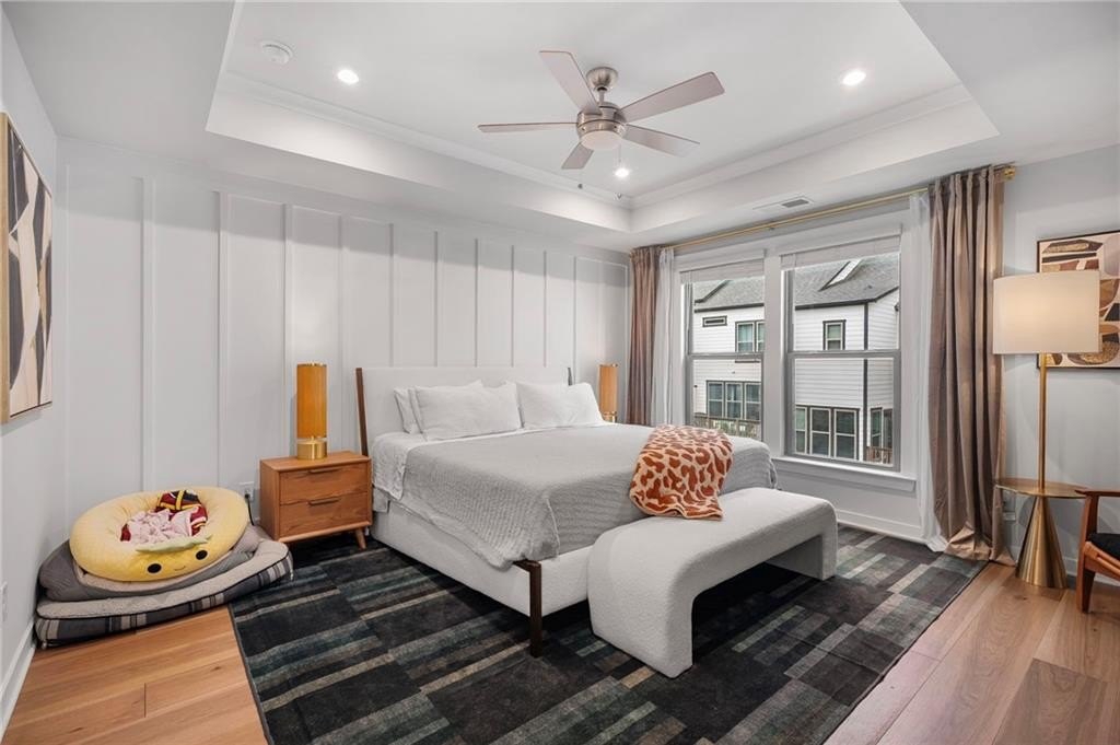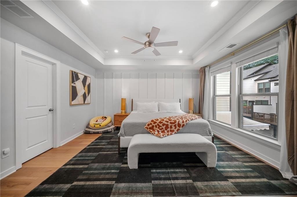 A Primary Suite That Delivers - Upstairs, the serene primary retreat is anchored by a tray ceiling with a custom ceiling fan and recessed lighting. Two expensive walk-in closets ensure storage is never a concern, while the spa-style ensuite bath features a frameless glass shower with built-in bench, elegant finishes, and a layout that makes getting ready feel indulgent.