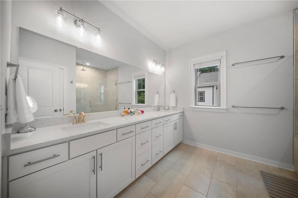 Room for Everyone - Two additional upstairs bedrooms share a beautifully appointed bath with a glass-enclosed tub, offering space and style for family or guests.