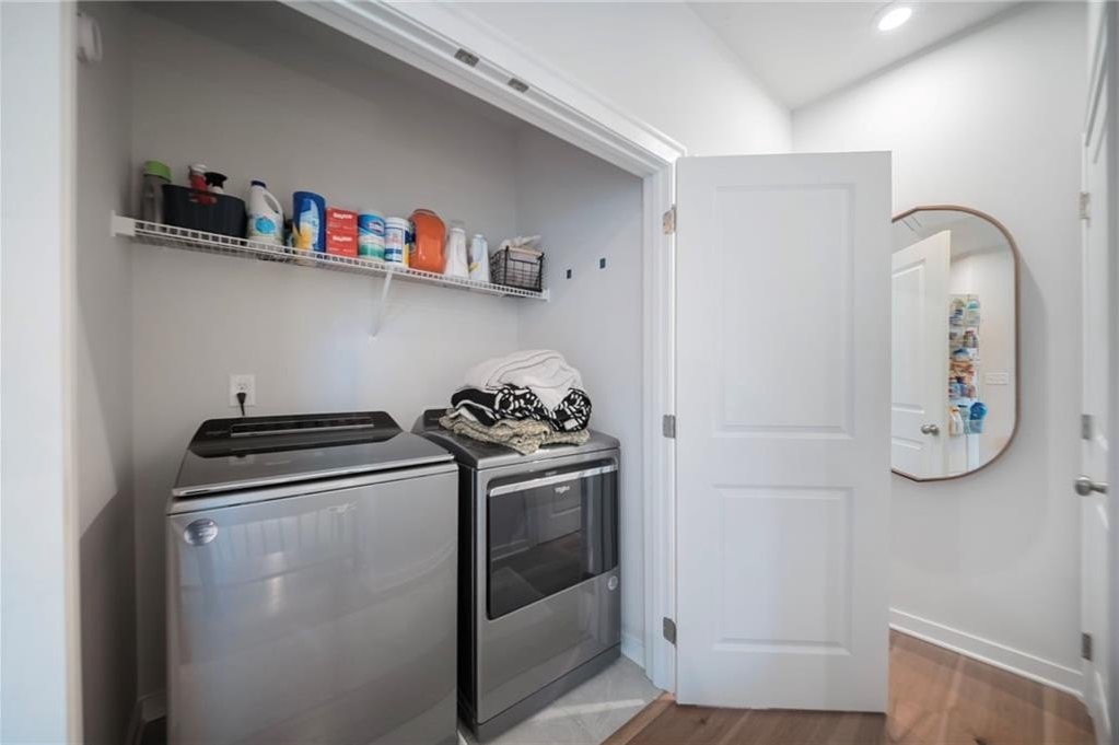 A well-designed laundry room rounds out the upper level, with high-end Wi-Fi connected washer and dryer.