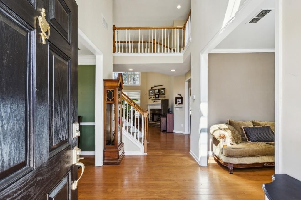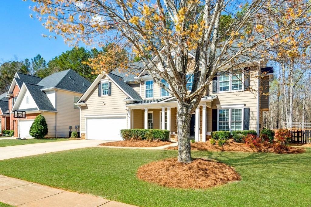 Welcome to 173 Northshore Crossing in the inviting Brightwater Community! Enjoy fantastic Neighborhood Amenities, including a Clubhouse, Pool, Playground, and a scenic 7-Acre Community Lake just a short walk away. Step inside to find a Formal Dining Room and Formal Living Room on either side of the entry, both featuring Tray Ceilings and beautiful Hardwood Floors. The Fireside Family Room and Open Kitchen serve as the heart of the home, boasting Soaring Ceilings and Large Windows that flood the space with Natural Light. The kitchen is a chef's dream, featuring a Large Island, Granite Countertops, Stained Cabinets, Stainless Steel Appliances, a Pantry, and a cozy Breakfast Nook for casual meals. A door leads to the Private Patio, overlooking the Backyard perfect for relaxing or entertaining. A Main-Level Bedroom and Full Bathroom offer an ideal setup for guests or a Home Office. Upstairs, the Spacious Primary Ensuite Retreat awaits, complete with Tray Ceilings, Double Vanity, Soaking Tub, Separate Shower, and a Walk-In Closet. Three additional Spacious Bedrooms share a well-appointed Full Bathroom, making this layout perfect for a growing family. The Flat Backyard is perfect for entertaining, grilling out, gardening, or simply soaking up the sun. The neighborhood's Lagoon-Style Pool adds to the Resort-Like Feel, blending comfort, convenience, and natural beauty. Located just minutes from Dallas Highway and Highway 278, this home offers easy access to Shopping, Dining, and Entertainment. With Amazing Amenities, a Prime Location, and Plenty of Space, this home truly has it all!