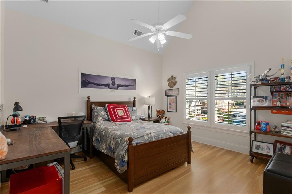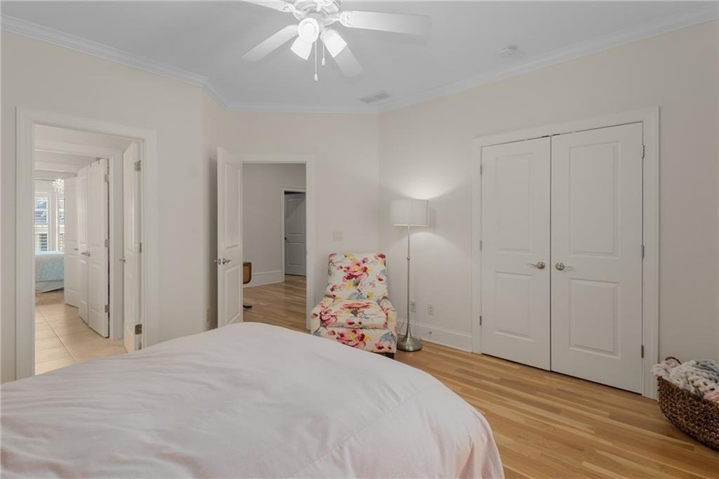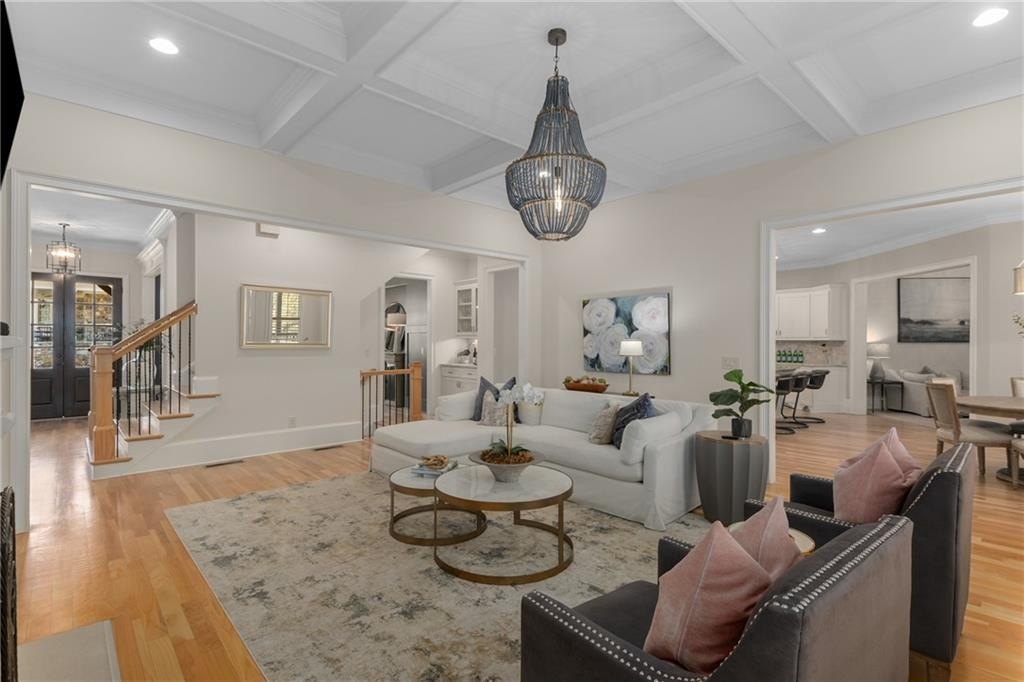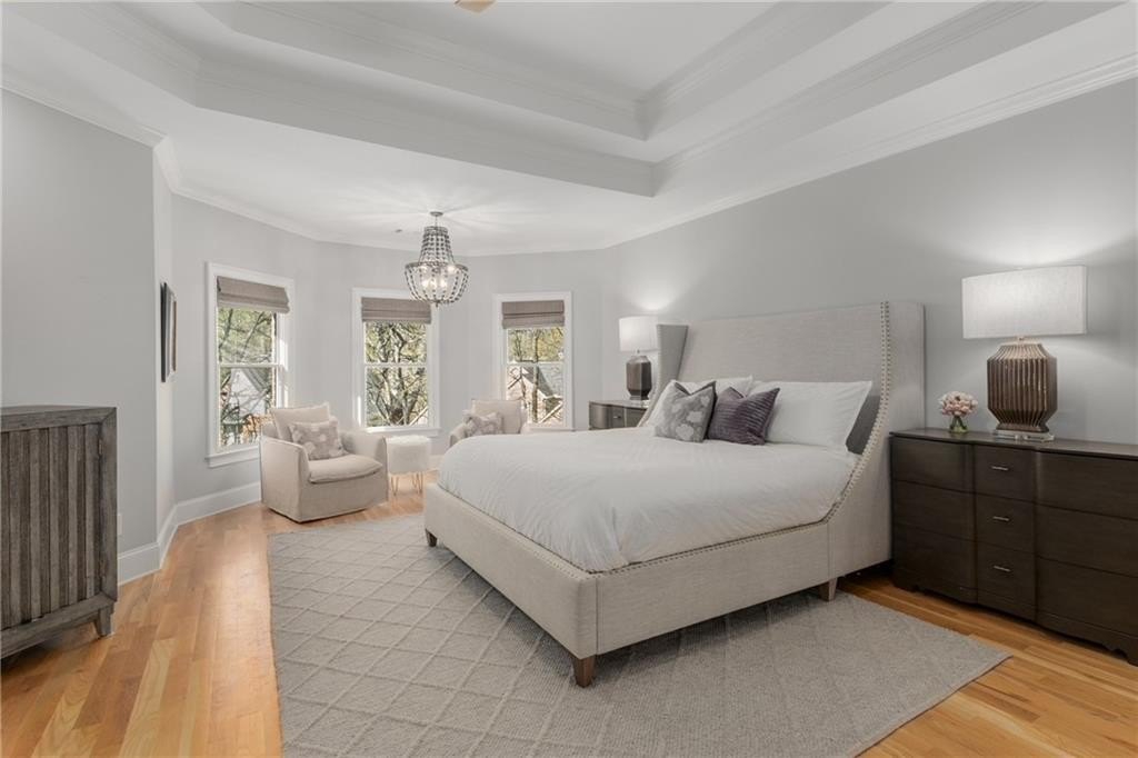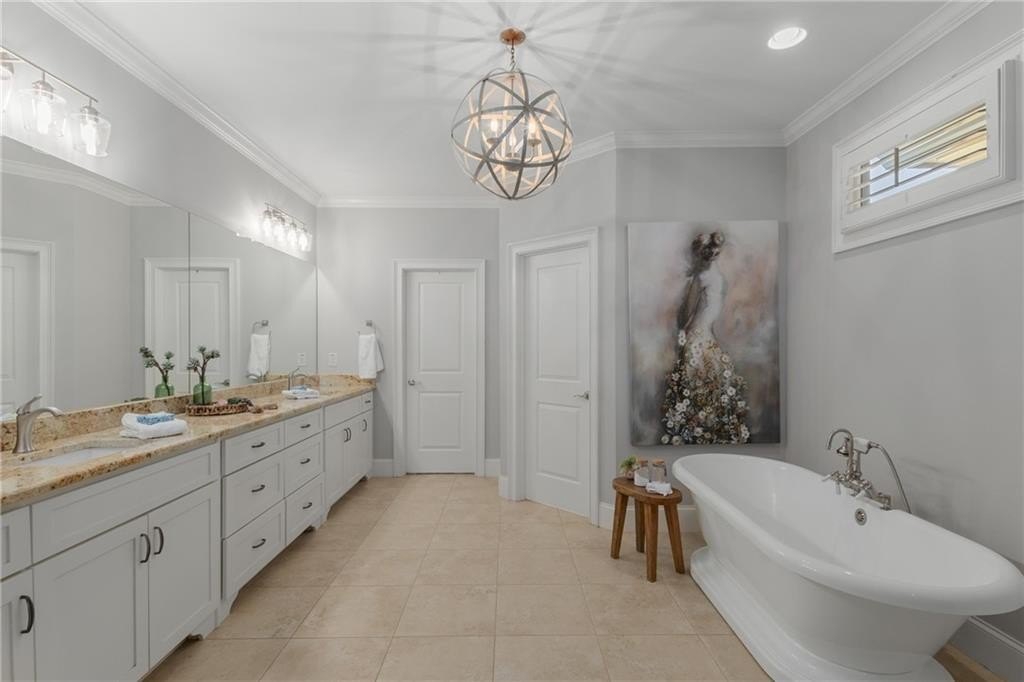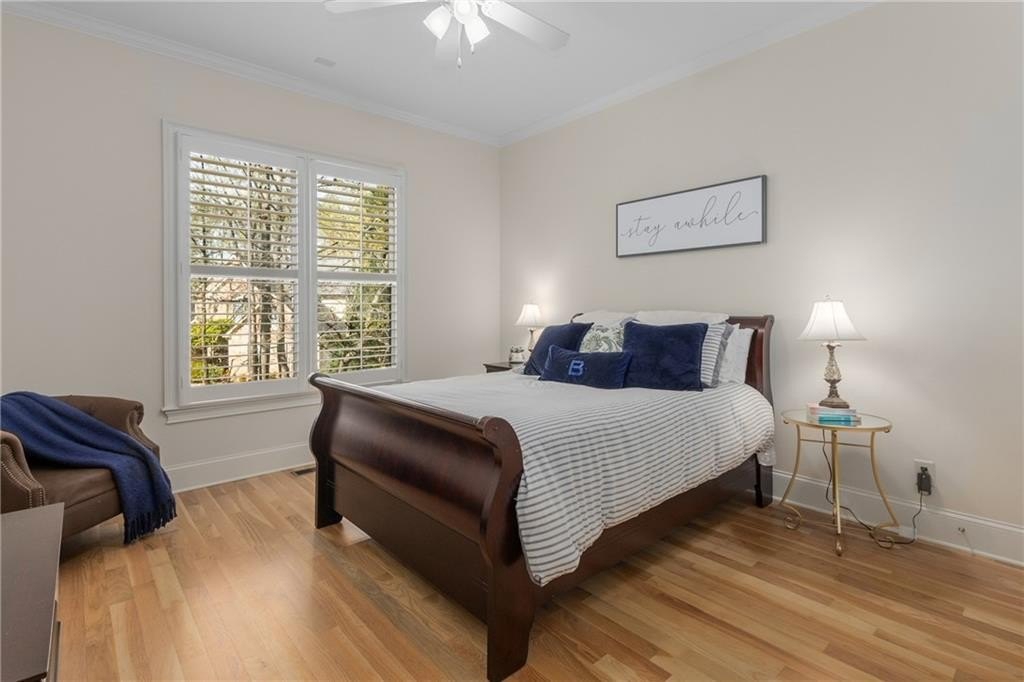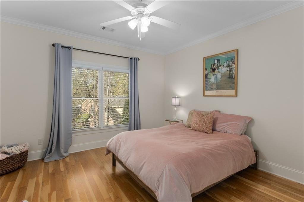 Here's your chance to own a newer home in an established private, gated enclave in desirable Peachtree Corners! Attractive 4-sided brick and stone front elevation; covered front porch and elegant double door entry; gleaming hardwood floors on entire main level; tall ceilings (10 foot) and 8 foot doors make this home feel wide open, bright, and spacious. Custom library/office with built-ins & double work stations - enjoy working from home! Coffered ceiling & concrete cast fireplace in the family room; spacious kitchen w/large island, granite counters & stainless appliances, walk-in pantry, breakfast area, & impressive vaulted keeping room w/2nd stone fireplace. Smart additional house manager's office or art room behind kitchen - very useful! Back covered deck; guest bedroom & full bath on main. Upstairs features 10' ceilings, hardwood floors, and a luxurious primary suite w/sitting area, workout room, oversized closet, dual head walk-in shower, and standalone tub. Large secondary bedrooms include one ensuite, and two additional bedrooms that share a jack n' jill bath. Additional large upstairs media room (or 6th bedroom) ideal for movie night, gaming, or doing homework! Updated light fixtures throughout; full basement, stubbed for bath & fireplaces; fenced, level, low maintenance backyard; ground-level covered back patio below the deck. Located near excellent public and private schools, The Forum, Town Center, parks, the river, and the 141 highway corridor. Enjoy the good life in Peachtree Corners!