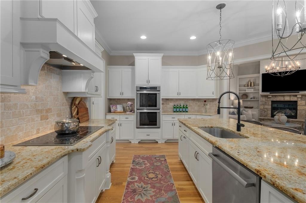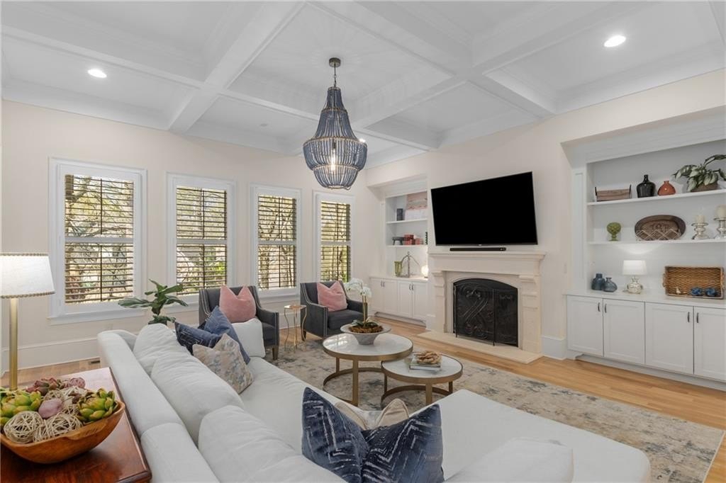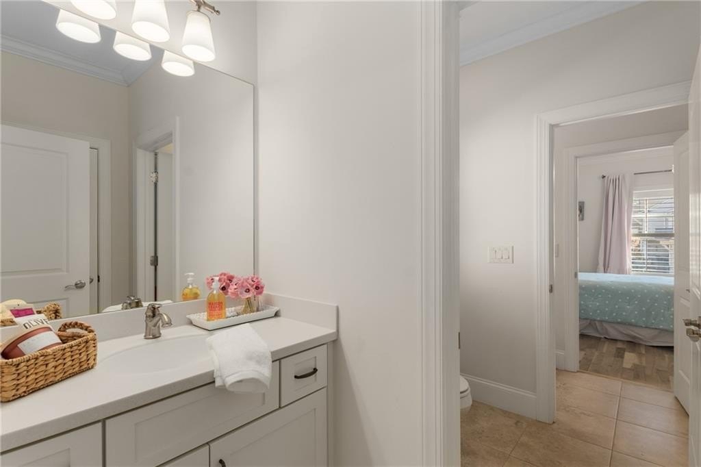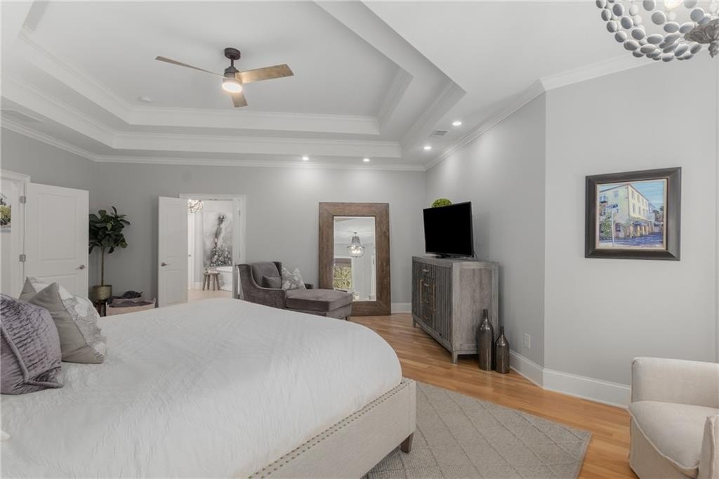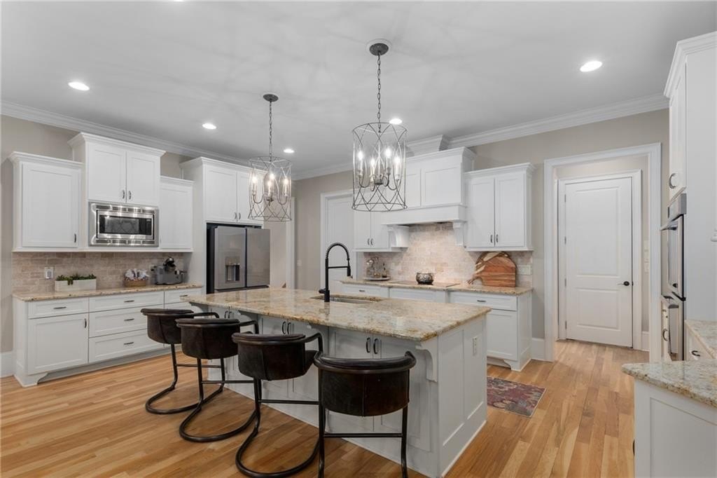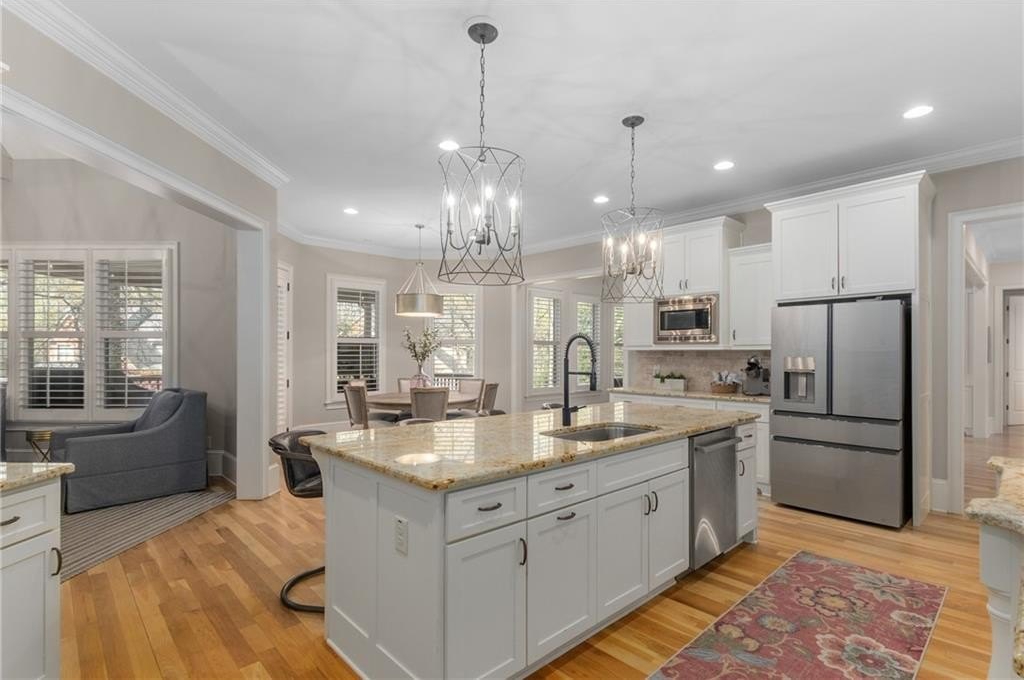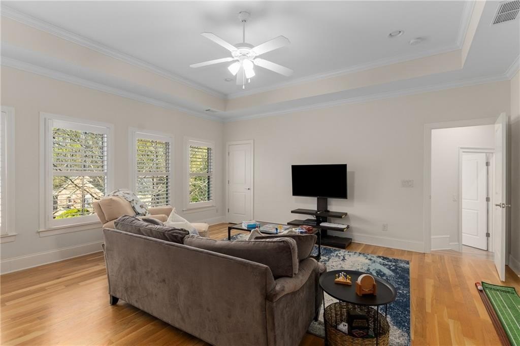 Here's your chance to own a newer home in an established private, gated enclave in desirable Peachtree Corners! Attractive 4-sided brick and stone front elevation; covered front porch and elegant double door entry; gleaming hardwood floors on entire main level; tall ceilings (10 foot) and 8 foot doors make this home feel wide open, bright, and spacious. Custom library/office with built-ins & double work stations - enjoy working from home! Coffered ceiling & concrete cast fireplace in the family room; spacious kitchen w/large island, granite counters & stainless appliances, walk-in pantry, breakfast area, & impressive vaulted keeping room w/2nd stone fireplace. Smart additional house manager's office or art room behind kitchen - very useful! Back covered deck; guest bedroom & full bath on main. Upstairs features 10' ceilings, hardwood floors, and a luxurious primary suite w/sitting area, workout room, oversized closet, dual head walk-in shower, and standalone tub. Large secondary bedrooms include one ensuite, and two additional bedrooms that share a jack n' jill bath. Additional large upstairs media room (or 6th bedroom) ideal for movie night, gaming, or doing homework! Updated light fixtures throughout; full basement, stubbed for bath & fireplaces; fenced, level, low maintenance backyard; ground-level covered back patio below the deck. Located near excellent public and private schools, The Forum, Town Center, parks, the river, and the 141 highway corridor. Enjoy the good life in Peachtree Corners!