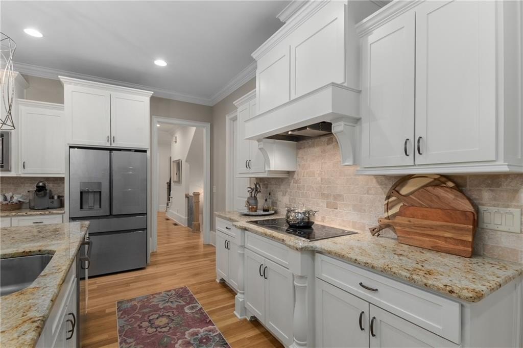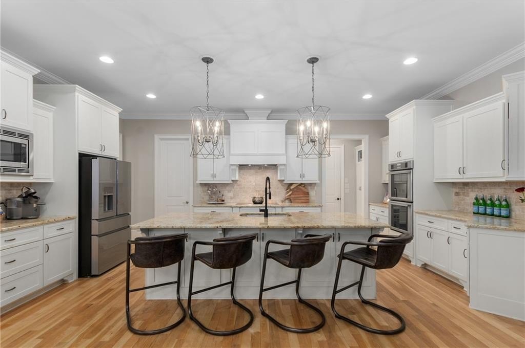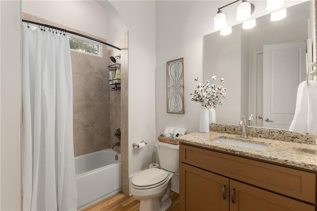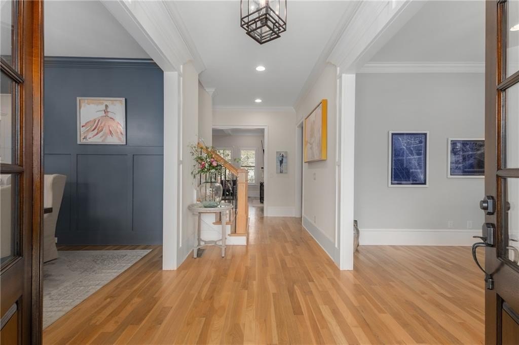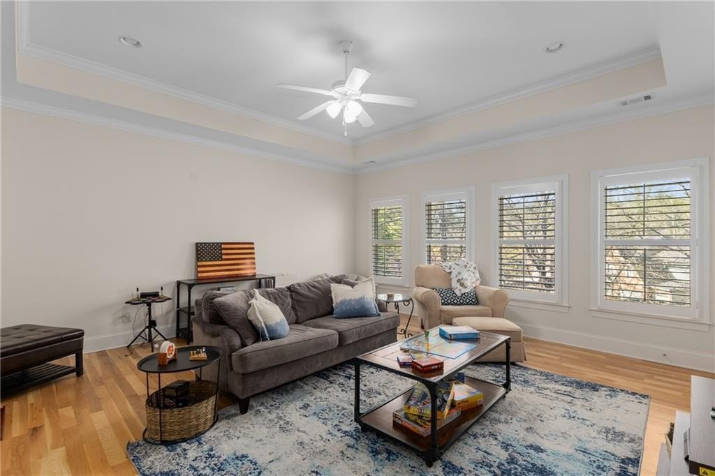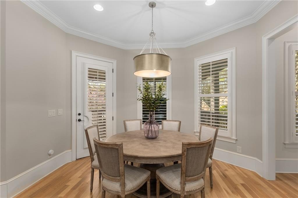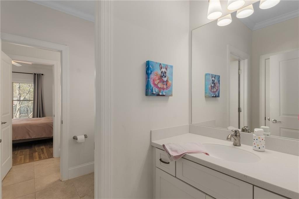 Here's your chance to own a newer home in an established private, gated enclave in desirable Peachtree Corners! Attractive 4-sided brick and stone front elevation; covered front porch and elegant double door entry; gleaming hardwood floors on entire main level; tall ceilings (10 foot) and 8 foot doors make this home feel wide open, bright, and spacious. Custom library/office with built-ins & double work stations - enjoy working from home! Coffered ceiling & concrete cast fireplace in the family room; spacious kitchen w/large island, granite counters & stainless appliances, walk-in pantry, breakfast area, & impressive vaulted keeping room w/2nd stone fireplace. Smart additional house manager's office or art room behind kitchen - very useful! Back covered deck; guest bedroom & full bath on main. Upstairs features 10' ceilings, hardwood floors, and a luxurious primary suite w/sitting area, workout room, oversized closet, dual head walk-in shower, and standalone tub. Large secondary bedrooms include one ensuite, and two additional bedrooms that share a jack n' jill bath. Additional large upstairs media room (or 6th bedroom) ideal for movie night, gaming, or doing homework! Updated light fixtures throughout; full basement, stubbed for bath & fireplaces; fenced, level, low maintenance backyard; ground-level covered back patio below the deck. Located near excellent public and private schools, The Forum, Town Center, parks, the river, and the 141 highway corridor. Enjoy the good life in Peachtree Corners!