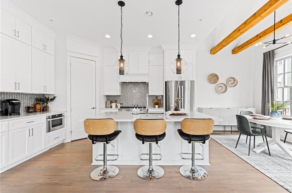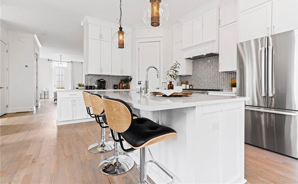 Incredible charm meets quality in the new development by the JW Collection founded by John Wieland right here in walkable downtown Ball Ground! The new Arlington End Townhome Plan features beautiful upgrades, elevator ready, and a sky terrace with amazing views of North Georgia Mountains and Downtown Ball Ground. The Heritage at Farmer’s Crossing is an exclusive, walkable enclave of 16 luxury three story townhomes with detached garages by the JW Collection, founded by John Wieland, part of the Farmer’s Crossing development by the Lynwood Group. Designed to honor the historic character and natural beauty of the area, this exquisite JWC designer plan has wonderful living space for all your entertaining needs, with an abundance of windows and natural light. As you enter the home, you will find oversized 10ft ceilings throughout the main level. You will be pleased to discover many upgraded features throughout, including quartz countertops, beautiful soft close cabinetry to the ceilings in the kitchen, large kitchen island equipped with a double trash pullout, sink, and dishwasher. The kitchen also boasts built -in KitchenAid stainless steel appliances with tile to the ceiling behind your designer wood hood. Enjoy the wood shelving in your walk-in pantry. Designer hardwood flooring is on the entire main level and all stairs. Step into the bright and warm Great room that includes a custom trim detailed fireplace with gas logs, built in cabinetry, and a stained cedar mantle. Upstairs the owner’s suite is its own private retreat to relax at the end of a long day. The owner’s bath is a spa experience with a free-standing soaking tub, large walk-in shower with bench, shampoo niche, frameless door, and tile all the way to the ceiling. Attached to the spa bath you will find separate Owners closets with custom built in shelving. Two additional secondary guest bedrooms include private baths with quartz countertops, designer tile to the ceiling in all showers/bath. As you approach the top floor, be ready to be amazed with the surrounding views of the North Georgia Mountains. You can spend mornings watching the sunrise with a cup of coffee or evenings with a breathtaking sunset from your sky terrace. One of the bonus features of this home is a detached 2 car garage with approximately 400 sq. ft of unfinished storage that can be converted to a game room, climate-controlled storage, or an office suite suited to your needs. This home has it all! Just steps to vibrant Downtown Ball Ground with the perfect blend of luxury and small-town charm. Adjacent to Calvin Farmer Park, and walking distance to Ball Ground shops, dining, Botanical Garden, and sporting activities. Easy access to Cumming, Canton, Alpharetta, Woodstock, and North Georgia Mountains. This location is unbeatable. Please do not wait as there are limited opportunities. Call us today for details or to schedule a tour. HOME IS UNDER CONSTRUCTION. PHOTOS ARE OF A SIMILAR HOME.