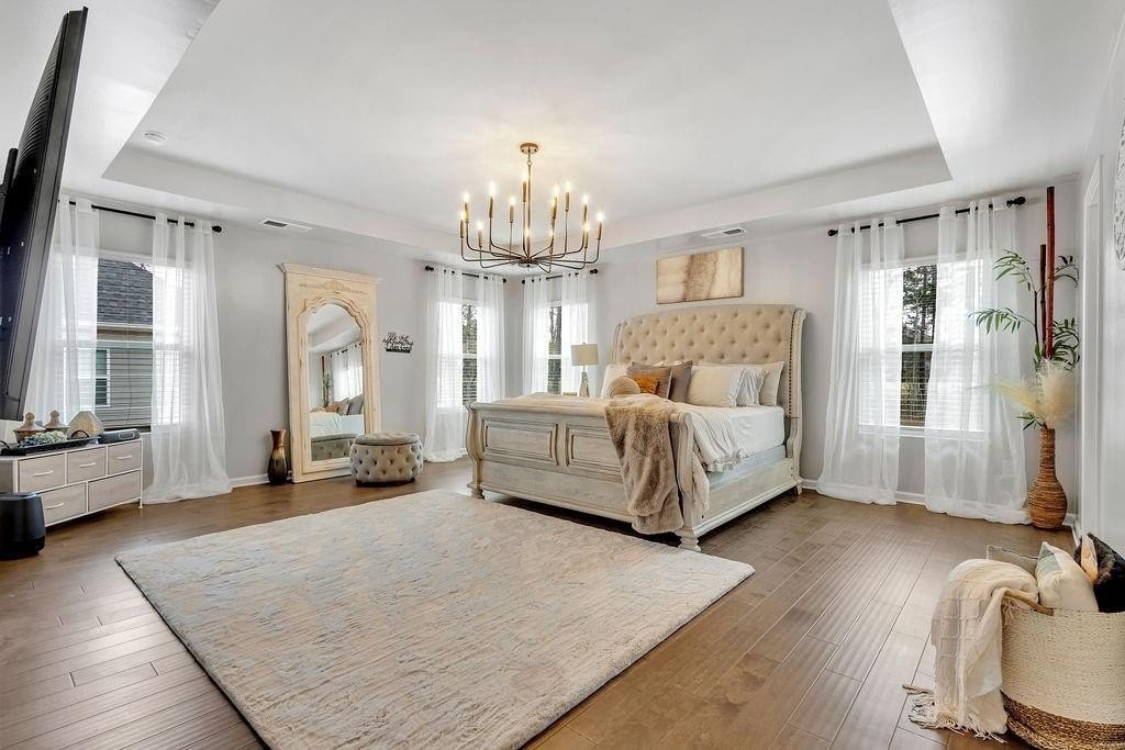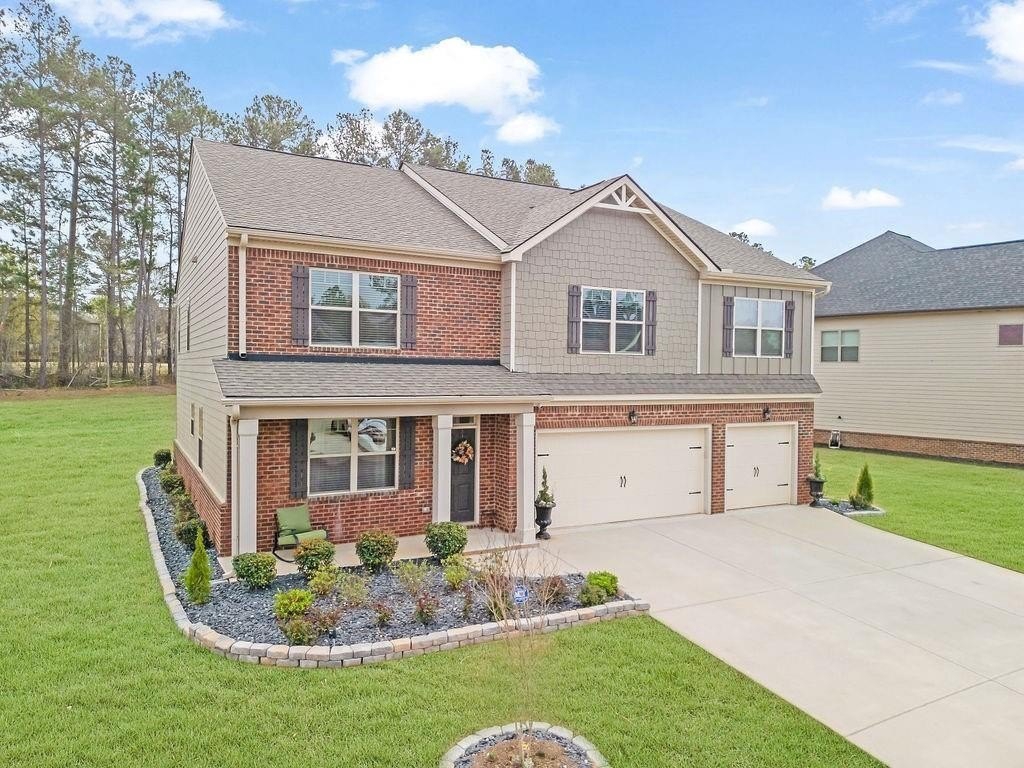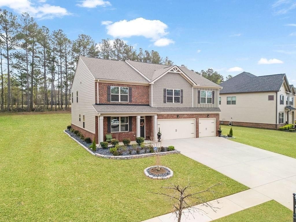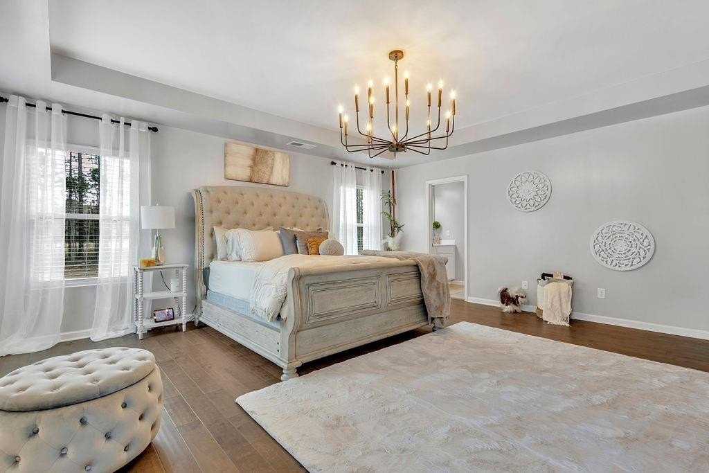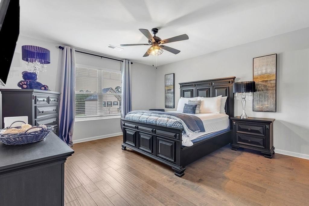 The luxurious primary suite serves as a private retreat, featuring a spa-like bathroom with a soaking tub, separate shower, and dual vanities, complemented by a spacious walk-in closet. This home has been recently updated with new hardwood flooring, contemporary lighting fixtures, and fresh interior paint, aligning with the latest design trends that favor rich, saturated colors and layered textures. Outside, the property boasts a level lot with a dual irrigation system, providing a well-maintained outdoor space suitable for gardening or gathering. Residents of Heron Bay enjoy a wealth of amenities, including a clubhouse, golf course, lake, fitness center, playground, pool, sidewalks, and tennis courts, all contributing to a vibrant and active lifestyle. Conveniently located near I-75, this home offers easy access to major highways, shopping destinations like Southpointe shopping center, Tanger Outlets, and attractions such as the Atlanta Motor Speedway. Happy Showing!