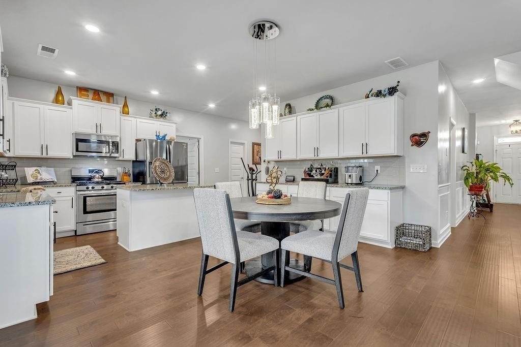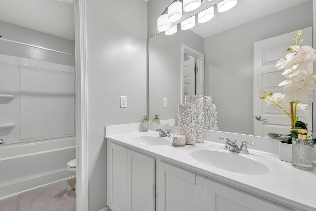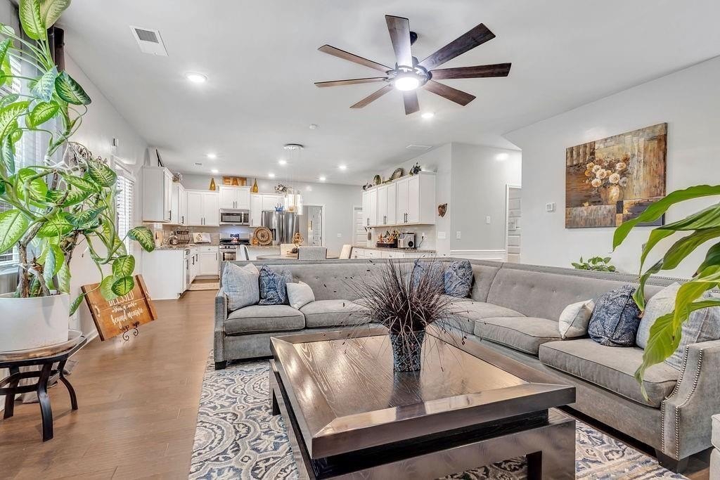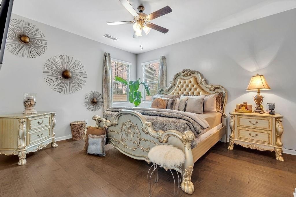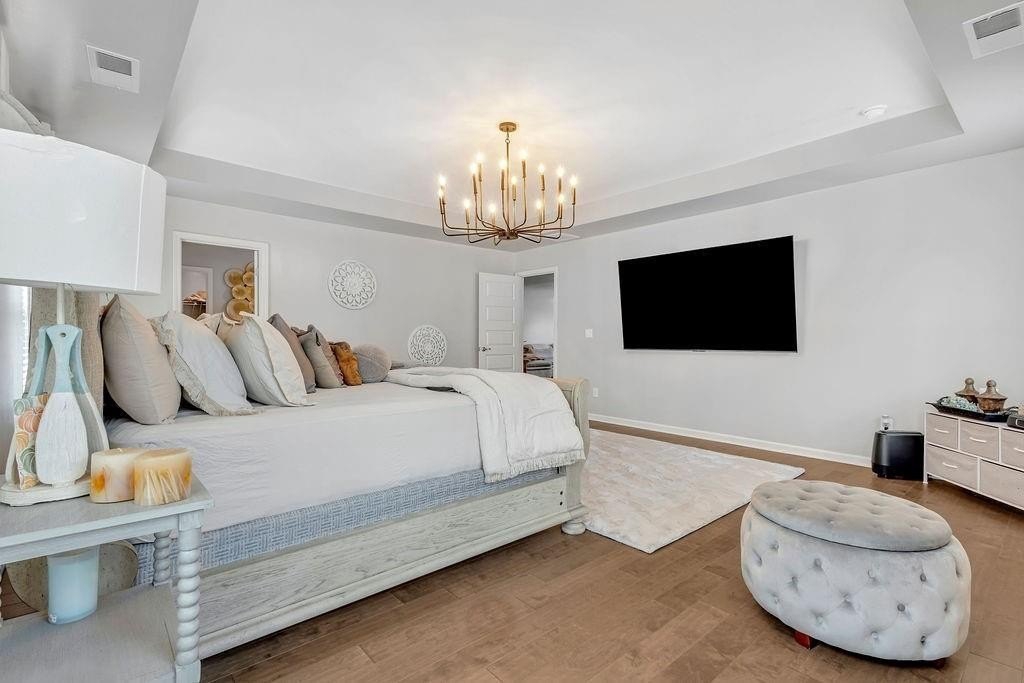 The luxurious primary suite serves as a private retreat, featuring a spa-like bathroom with a soaking tub, separate shower, and dual vanities, complemented by a spacious walk-in closet. This home has been recently updated with new hardwood flooring, contemporary lighting fixtures, and fresh interior paint, aligning with the latest design trends that favor rich, saturated colors and layered textures. Outside, the property boasts a level lot with a dual irrigation system, providing a well-maintained outdoor space suitable for gardening or gathering. Residents of Heron Bay enjoy a wealth of amenities, including a clubhouse, golf course, lake, fitness center, playground, pool, sidewalks, and tennis courts, all contributing to a vibrant and active lifestyle. Conveniently located near I-75, this home offers easy access to major highways, shopping destinations like Southpointe shopping center, Tanger Outlets, and attractions such as the Atlanta Motor Speedway. Happy Showing!