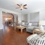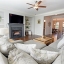 Step inside to discover a beautifully designed home flooded with natural light and hardwood floors throughout. The main level features a bright white kitchen with quartz countertops, stainless steel SMART appliances, and an oversized island with plenty of counter space and eat-in bar area. This spills into an open keeping room with a cozy fireplace, custom built-in shelving, and a half-bath with designer tile. French doors off the large dining room lead to a private deck overlooking a tranquil greenspace, creating an ideal space for entertaining or relaxing outdoors. Don’t miss the beautifully designed laundry room with a smart washer and dryer that stays with the home.