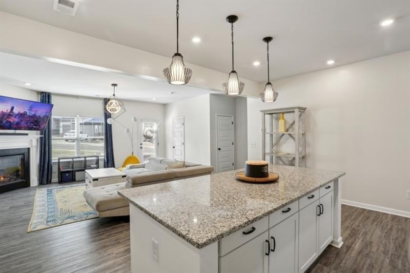 Welcome to this Immaculate End Unit Townhome in the Sought-After Concord Community, right in the Heart of Woodstock! Tucked perfectly between Downtown Woodstock, Roswell, and Milton, this home offers Prime Location with everyday Convenience. Step inside and you'll be greeted by tons of Natural Light pouring through Large Windows, highlighting the Open Concept Living Area with Gorgeous Hardwood Floors and Stylish Finishes throughout, perfect for a relaxing night or entertaining guests. The Eat-In Kitchen is a true Showstopper - complete with a Large Island, Stainless Steel Appliances, Quartz Countertops, White Cabinets, and Tons of Storage. A thoughtfully placed Powder Room finishes off the main level. Upstairs, the Primary Suite is the perfect Retreat. Enjoy a Spacious Bedroom, a Spa-Like Ensuite Bathroom with a Soaking Tub, Separate Walk-In Shower, Dual Vanities, and a Huge Walk-In Closet. Two Additional Bedrooms offer Flexibility for a Home Office, Guest Room, or Family Space, and they share a Full Bath. The Two-Car Garage provides Extra Storage and Shelter for Your Cars Year-Round. Neighborhood Perks like Sidewalks, Street Lights, and Dog Stations give it that Welcoming, Community Feel. Just minutes from Shops, Grocery Stores, Entertainment, and Top Schools - this home checks all the boxes for Comfort, Style, and Location. Don't miss your chance to live in a space that's more than just a home - it's a Lifestyle.