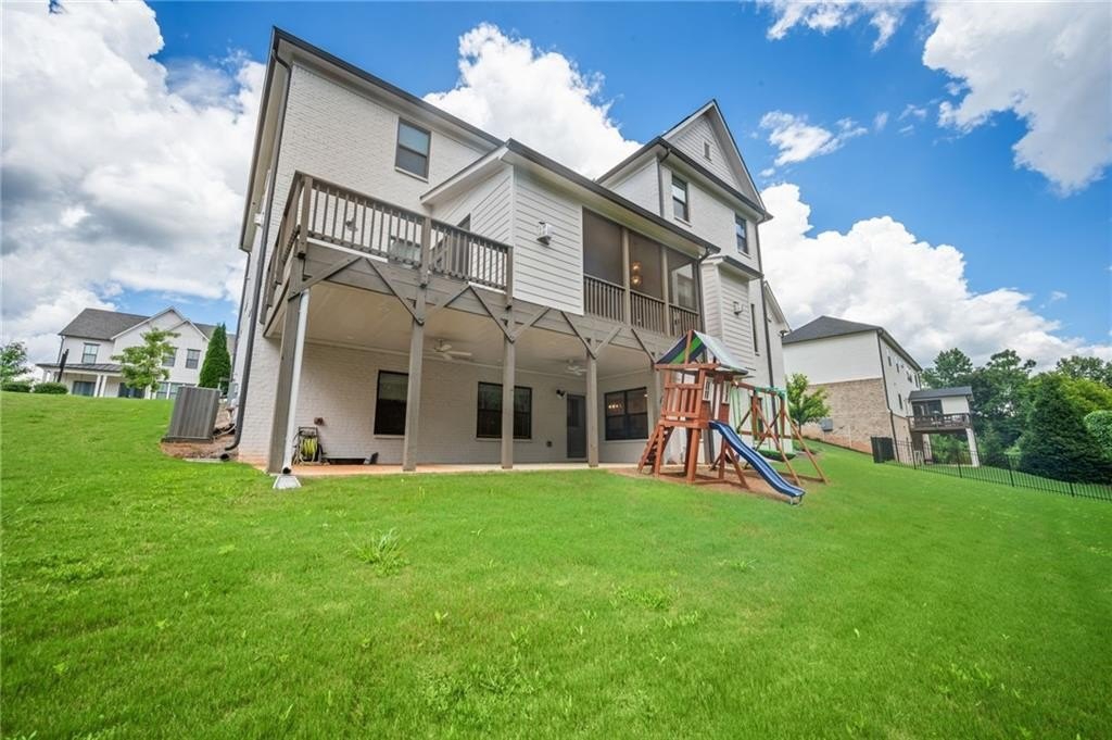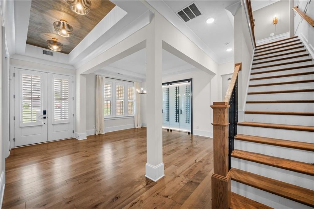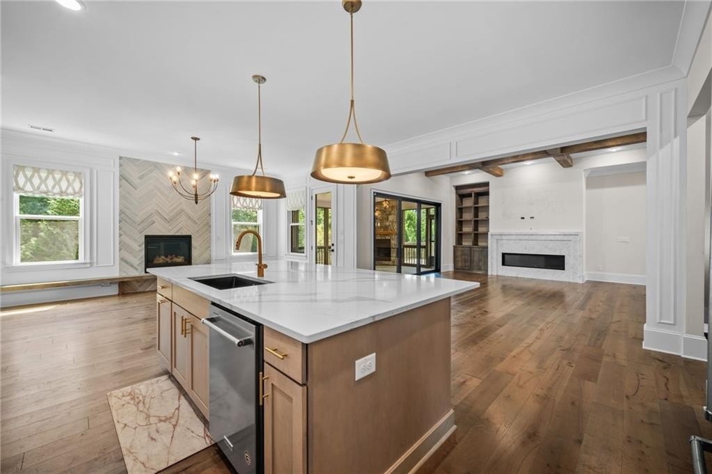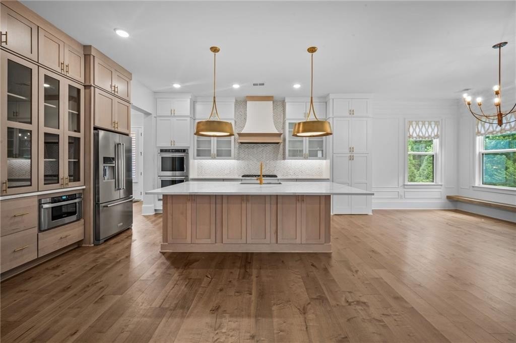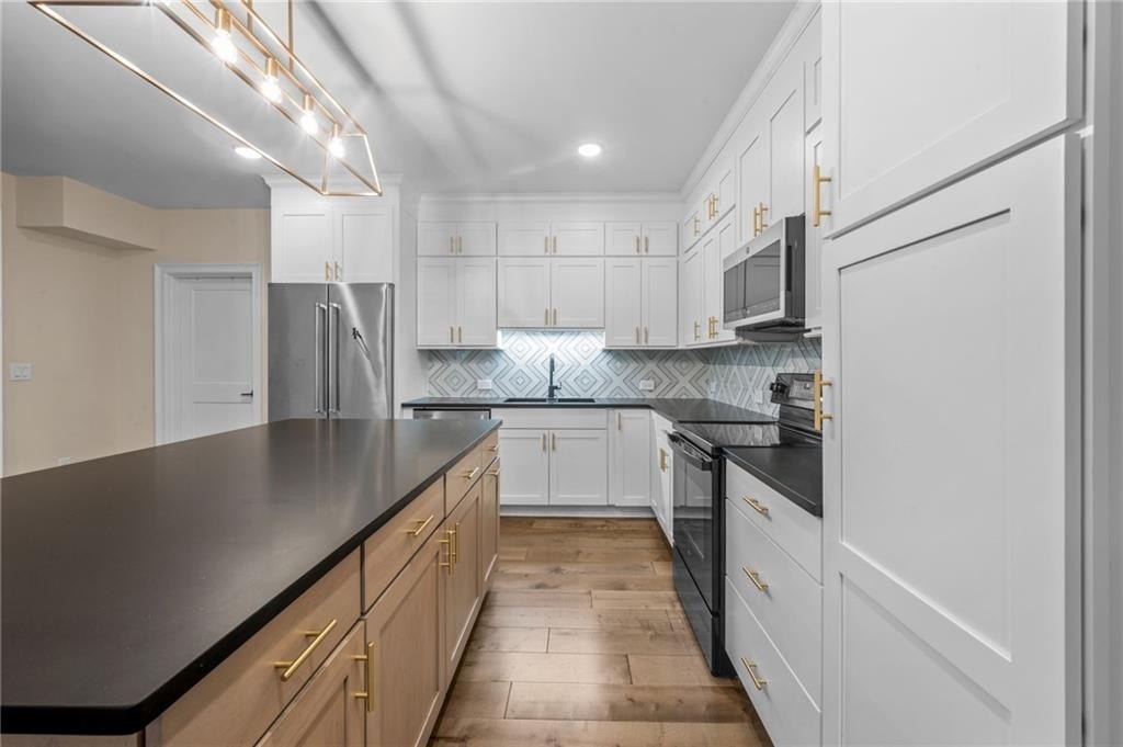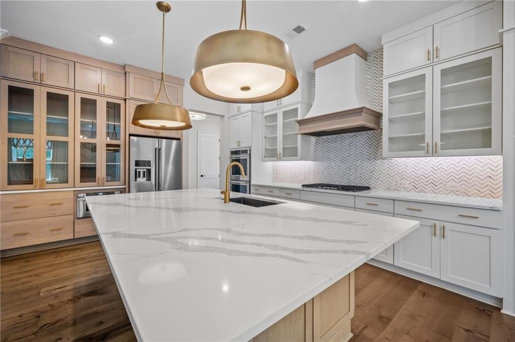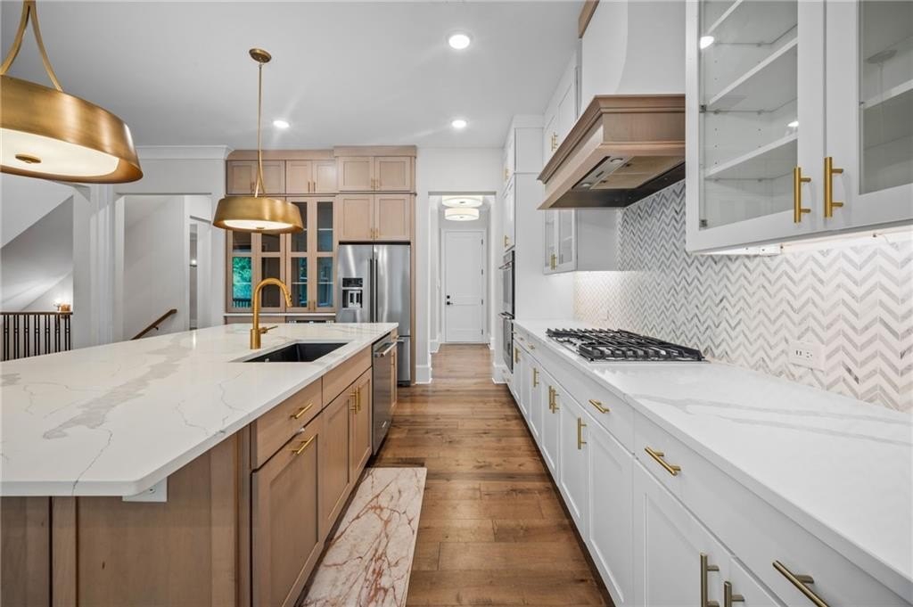 Lighting has been tastefully updated with contemporary fixtures, while the under-deck area has been outfitted with fans and lighting—perfect for enjoying the outdoors in comfort. Smart home features abound, including a comprehensive security system with perimeter and interior cameras, smart locks, and window sensors for added peace of mind. The fully finished basement is a standout, offering expanded living space with a polished touch. What was once unfinished has been upgraded with drywall, crown molding, and baseboards, creating a refined and functional area. A second full kitchen—crafted with cabinetry matching the main kitchen—adds incredible flexibility. Outfitted with a full suite of appliances and an island centerpiece, it’s ideal for multi-generational living or entertaining. Additional washer/dryer hookups provide the convenience of a second laundry area. This home is a rare blend of comfort, style, and smart functionality—ready to welcome its next chapter. This home has so much to offer, come preview today!