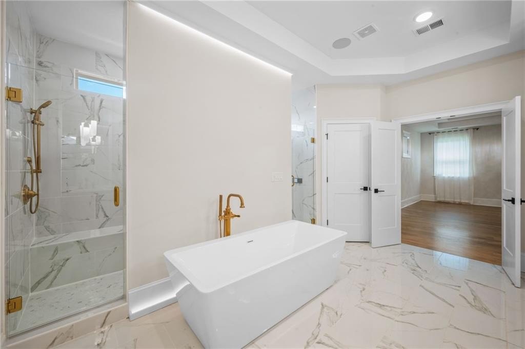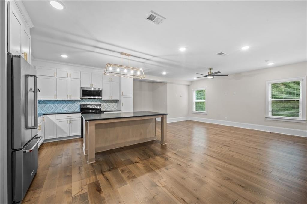 Step into a home where thoughtful upgrades and modern conveniences come together to create a truly inviting space. Rich hardwood flooring now flows throughout the entire home, replacing all carpet and adding warmth and sophistication to every room. The open-concept layout offers a seamless flow, ideal for both everyday living and entertaining guests. The primary suite has been transformed into a private sanctuary, complete with integrated ceiling speakers and a spa-inspired bathroom that invites relaxation. Two additional guest bedrooms also feature upgraded hardwoods, ensuring comfort and style throughout.