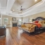 Upstairs, the oversized primary suite is a retreat of its own, featuring tray ceilings, a cozy fireplace, a sitting area, a luxurious spa-like bath boasting dual vanities, a jacuzzi tub, and an expansive double-head walk-in shower, with a walk-in closet providing generous storage. Three additional bedrooms with tray ceilings and en-suite baths complete the upper level.