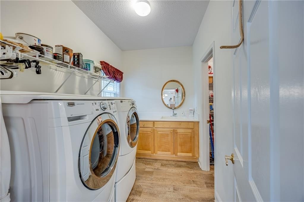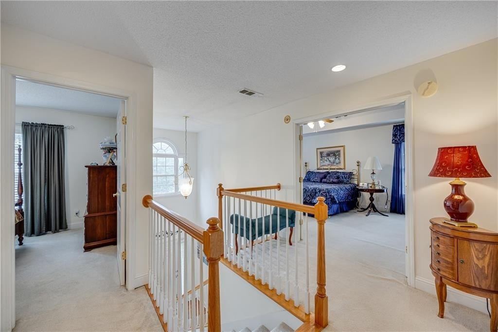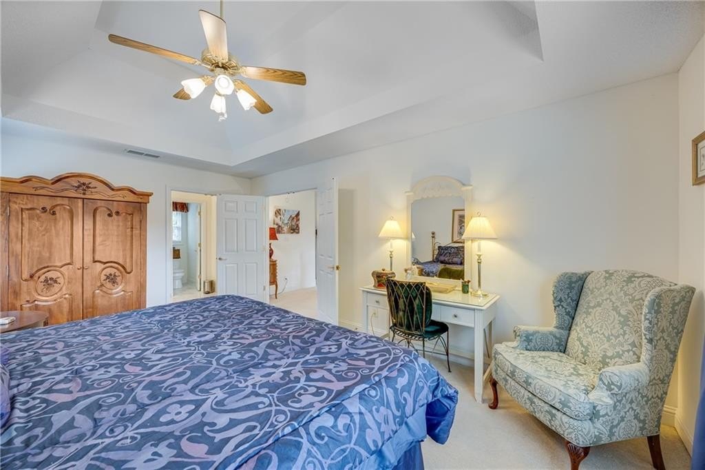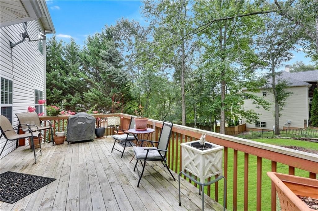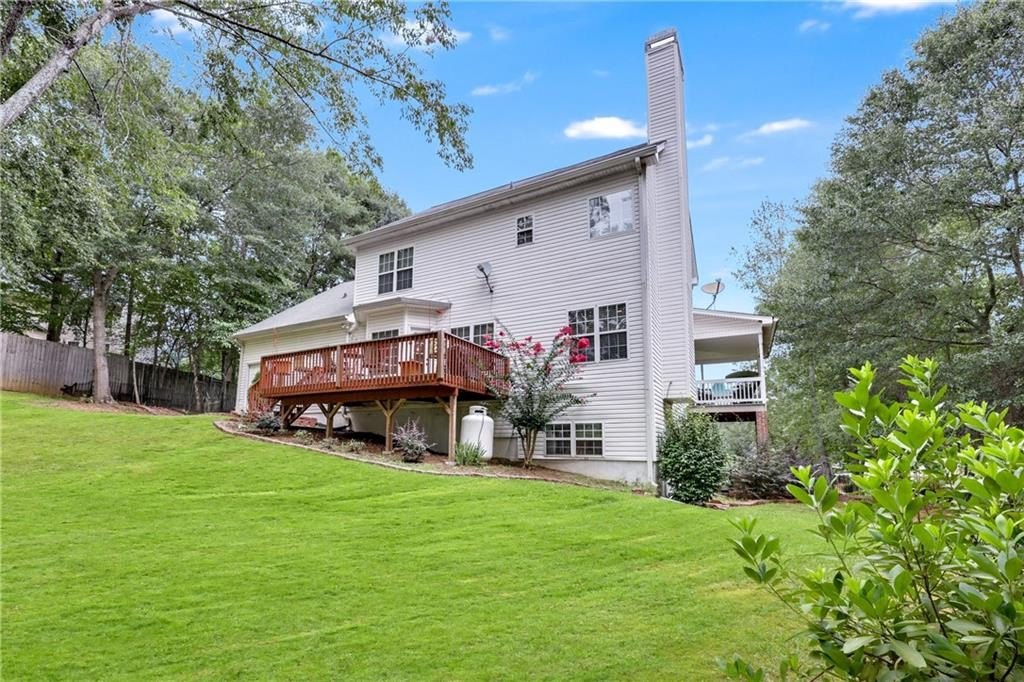 Farmhouse life in a quiet neighborhood. This picturesque home, lovingly cared for by its original owner has a wrap-around porch and spacious back deck overlooking a wonderful fenced back yard for outdoor living at its best. Inside, you’ll find a two-story foyer flanked by a formal living room and dining room, leading into a bright great room open to the kitchen and breakfast area. Just off the breakfast nook is a dream laundry room—with sink, counter space, and adjoining walk-in pantry—making everyday living a joy. Upstairs are spacious bedrooms, including the owner suite with tall trey ceiling in bedroom and vaulted master bath with double vanity, separate tub and shower. The finished terrace level is ideal for multi-generational living, complete with a second fireplace, kitchen, laundry and storage space. A bonus unfinished space above the garage offers additional storage or future expansion.