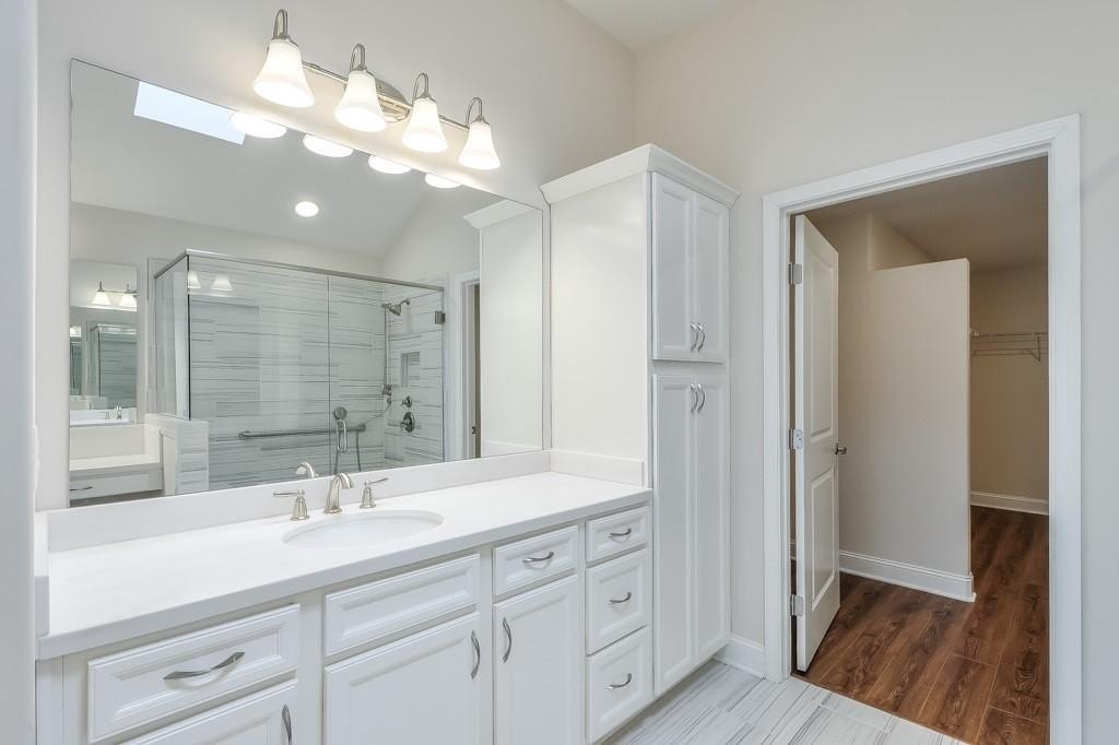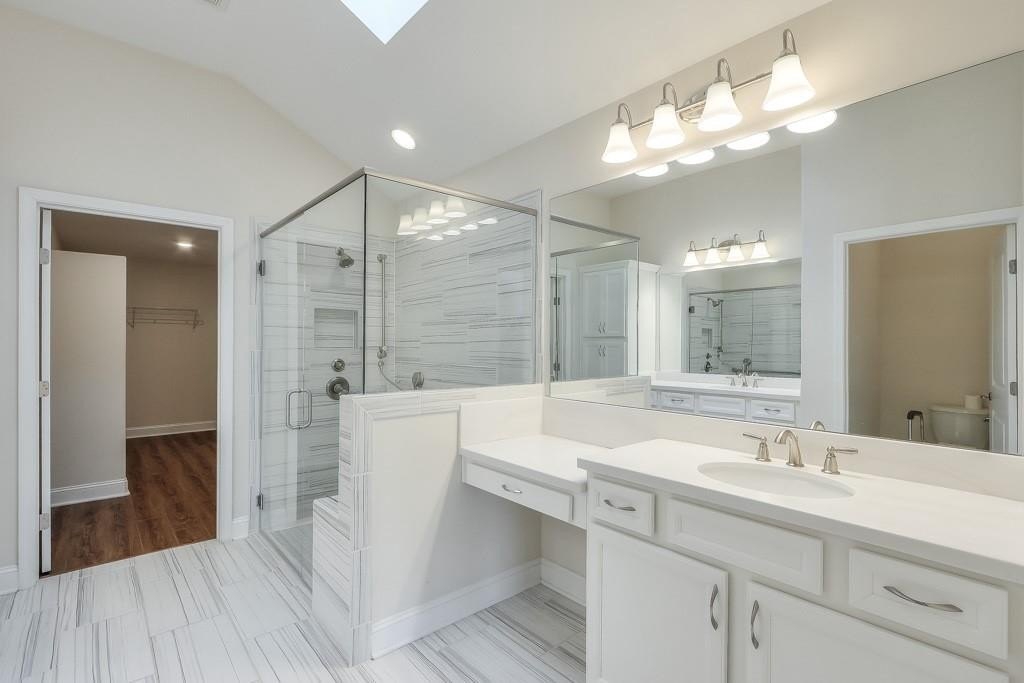 The expanded primary suite is a true retreat, offering enough room for a sitting area, reading nook, or flexible furniture layout. You'll love the spa-like ensuite bath, featuring a walk-in shower, makeup vanity, skylight, elegant tile floors, and a spacious walk-in closet.