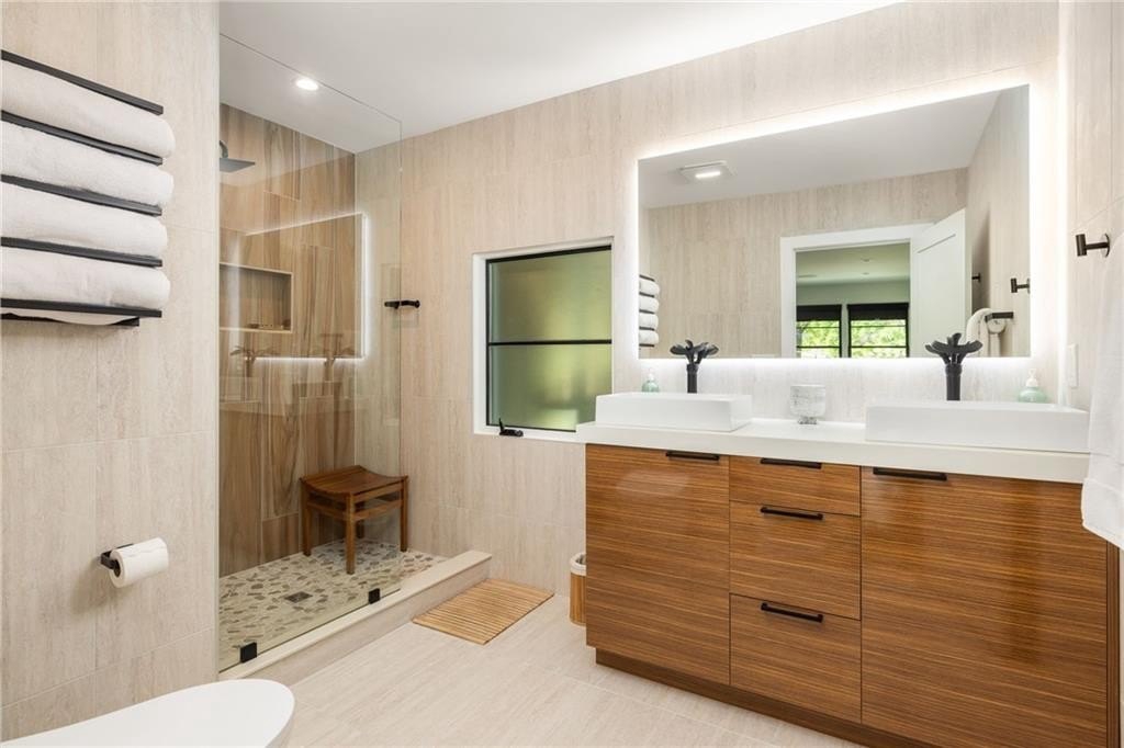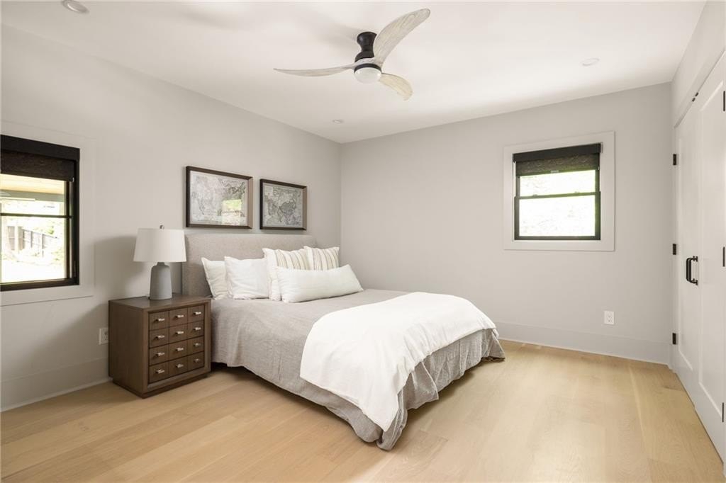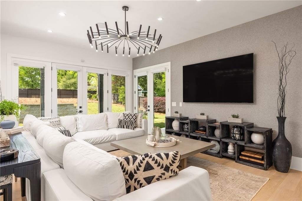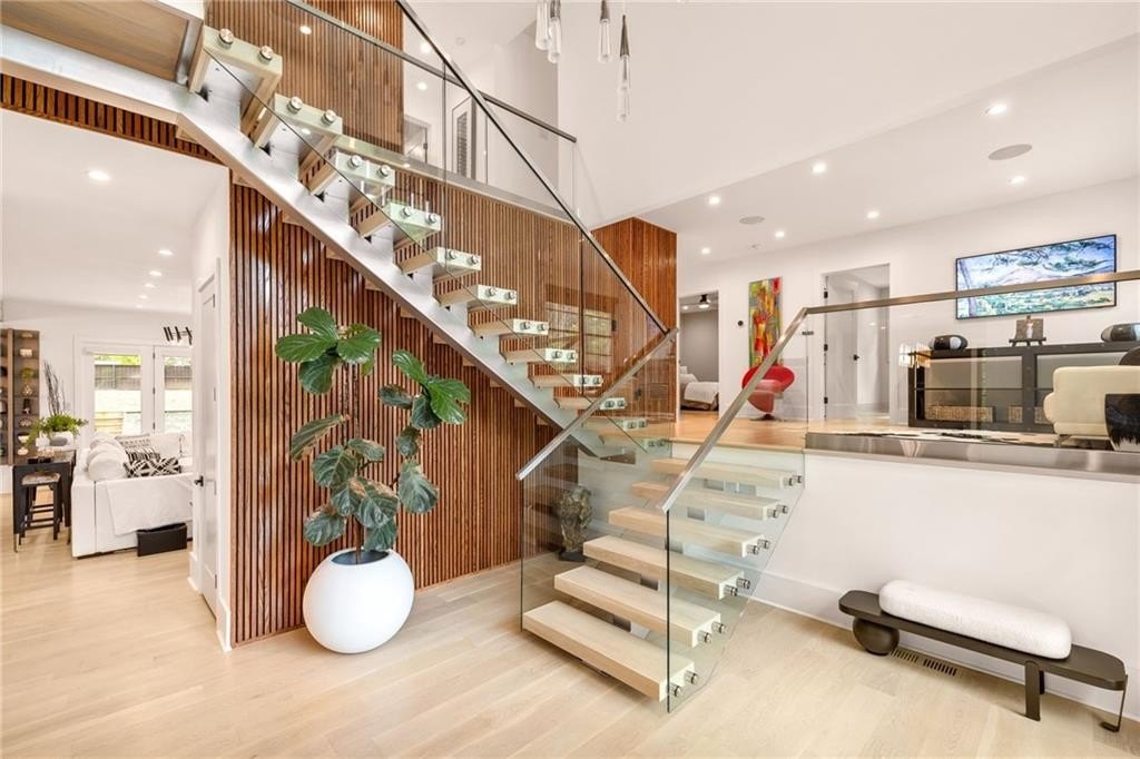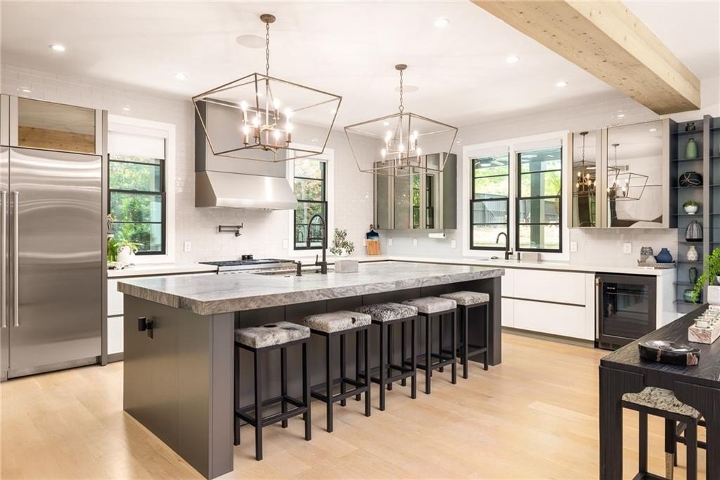 Set on an oversized, beautifully landscaped lot in Oak Grove’s coveted Leafmore Hills, this custom-built contemporary stunner is where high design meets effortless functionality. Skip the waitlist and enjoy the swim and tennis social club at Leafmore-Creek Park Club with a transferable membership or build out your own pool (already permitted) in the oversized backyard. With board and batten siding, a wraparound front porch, and jaw-dropping curb appeal, the home makes a statement before you even step inside. Once you do, you’re greeted by soaring ceilings and sunlight pouring in from every angle with a floor plan that just flows. Every detail has been elevated from remote-controlled shades and designer lighting to wide-plank white oak floors, Sonos built-in speakers both inside and out with bespoke finishes throughout. The formal dining room is wrapped in custom wallpaper and connects seamlessly to a fully loaded butler’s pantry, complete with a bar, beverage refrigerator and ice maker. The chef’s kitchen is a showstopper featuring a massive stone island with seating for six, dual sinks with touchless faucets, six-burner Wolf range with pot filler, custom hood, and thoughtful lighting under cabinets, in drawers, and even at your feet. The open-concept living room has space for a true oversized sectional, making it perfect for entertaining or cozy nights in. Slide open the doors to the first of two large, covered patios that span almost 1,500 square feet of additional covered living and entertaining space. With a fireplace, full-width tiled deck, and a huge flat backyard, this outdoor space is ready for anything from laid-back afternoons to full-on celebrations. Take the glass-enclosed staircase to the mezzanine level, where you’ll find two generous guest bedrooms and a spa-like guest bath ideal for visitors or a work-from-home setup. Take your pick; on the third floor, two stunning primary suites offer resort-inspired bathrooms and expansive walk-in closets. One suite offers the pièce de rèsistance; a covered porch complete with fireplace and peaceful backyard views. For those who need more room to spread out there’s a top-floor flex space perfect for a family den, office, or playroom. A dedicated laundry room with custom cabinetry and sink adds even more convenience to the mix. Enjoy the two car garage for dedicated off street parking, and the wide driveway provides ample parking solutions for multiple vehicles. Across the street, the neighborhood swim and tennis club, featuring a playground, offers convenient options for family and friends with abundant energy. Just a quick stroll from Oak Grove shopping center featuring local restaurants, the Oak Grove food market and other convenient shops, this is a rare opportunity to own a modern masterpiece in one of Atlanta’s most established neighborhoods.