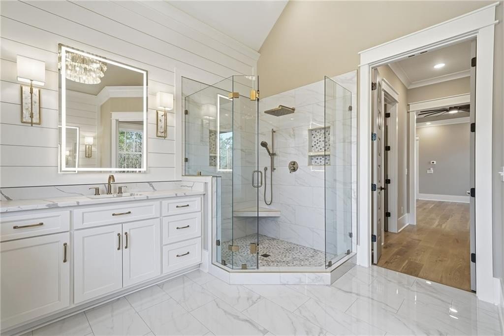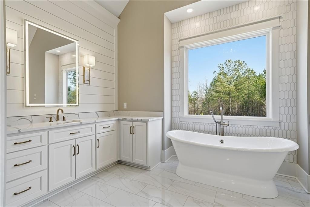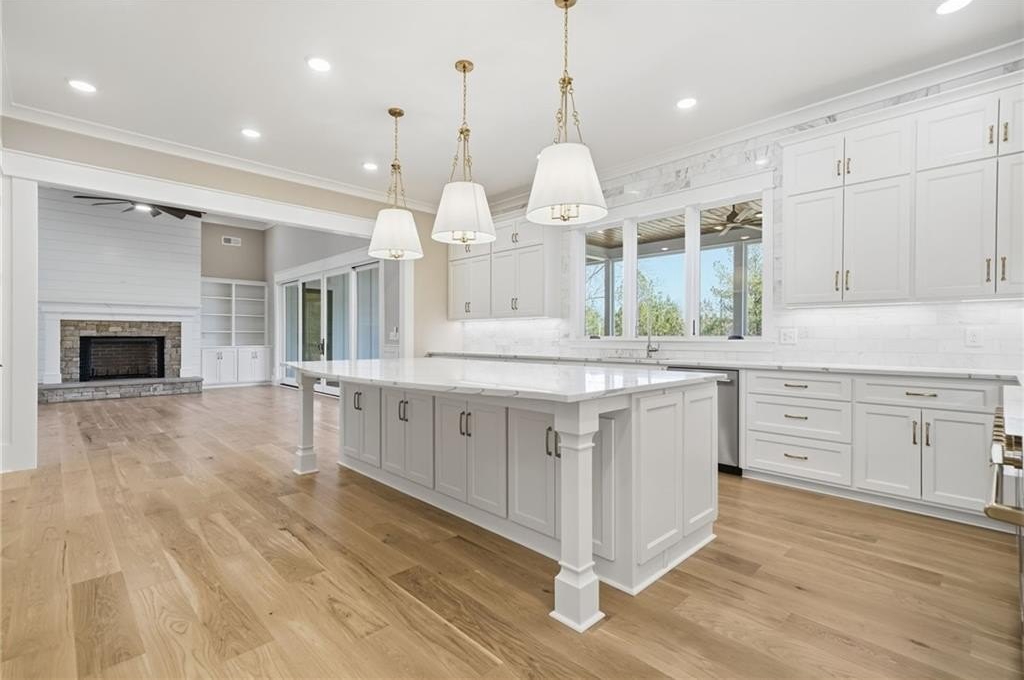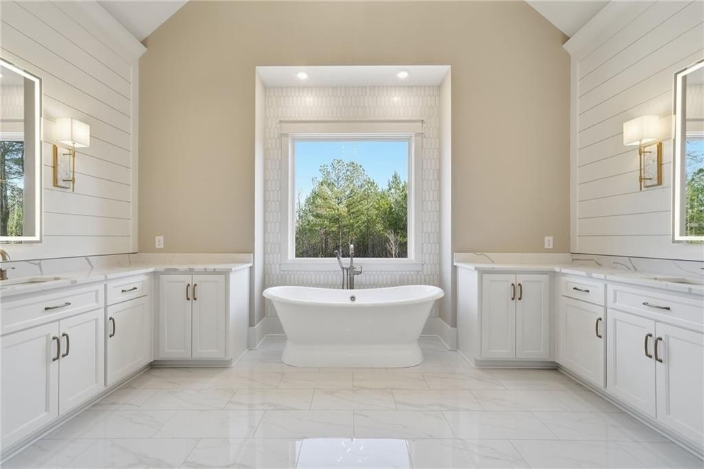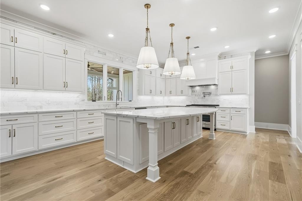 Take a look at this luxury, new construction home in Cherokee County! The builder did not miss a detail on this one and the quality is apparent as soon as you arrive. This stunning home features an amazing 2+ acre lot with a long driveway leading up to the home, flat front and back yards + an irrigation system, immaculate landscaping, 4 bedrooms + 4 bathrooms on the main level (two of the secondary bedrooms have ensuites - perfect for quests, older parents or kids), quartz countertops throughout, high-end lighting and plumbing fixtures, hardwood floors throughout, a spacious kitchen with a 10' island, a 48" gas range and pot filler, timeless tile selections throughout all bathrooms, two walk-in closets in the primary bedroom (EVERY closet in the home is custom), and large sliding doors in the living room opening up to a huge back porch with a fireplace, all season panels, and room for seating + dining. The walk-out back yard is amazing to look back at and would be perfect for a pool. There is a full, unfinished basement that could be finished for extra square footage or is great for storage. This location offers easy access to both I-575 and I-75, sitting right between Canton and Cartersville. It's also convenient to Lake Allatoona and Lake Arrowhead. This home was built by Cherokee County's 2025 and '26 Builder of the Year, Woodall Construction Company!