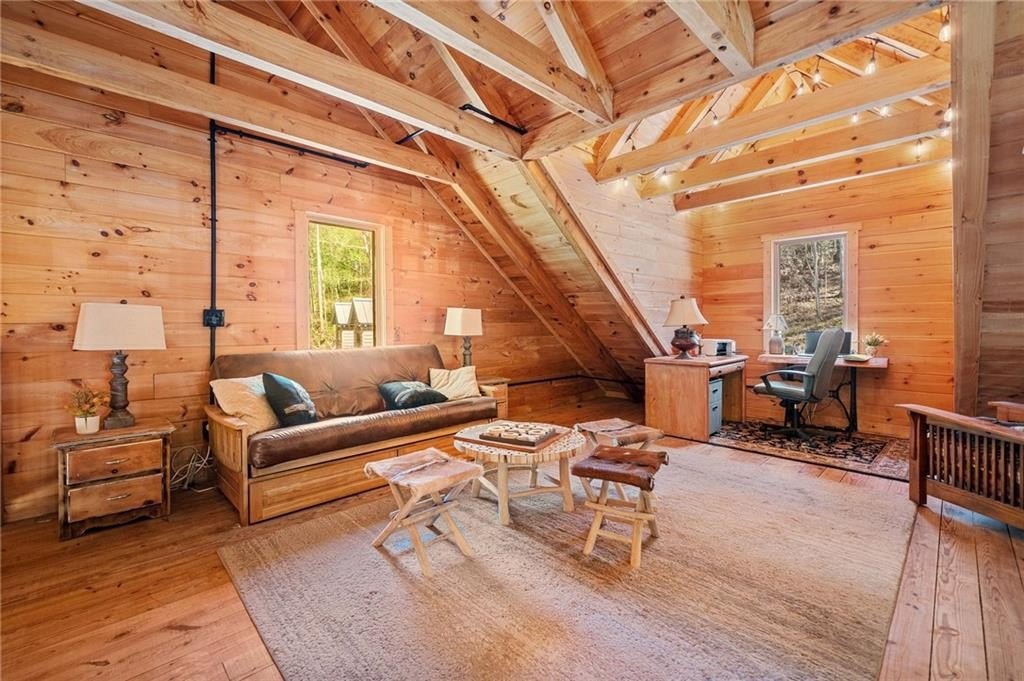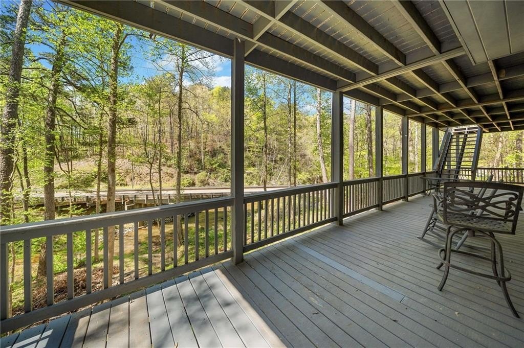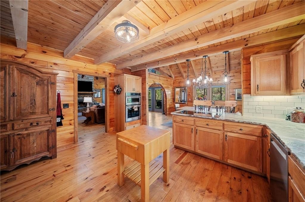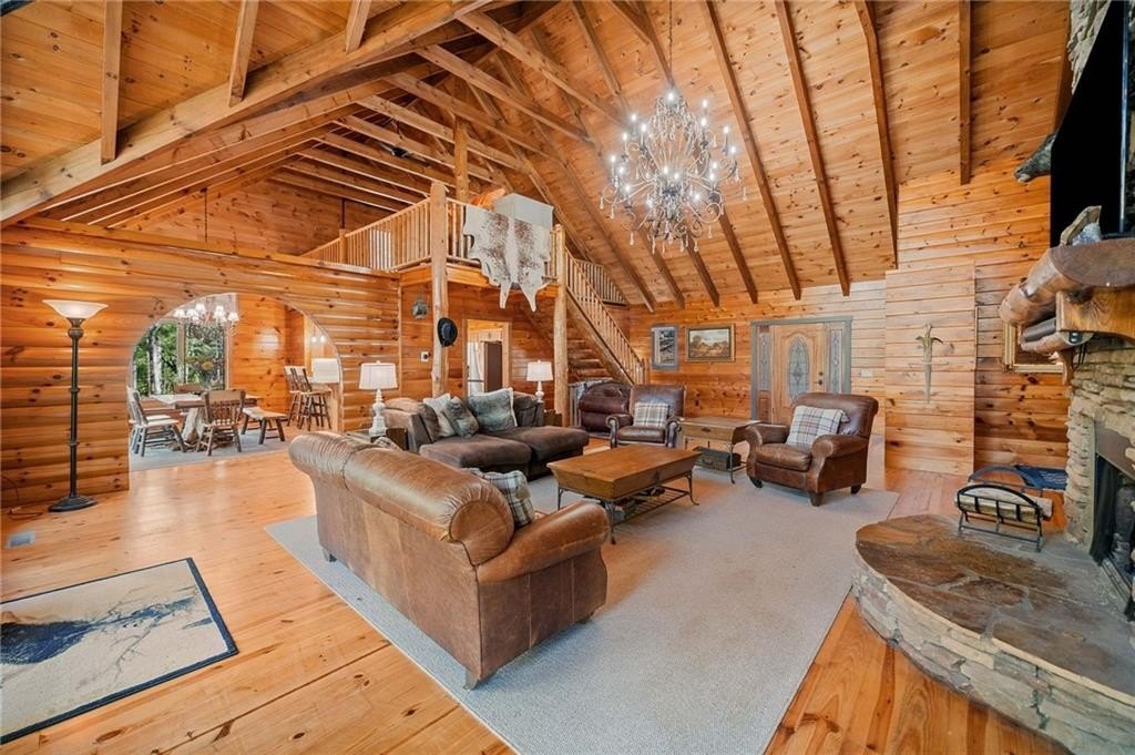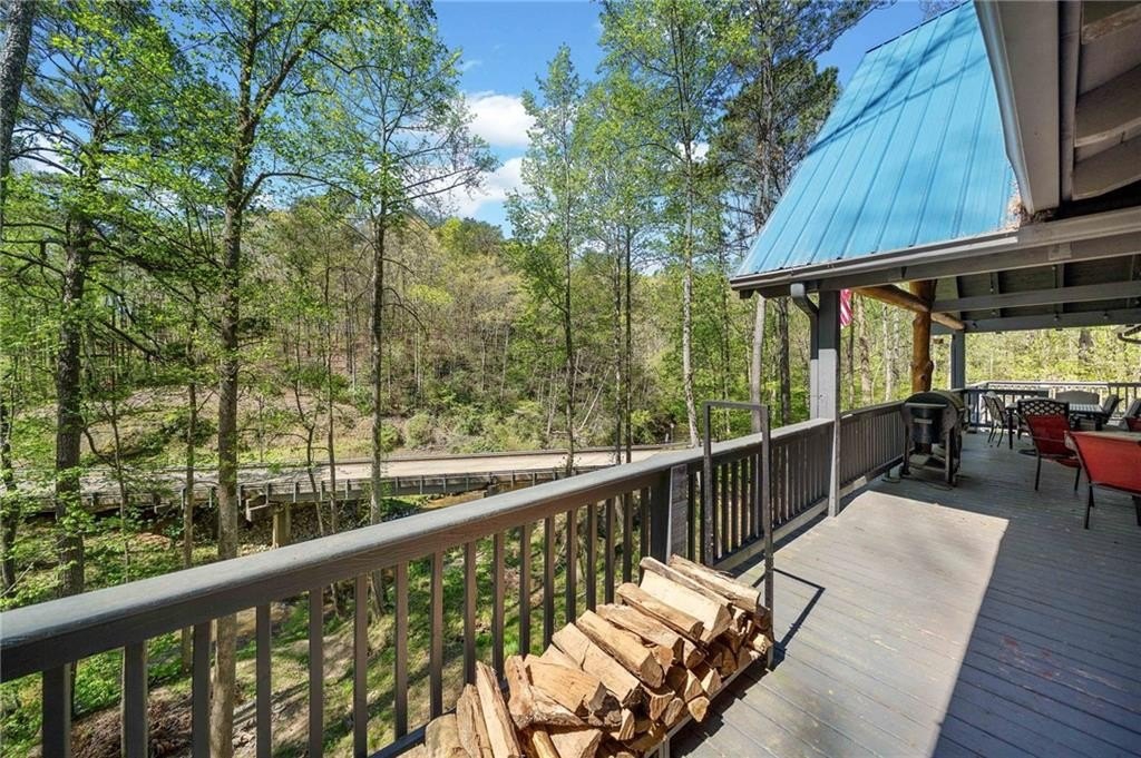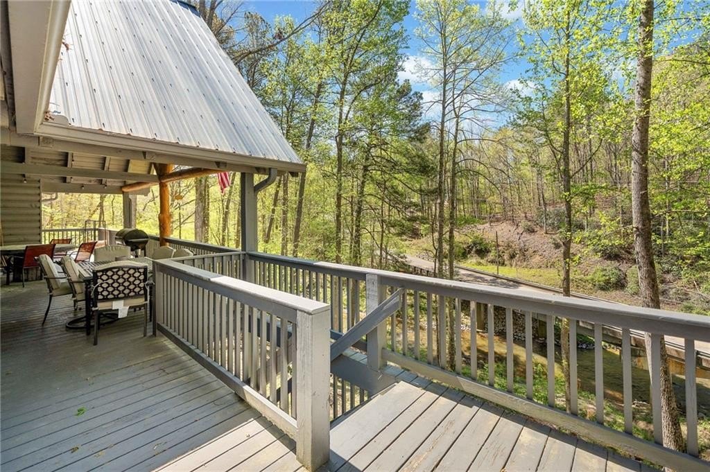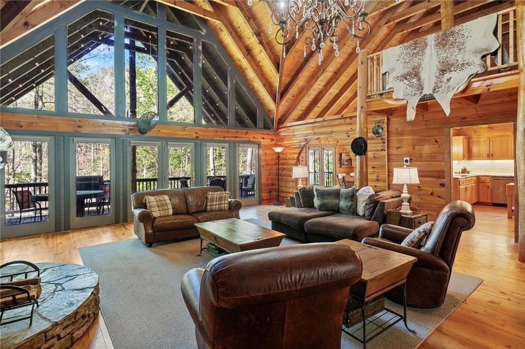 Unrestricted land No HOA on shoal creek BRAND NEW HOT TUB! Discover this stunning wood log cabin that perfectly blends rustic charm with modern convenience. Nestled in a serene setting as you listen to the rushing waters of shoal creek on one of your 2-60' long decks. This home boasts a dramatic cathedral ceiling that fills the open concept living space with natural light. At the heart of the home stands a large, striking rock fireplace, serving as a focal point and adding a cozy ambiance. A loft overlooking the family room provides additional space for relaxation or entertainment. The updated kitchen is a chef's dream, featuring leathered granite countertops, sleek new stainless-steel appliances, and ample storage. Hardwood floors extend throughout the home, adding warmth and elegance to every room. The master bedroom features high ceilings and a private loft, creating a serene retreat within the home. All furniture to remain with the home, ready for residential or investors. Already has the certificate for short term rentals and great rental history. Outside, a newly installed driveway and retaining wall enhance both functionality and curb appeal. The property includes a spacious 3-car garage with a beautifully finished apartment above ideal for guests, a home office, or rental income. The HVAC system, just 3 years old, ensures year-round comfort. This unique property offers the perfect combination of rustic charm and modern amenities. Schedule your showing today to experience this log cabin oasis! Close to Reinhardt college, lake Altoona, Lake Arrowhead, Garland Mountain, downtown Canton, and Callahan Golf course. Current Appraisal of $850,000 available.