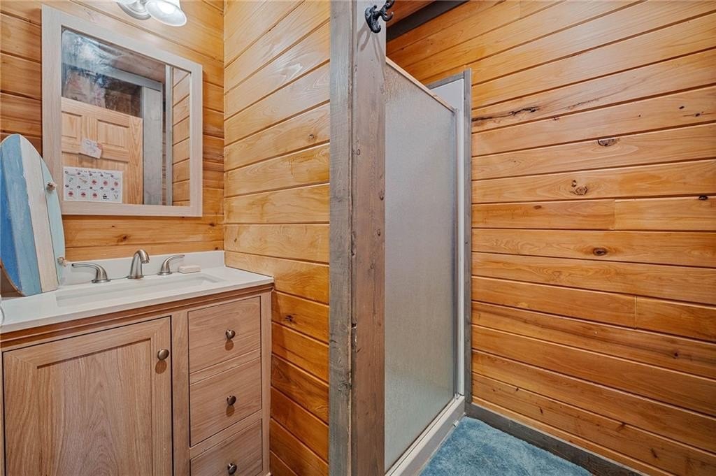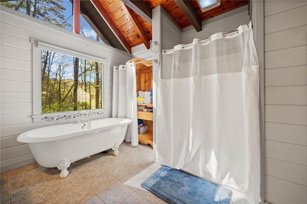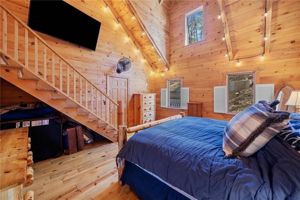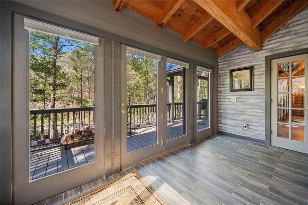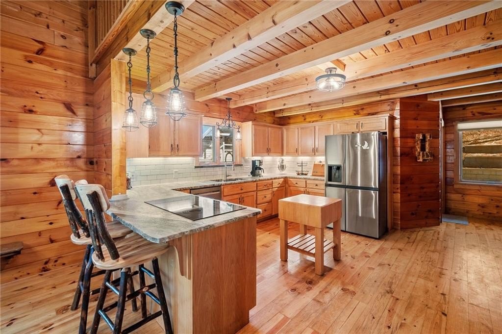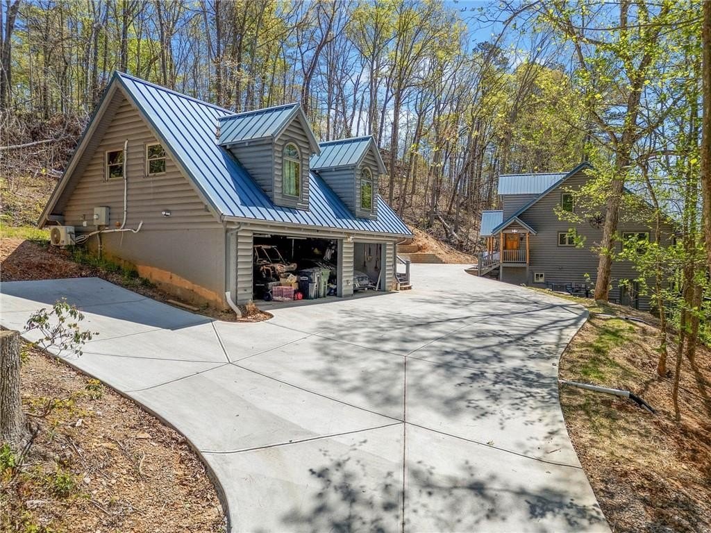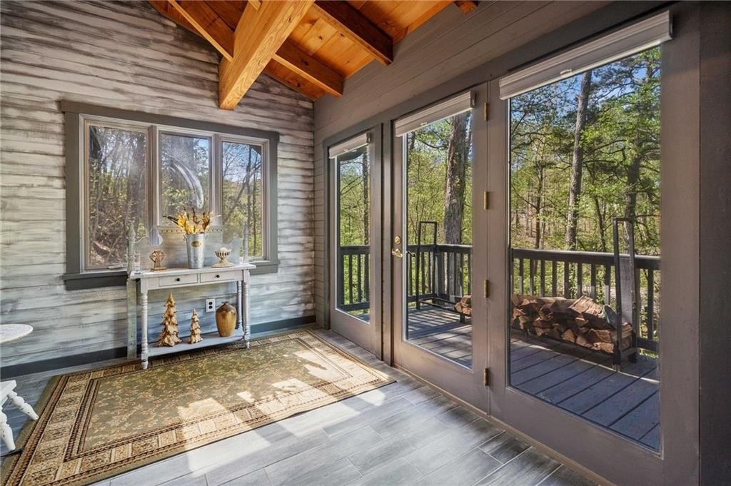 Unrestricted land No HOA on shoal creek BRAND NEW HOT TUB! Discover this stunning wood log cabin that perfectly blends rustic charm with modern convenience. Nestled in a serene setting as you listen to the rushing waters of shoal creek on one of your 2-60' long decks. This home boasts a dramatic cathedral ceiling that fills the open concept living space with natural light. At the heart of the home stands a large, striking rock fireplace, serving as a focal point and adding a cozy ambiance. A loft overlooking the family room provides additional space for relaxation or entertainment. The updated kitchen is a chef's dream, featuring leathered granite countertops, sleek new stainless-steel appliances, and ample storage. Hardwood floors extend throughout the home, adding warmth and elegance to every room. The master bedroom features high ceilings and a private loft, creating a serene retreat within the home. All furniture to remain with the home, ready for residential or investors. Already has the certificate for short term rentals and great rental history. Outside, a newly installed driveway and retaining wall enhance both functionality and curb appeal. The property includes a spacious 3-car garage with a beautifully finished apartment above ideal for guests, a home office, or rental income. The HVAC system, just 3 years old, ensures year-round comfort. This unique property offers the perfect combination of rustic charm and modern amenities. Schedule your showing today to experience this log cabin oasis! Close to Reinhardt college, lake Altoona, Lake Arrowhead, Garland Mountain, downtown Canton, and Callahan Golf course. Current Appraisal of $850,000 available.