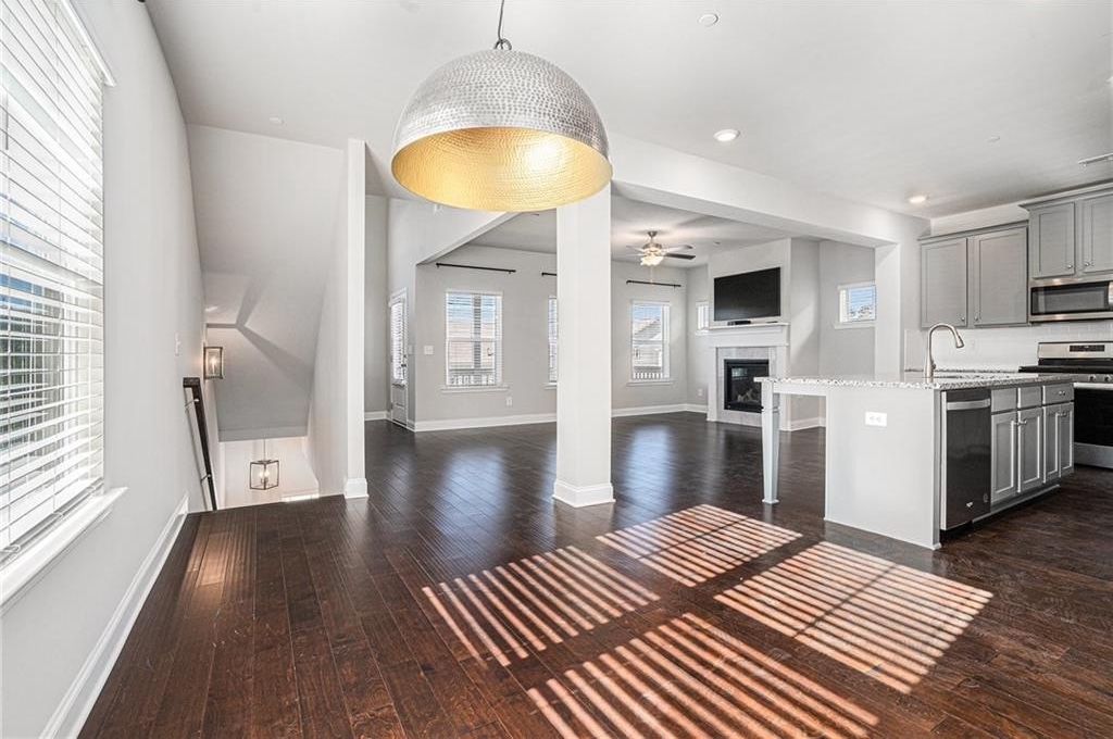 Step inside to soaring high ceilings, abundant natural light, and gleaming hardwood floors. The open-concept layout features a gorgeous great room with a cozy fireplace, seamlessly connected to the dining area and chef’s kitchen. You'll love the large kitchen island, granite countertops, stainless steel appliances, pantry, and stylish updated lighting—perfect for everyday living and entertaining.