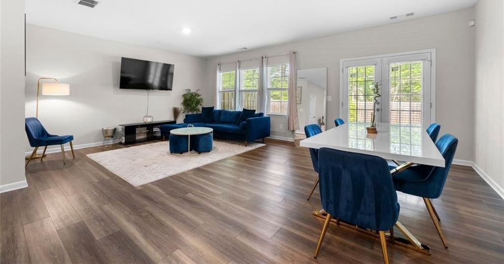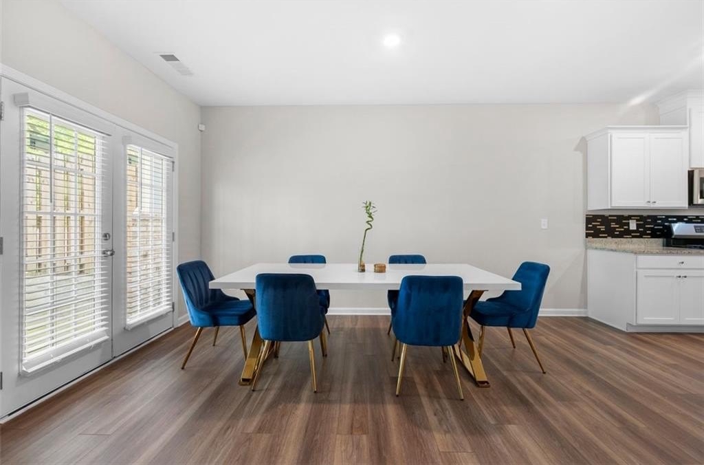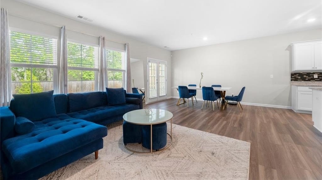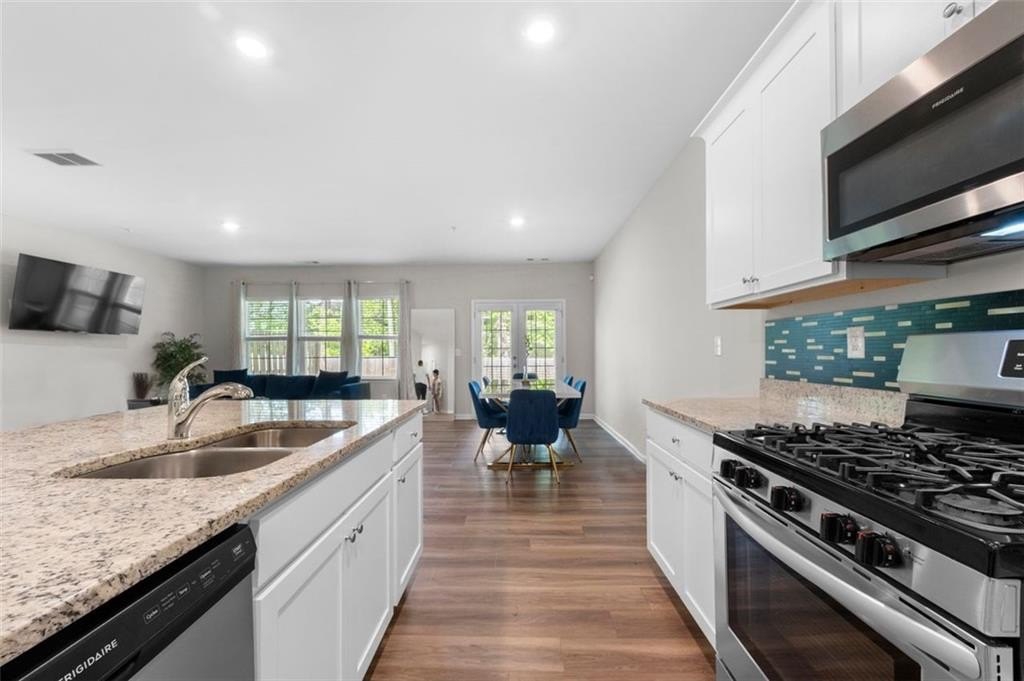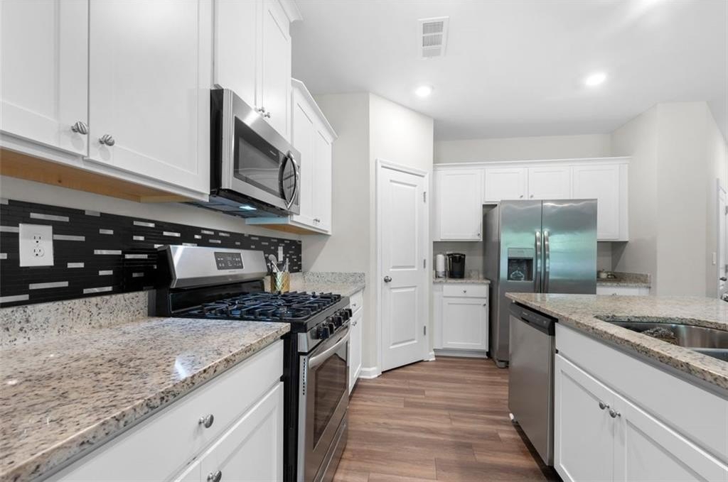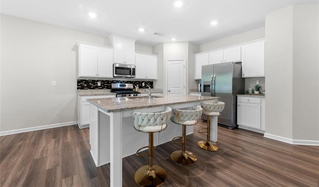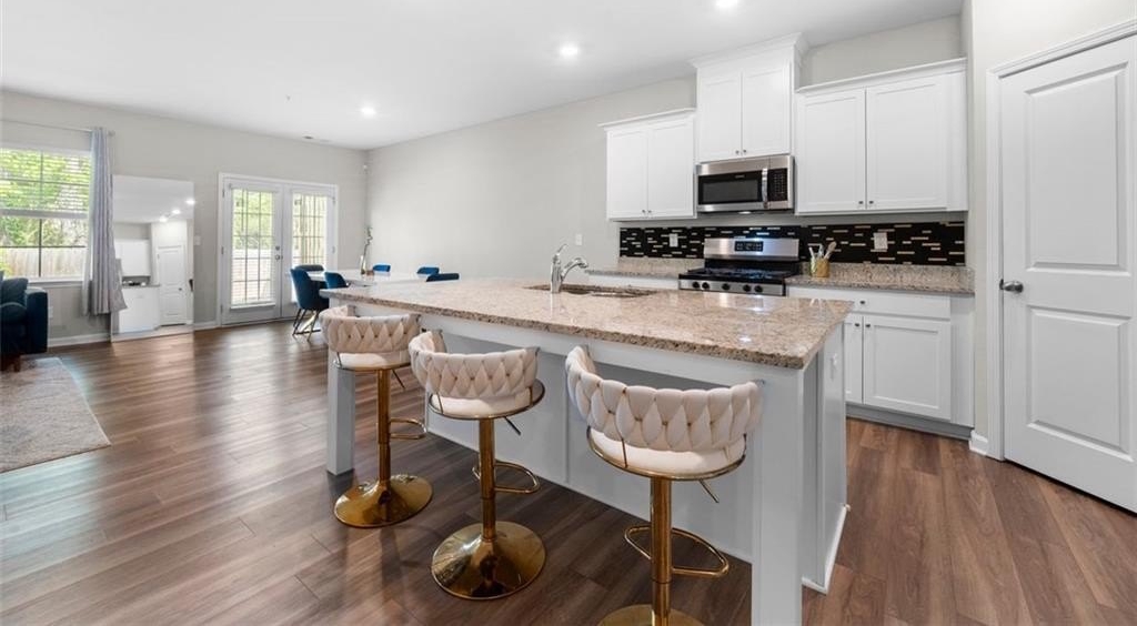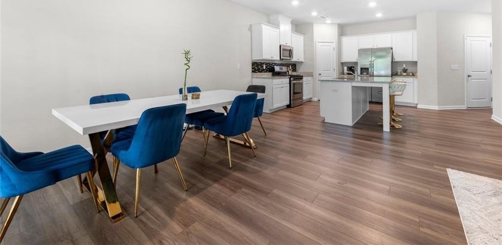 Discover effortless living in this beautifully designed end-unit townhome, located in the sought-after White Oaks community, just minutes from historic Marietta Square. Built in 2022, this thoughtfully crafted home offers modern elegance with 3 spacious bedrooms, 2.5 bathrooms, and a two-car garage. Step inside to an inviting open-concept floor plan where natural light fills the space and style meets function. The gourmet kitchen is a chef’s dream with granite countertops, a large island, and sleek finishes—perfect for cooking, entertaining, or enjoying a quiet morning coffee. Upstairs, the oversized primary suite provides a luxurious retreat featuring a spa-inspired bathroom with a separate tub and shower, double vanity, and a generous walk-in closet. Two additional bedrooms and a full bath offer flexibility for guests, family, or a home office. Outside you will find a private garden with a patio and a wooded view...HOA allows homeowners to fence in the backyard! Enjoy the benefits of low-maintenance living and low HOA fees, all within a quiet, well-kept neighborhood. You’ll love the convenient access to nearby green spaces like Tumlin, Laurel, and Victory Parks, as well as Kennesaw Mountain for hiking and outdoor adventure. Commuters will appreciate being close to CobbLink Public Transportation, The Battery Atlanta, and a wide variety of shopping, dining, and entertainment options. Don’t miss the chance to call this exceptional home your own—where comfort, style, and location come together beautifully.
