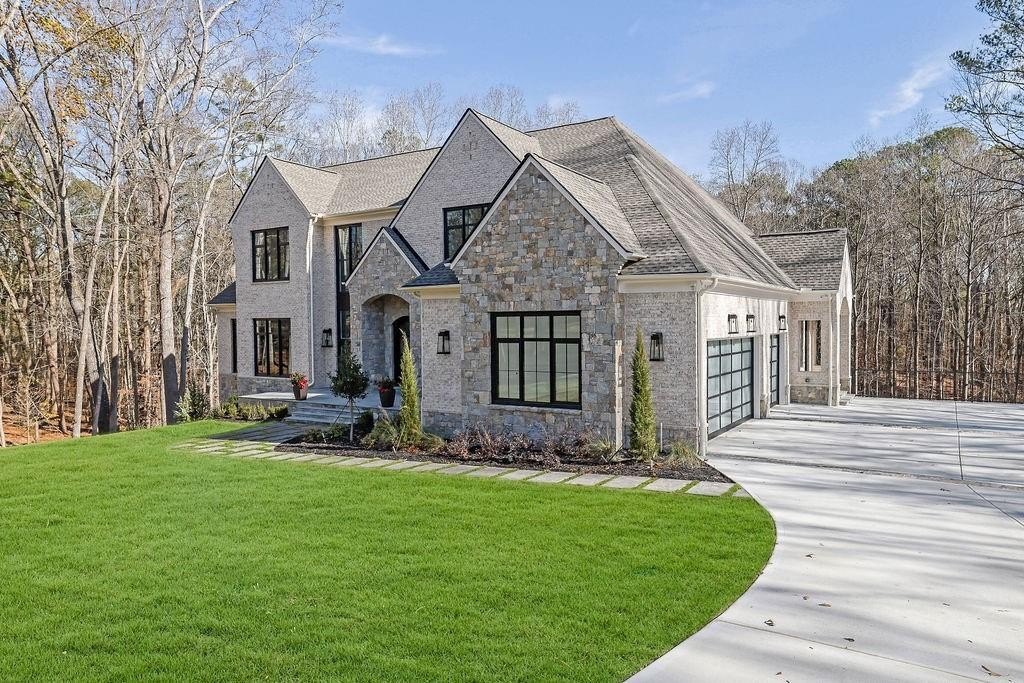 Exquisite French Country Estate in Johns Creek Nestled on a picturesque two-acre lot within an exclusive gated community, this exceptional new construction offers timeless French Country architecture in a prime Johns Creek location. A rare find, this home seamlessly blends elegance, craftsmanship, and modern convenience. Boasting a stunning four-sided stone and brick exterior, the residence features a spacious front porch, a generous deck, and an outdoor entertainment area complete with a gas-burning fireplace. The 100% private backyard offers a serene natural retreat, providing the most luxurious and scenic setting. Inside, the home showcases expansive living spaces and high-end finishes throughout. The elegant kitchen is complemented by a spacious scullery and premium appliances, perfect for culinary enthusiasts. The owner's suite is a true sanctuary, featuring an opulent ensuite bath and a custom-designed walk-in closet. A private office completes the main floor. The second level hosts four additional bedrooms, each with its own walk-in closet and private bath. A large gathering space with oversized windows invites natural light and breathtaking views. For ultimate convenience, laundry rooms are located on both floors. The ready-to-finish basement offers a blank canvas for customization, with 12-foot ceilings, abundant daylight, and the potential to accommodate a second kitchen, multiple bathrooms, and an expansive entertainment area. An oversized three-car garage, complete with an EV charging station, adds the finishing touch to this meticulously designed home. Experience unparalleled luxury and privacy in this one-of-a-kind estate
