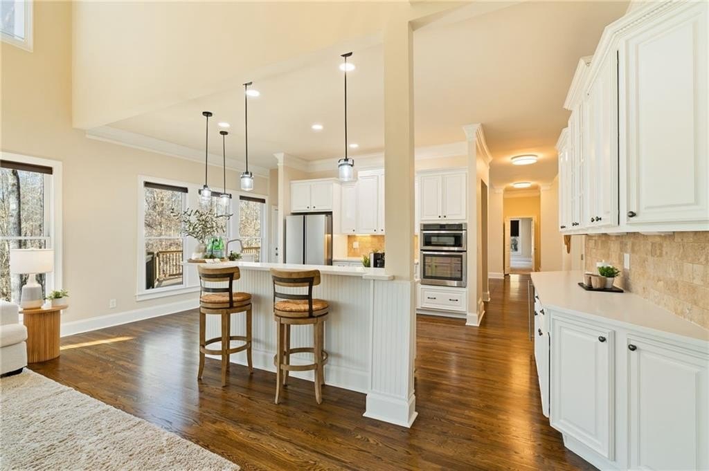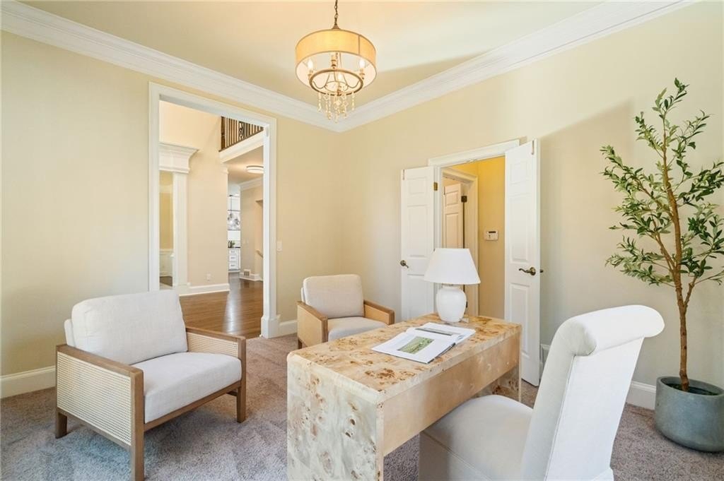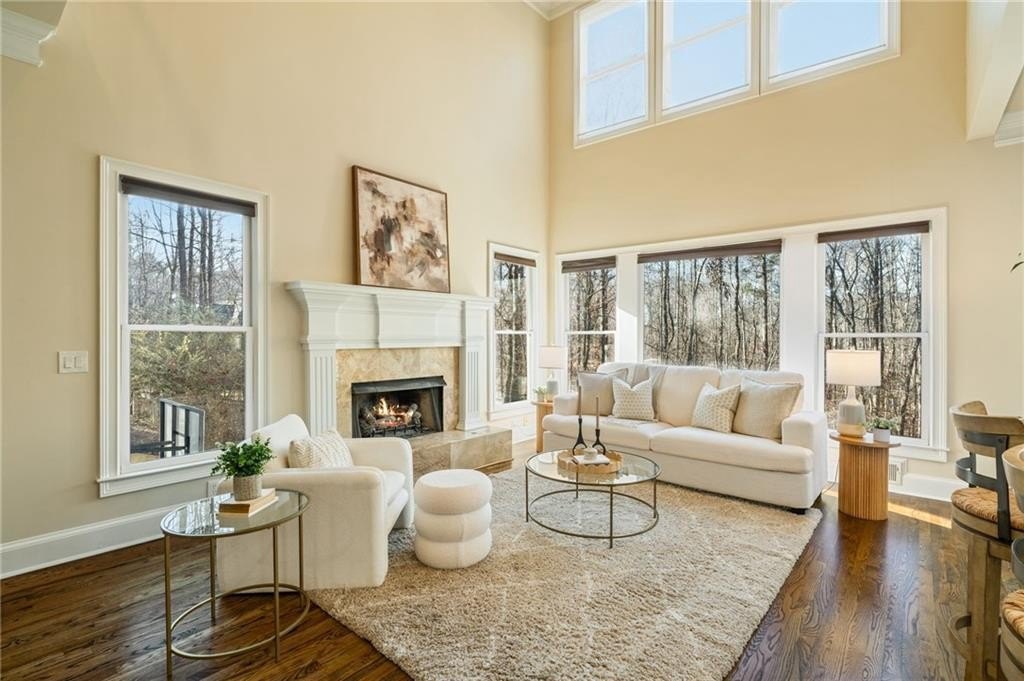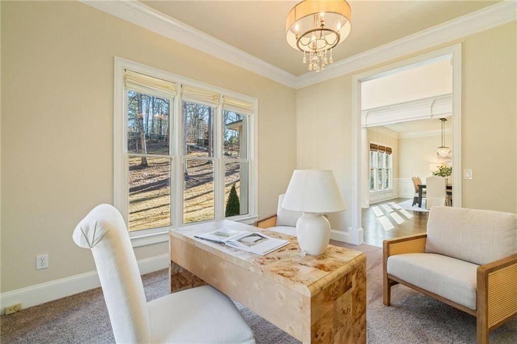 PRIVACY & LOCATION!!! This beautiful estate home with DESIRABLE MASTER ON MAIN, 4 CAR GARAGE & sits on NEARLY 3 ACRES st sought-after areas and has a SALTWATER POOL. NO HOA and just minutes from everything in Johns Creek - located right off of Peachtree Pkwy! FANTASTIC CURB APPEAL sets the tone, featuring a traditional side-entry 2-car garage plus an additional attached 2-car garage at the rear of the home-ideal for car enthusiasts, hobbyists, or those looking for future expansion, workshop space, or additional basement finishing opportunities. The main floor has a large, inviting foyer with soaring ceilings, floor to ceiling windows that capture the private, wooded estate lot! There is plenty of room for entertaining with an open concept family room and dining area. The kitchen has updated quartz countertops, some newer appliances and a secondary living space / keeping room with a cozy fireplace. The renovated laundry room and half bath complete this space. There is also a private office as well and the master suite. UPSTAIRS you will find 4 additional bedrooms (including one that is a SECONDARY MASTER SUITE as well as another room that can be a flex bonus room and 2 full bathrooms. THE FINISHED BASEMENT has an expansive entertainment area, home theatre, a home gym and half bath. Plus, the additional 2 car garage! The theatre room furniture, ping pong table, exterior basketball goal and hot tub convey with the property! Updates include fresh interior and exterior paint, refinished hardwood floors, all-new carpet, and updated lighting and ceiling fans throughout. MAJOR SYSTEMS HAVE BEEN REPLACED for your peace of mind, including four brand-new HVAC units, the roof is only 3 years old (30-year architectural shingles), has new gutters and trim. Water heater has been replaced as well! TOP SCHOOLS and very close to lots of shopping in Johns Creek, Cumming and Alpharetta - The Collection is 7 min away, 12 min to Halcyon, 18 min to Avalon, 20 min to Downtown Alpharetta & 20 min from the Forum in Peachtree Corners - 5 premium dining and shopping locations and you are close to them all!