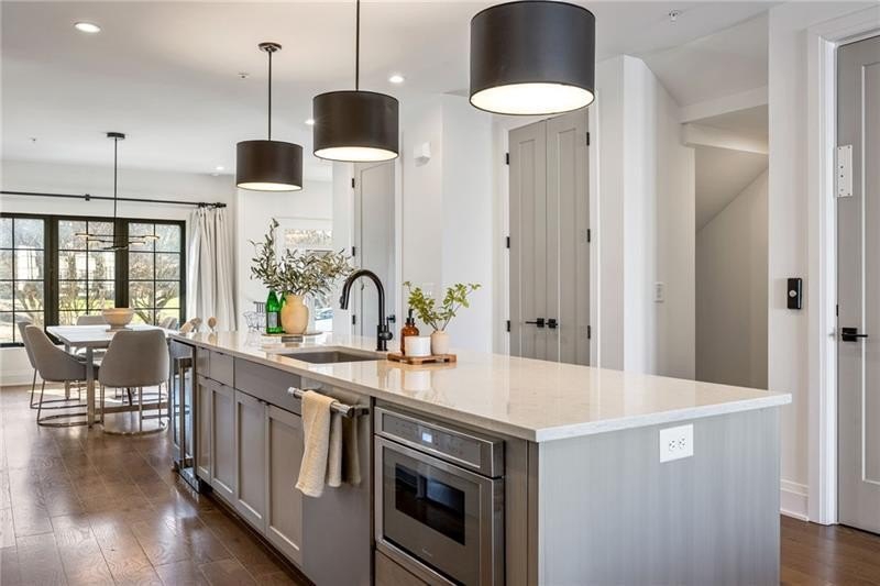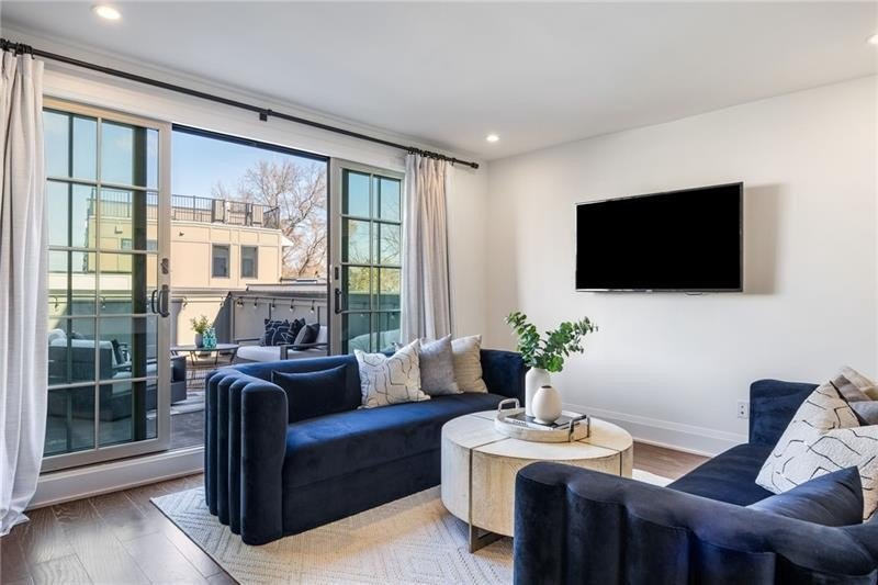 Steps from The Beltline and The Krog District, this expansive 4-bedroom, 4.5-bath residence delivers the ultimate Intown lifestyle. As the largest floor plan in the community, it offers exceptional space, abundant natural light, and enhanced privacy. Enjoy every convenience with a two-car garage, private elevator to all levels, and a rooftop deck with skyline views. The main level features an open layout with dedicated dining, a chef’s kitchen with Thermador appliances, oversized island with bar seating, and a wine fridge. The adjoining living room is anchored by a fireplace with custom built-ins. The primary suite boasts dual walk-in closets, double vanities, and an oversized shower, while each secondary bedroom includes an en-suite bath. The fourth floor, accessible by elevator, offers a versatile entertainment/flex space, an additional bedroom suite, and direct access to the rooftop deck—ideal for alfresco dining and gatherings. The terrace level provides a private entry, fourth bedroom suite, and garage access. With The Beltline, Krog Street Market, and Inman Park just outside your door, this home combines space, style, and walkability in one of Atlanta’s most desirable locations.