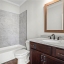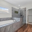 Upstairs, a beautifully designed landing with hardwood floors and wainscoting leads to three spacious secondary bedrooms, each with walk-in closets. The Jack-and-Jill layout offers a dual-sink vanity and stylish finishes, while a cozy built-in window seat adds charm and practicality. The show-stopping owner’s suite is a true retreat, featuring a tray ceiling, expansive layout, spa-like bath with his-and-her vanities, soaking tub, fully tiled shower, and an oversized walk-in closet with custom organization.