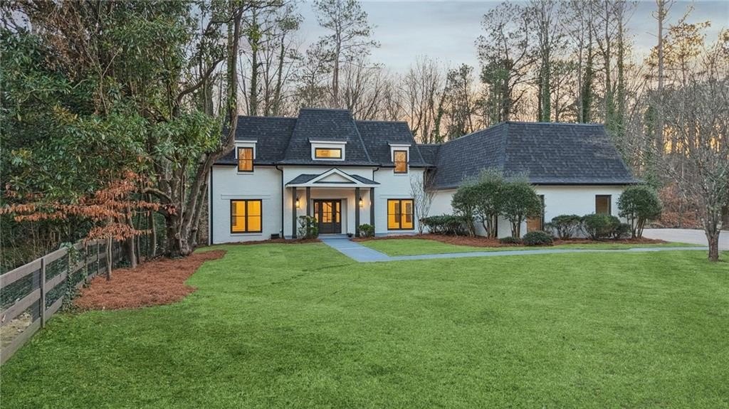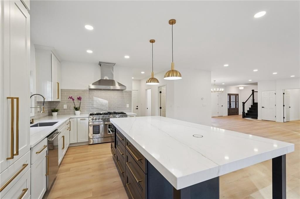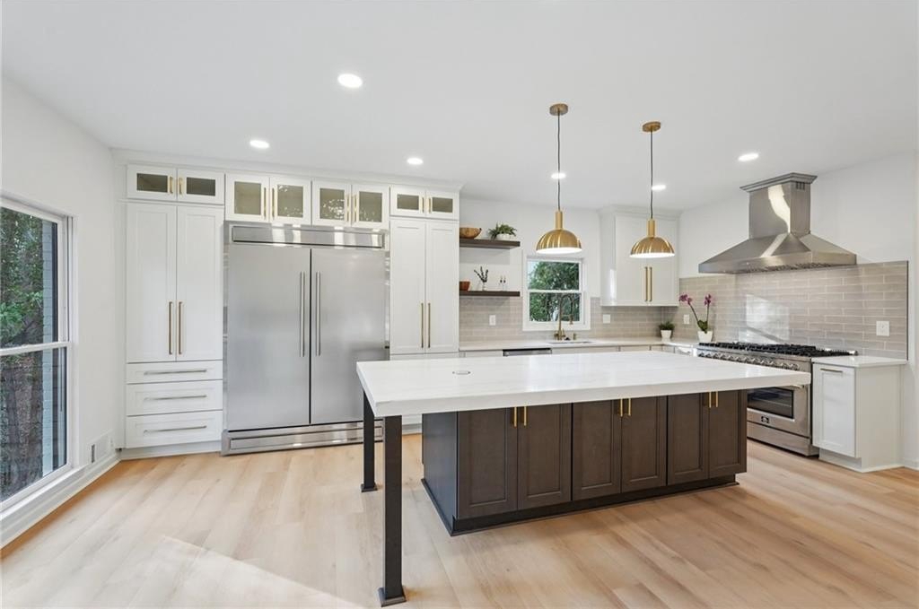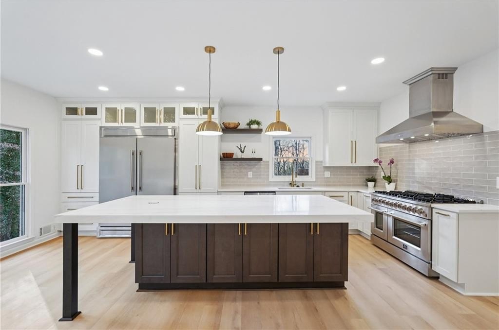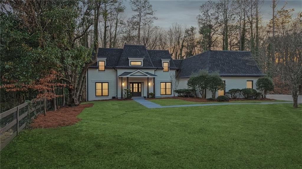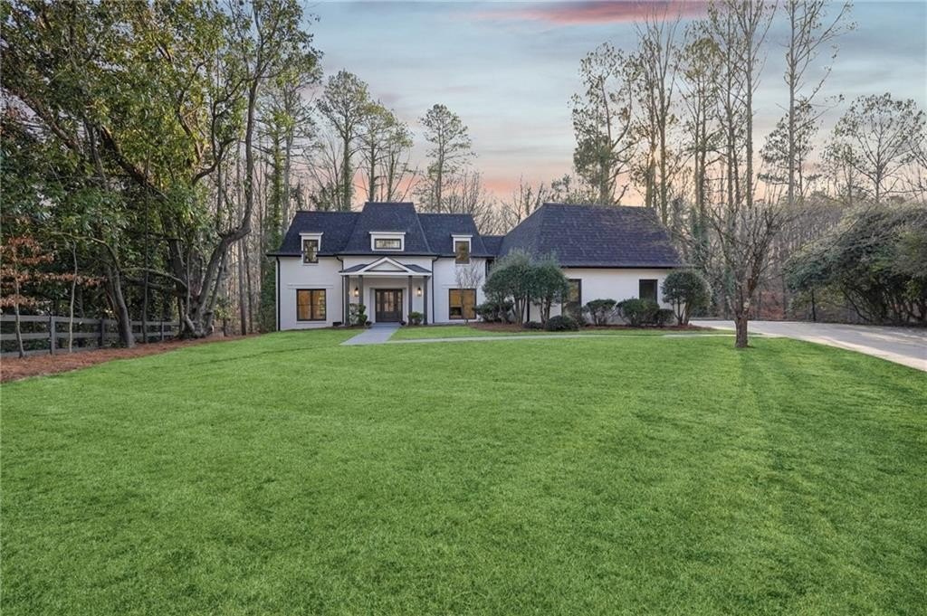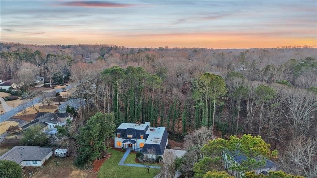 Tucked at the end of a quiet Brookfield Country Club cul-de-sac in Roswell, this beautifully renovated home delivers the country club lifestyle-without the HOA. Located minutes from golf, tennis, dining, shopping, and country club amenities, this exceptional neighborhood is known for its friendly feel, where neighbors gather outside and kids can play. Set on just over 1.5 acres, the property offers a rare large lot in Roswell with a wide, level front yard, side-entry garage, and a private backyard that transitions from a sodded, level space to a natural wooded buffer with a small creek beyond. Step inside to a light and airy space with high ceilings, smooth, clean finishes, and bright recessed LED lighting. Nearly everything is new: a new roof, new windows, fresh interior and exterior paint, and luxury vinyl plank flooring throughout. The open layout creates an easy flow for everyday living and entertaining, and the home offers so much storage-from expansive closets to oversized unfinished spaces ready for your future plans. The heart of the home is a standout chef's kitchen with all-new cabinetry and an oversized 12-foot quartz island with an elegant mitered-edge quartz countertop-ideal for hosting. Floor-to-ceiling cream cabinets are paired Flemish glass-front accent cabinets above the built-in fridge/freezer, floating shelves for warmth and character, and the dark wood-stained island cabinetry. High-end stainless steel Forno appliances complete the space, including a statement 48" dual-fuel double-oven range with 8 gas burners, a griddle, a powerful 48" industrial-style vent hood, a built-in microwave drawer, and a sleek side-by-side built-in fridge and freezer. Finishing touches include brushed gold hardware with oversized pulls, coordinated lighting and faucets, generous cabinet storage, and a pop-up charging station with built-in wireless charging. A dedicated wine bar with wine fridge and wine rack makes entertaining effortless. A walk-in pantry with electrical outlets keeps appliances out of sight and adds even more storage. Just off the kitchen, the laundry room is equally impressive with ample cabinetry, a folding station, floating shelf, and a soaking sink-plus plenty of space for storage and everyday laundry routines. From the side-entry garage, you'll love the quartz-topped drop zone with drawers and storage cabinetry, plus a spacious half bath nearby. The garage includes an oversized workshop/storage area-perfect for tools, bikes, golf gear, or hobbies. Enjoy true one-level living with the primary suite on the main, offering comfort and privacy with a sitting room or home office overlooking the serene front yard and a large walk-in closet ready to be personalized. The primary bath feels spa-like with a walk-in shower, freestanding soaking tub, double vanity with a built-in power strip for everyday essentials, and a private water closet. Upstairs are four generously sized bedrooms with excellent closet space and access to beautifully updated bathrooms. Two bedrooms feature private ensuites, and the others share a Jack-and-Jill bath-each updated with tiled showers/tubs, new vanities, stone counters, and new lighting. Need even more storage? There's over 1,000 square feet of walk-in unfinished attic space-perfect for seasonal items and future expansion. Downstairs, the unfinished basement offers approximately 2,000 square feet ready for you to expand into. It has been waterproofed and sealed and includes a transferable warranty, plus large glass doors across the back that bring in natural light-ideal for a media room, gym, guest suite, playroom, or more. With top-rated Roswell schools, a rare large flat lot on a cul-de-sac, and an unbeatable Roswell location near country club amenities, this move-in-ready home is a standout. Come see it today-you'll feel it the moment you arrive.