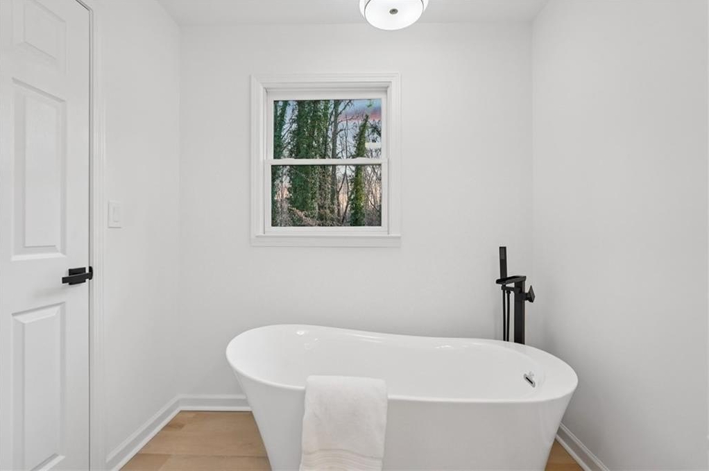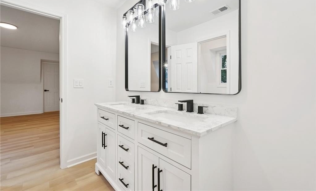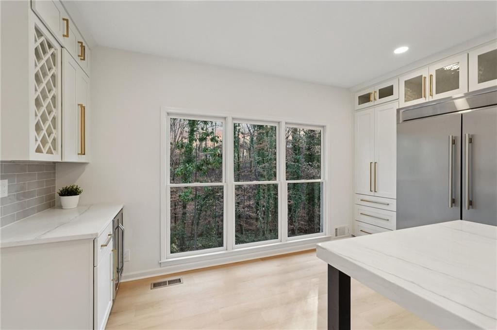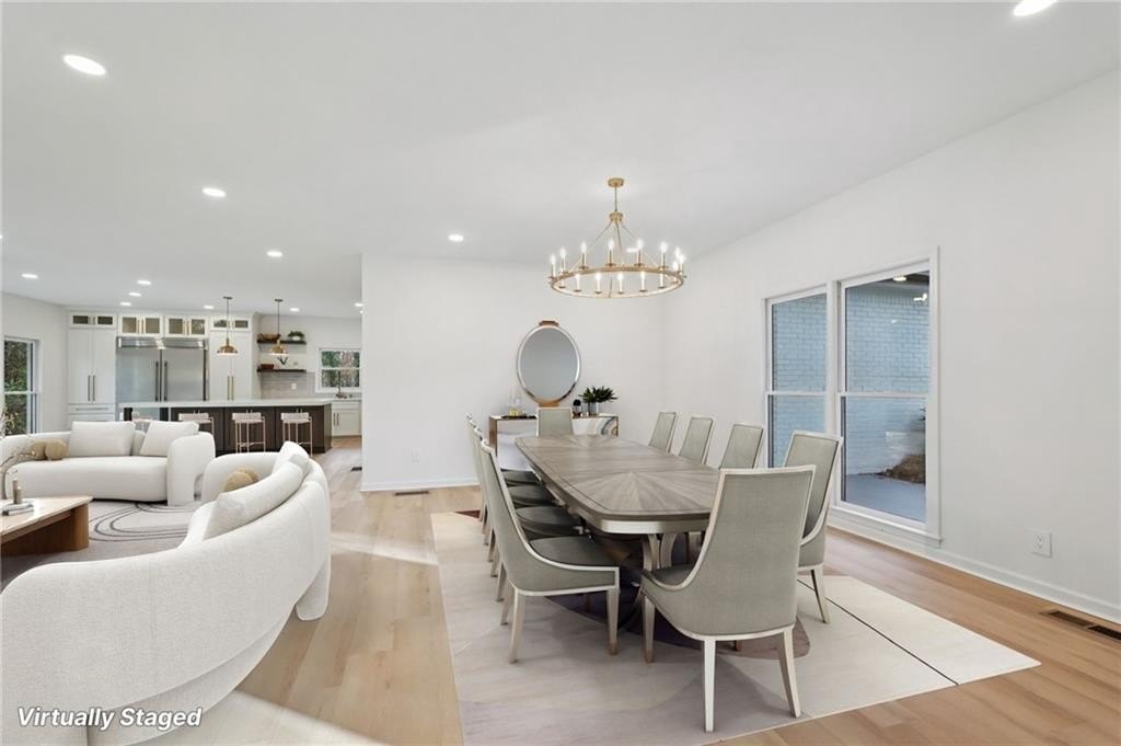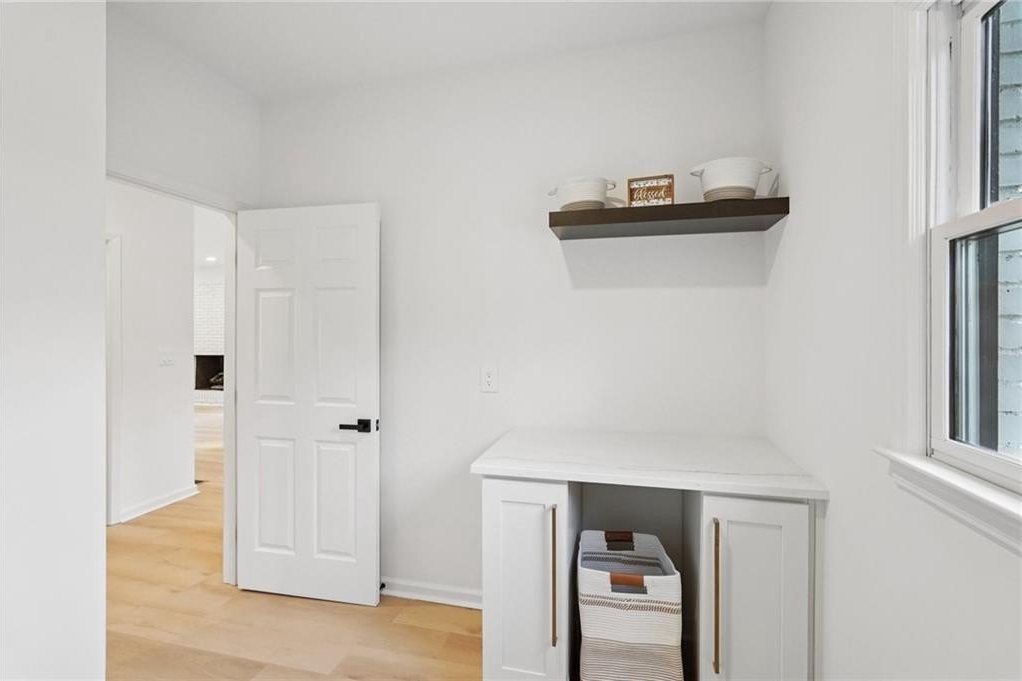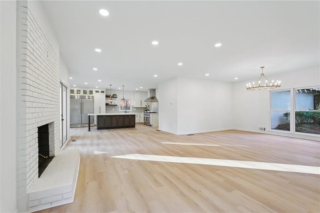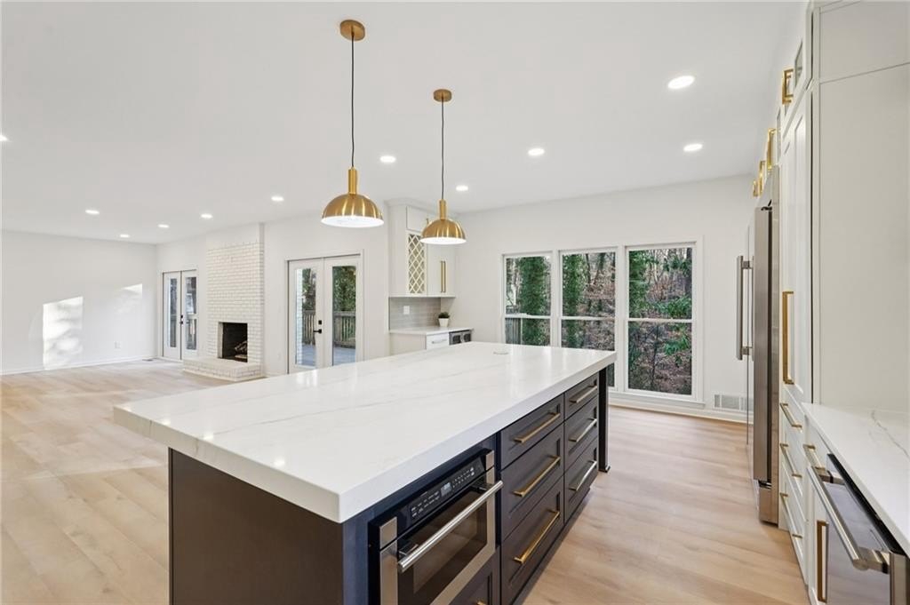 Tucked at the end of a quiet Brookfield Country Club cul-de-sac in Roswell, this beautifully renovated home delivers the country club lifestyle-without the HOA. Located minutes from golf, tennis, dining, shopping, and country club amenities, this exceptional neighborhood is known for its friendly feel, where neighbors gather outside and kids can play. Set on just over 1.5 acres, the property offers a rare large lot in Roswell with a wide, level front yard, side-entry garage, and a private backyard that transitions from a sodded, level space to a natural wooded buffer with a small creek beyond. Step inside to a light and airy space with high ceilings, smooth, clean finishes, and bright recessed LED lighting. Nearly everything is new: a new roof, new windows, fresh interior and exterior paint, and luxury vinyl plank flooring throughout. The open layout creates an easy flow for everyday living and entertaining, and the home offers so much storage-from expansive closets to oversized unfinished spaces ready for your future plans. The heart of the home is a standout chef's kitchen with all-new cabinetry and an oversized 12-foot quartz island with an elegant mitered-edge quartz countertop-ideal for hosting. Floor-to-ceiling cream cabinets are paired Flemish glass-front accent cabinets above the built-in fridge/freezer, floating shelves for warmth and character, and the dark wood-stained island cabinetry. High-end stainless steel Forno appliances complete the space, including a statement 48" dual-fuel double-oven range with 8 gas burners, a griddle, a powerful 48" industrial-style vent hood, a built-in microwave drawer, and a sleek side-by-side built-in fridge and freezer. Finishing touches include brushed gold hardware with oversized pulls, coordinated lighting and faucets, generous cabinet storage, and a pop-up charging station with built-in wireless charging. A dedicated wine bar with wine fridge and wine rack makes entertaining effortless. A walk-in pantry with electrical outlets keeps appliances out of sight and adds even more storage. Just off the kitchen, the laundry room is equally impressive with ample cabinetry, a folding station, floating shelf, and a soaking sink-plus plenty of space for storage and everyday laundry routines. From the side-entry garage, you'll love the quartz-topped drop zone with drawers and storage cabinetry, plus a spacious half bath nearby. The garage includes an oversized workshop/storage area-perfect for tools, bikes, golf gear, or hobbies. Enjoy true one-level living with the primary suite on the main, offering comfort and privacy with a sitting room or home office overlooking the serene front yard and a large walk-in closet ready to be personalized. The primary bath feels spa-like with a walk-in shower, freestanding soaking tub, double vanity with a built-in power strip for everyday essentials, and a private water closet. Upstairs are four generously sized bedrooms with excellent closet space and access to beautifully updated bathrooms. Two bedrooms feature private ensuites, and the others share a Jack-and-Jill bath-each updated with tiled showers/tubs, new vanities, stone counters, and new lighting. Need even more storage? There's over 1,000 square feet of walk-in unfinished attic space-perfect for seasonal items and future expansion. Downstairs, the unfinished basement offers approximately 2,000 square feet ready for you to expand into. It has been waterproofed and sealed and includes a transferable warranty, plus large glass doors across the back that bring in natural light-ideal for a media room, gym, guest suite, playroom, or more. With top-rated Roswell schools, a rare large flat lot on a cul-de-sac, and an unbeatable Roswell location near country club amenities, this move-in-ready home is a standout. Come see it today-you'll feel it the moment you arrive.