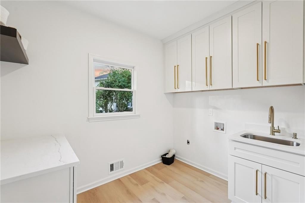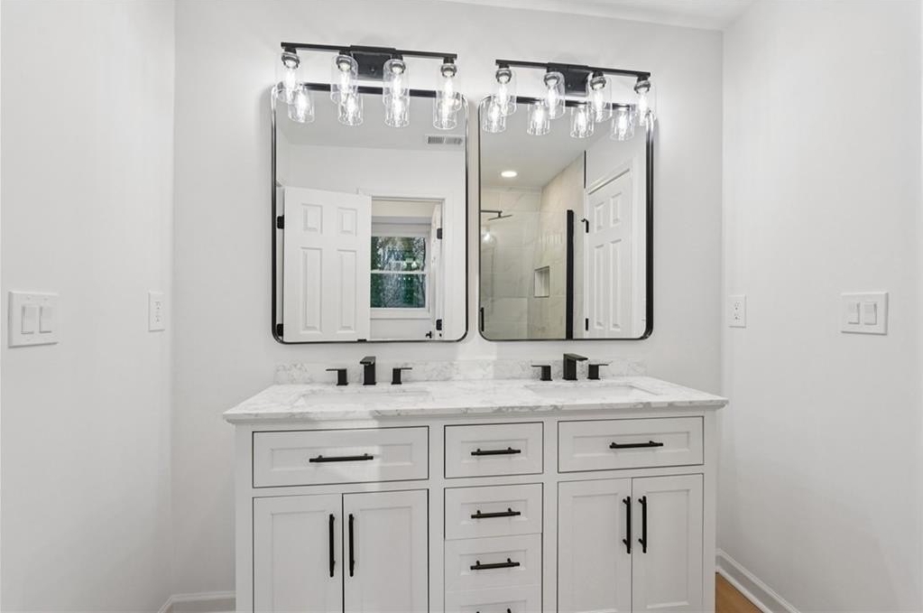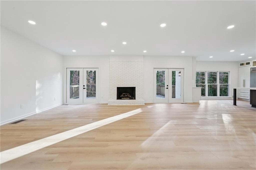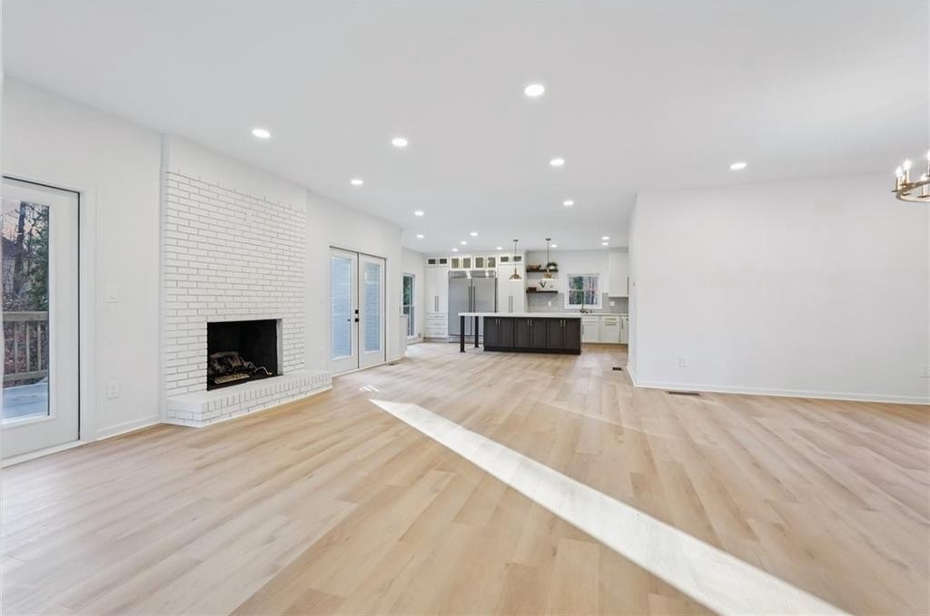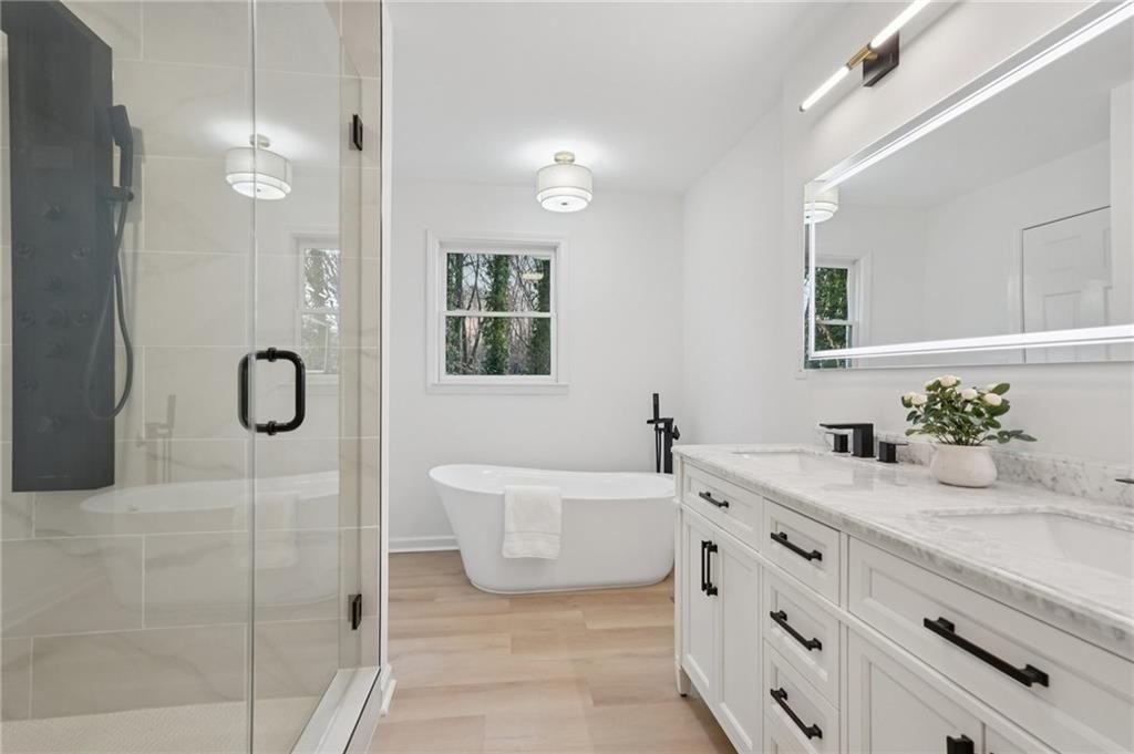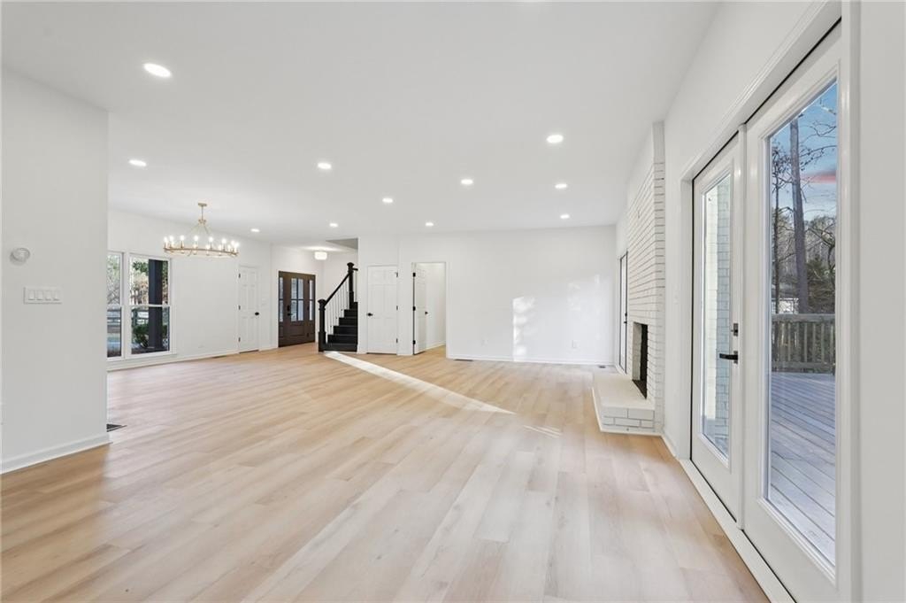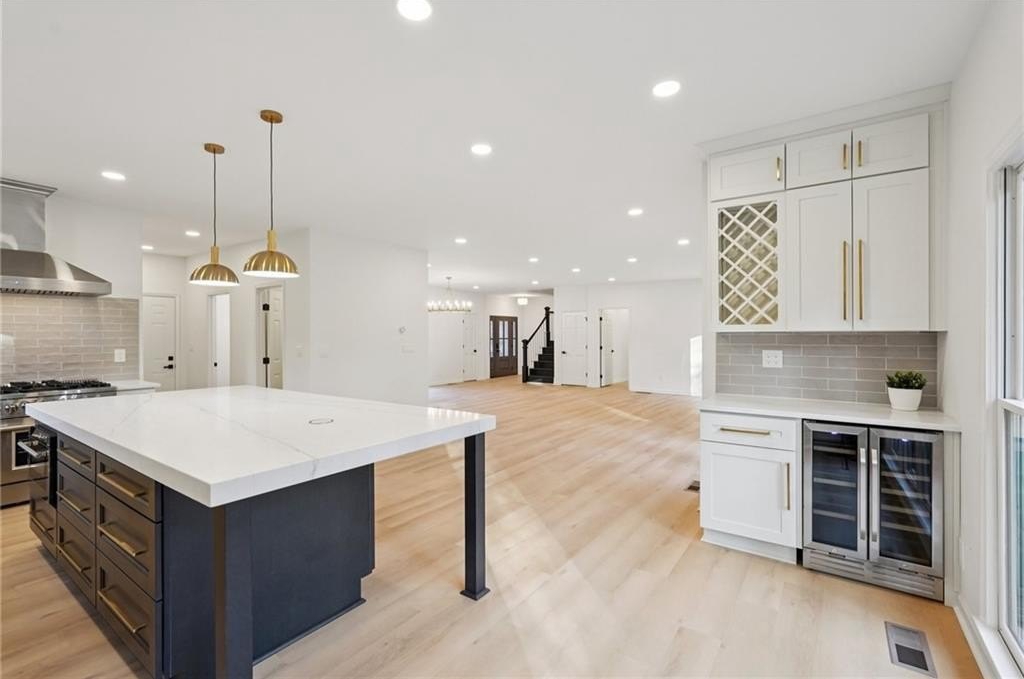 Tucked at the end of a quiet Brookfield Country Club cul-de-sac in Roswell, this beautifully renovated home delivers the country club lifestyle-without the HOA. Located minutes from golf, tennis, dining, shopping, and country club amenities, this exceptional neighborhood is known for its friendly feel, where neighbors gather outside and kids can play. Set on just over 1.5 acres, the property offers a rare large lot in Roswell with a wide, level front yard, side-entry garage, and a private backyard that transitions from a sodded, level space to a natural wooded buffer with a small creek beyond. Step inside to a light and airy space with high ceilings, smooth, clean finishes, and bright recessed LED lighting. Nearly everything is new: a new roof, new windows, fresh interior and exterior paint, and luxury vinyl plank flooring throughout. The open layout creates an easy flow for everyday living and entertaining, and the home offers so much storage-from expansive closets to oversized unfinished spaces ready for your future plans. The heart of the home is a standout chef's kitchen with all-new cabinetry and an oversized 12-foot quartz island with an elegant mitered-edge quartz countertop-ideal for hosting. Floor-to-ceiling cream cabinets are paired Flemish glass-front accent cabinets above the built-in fridge/freezer, floating shelves for warmth and character, and the dark wood-stained island cabinetry. High-end stainless steel Forno appliances complete the space, including a statement 48" dual-fuel double-oven range with 8 gas burners, a griddle, a powerful 48" industrial-style vent hood, a built-in microwave drawer, and a sleek side-by-side built-in fridge and freezer. Finishing touches include brushed gold hardware with oversized pulls, coordinated lighting and faucets, generous cabinet storage, and a pop-up charging station with built-in wireless charging. A dedicated wine bar with wine fridge and wine rack makes entertaining effortless. A walk-in pantry with electrical outlets keeps appliances out of sight and adds even more storage. Just off the kitchen, the laundry room is equally impressive with ample cabinetry, a folding station, floating shelf, and a soaking sink-plus plenty of space for storage and everyday laundry routines. From the side-entry garage, you'll love the quartz-topped drop zone with drawers and storage cabinetry, plus a spacious half bath nearby. The garage includes an oversized workshop/storage area-perfect for tools, bikes, golf gear, or hobbies. Enjoy true one-level living with the primary suite on the main, offering comfort and privacy with a sitting room or home office overlooking the serene front yard and a large walk-in closet ready to be personalized. The primary bath feels spa-like with a walk-in shower, freestanding soaking tub, double vanity with a built-in power strip for everyday essentials, and a private water closet. Upstairs are four generously sized bedrooms with excellent closet space and access to beautifully updated bathrooms. Two bedrooms feature private ensuites, and the others share a Jack-and-Jill bath-each updated with tiled showers/tubs, new vanities, stone counters, and new lighting. Need even more storage? There's over 1,000 square feet of walk-in unfinished attic space-perfect for seasonal items and future expansion. Downstairs, the unfinished basement offers approximately 2,000 square feet ready for you to expand into. It has been waterproofed and sealed and includes a transferable warranty, plus large glass doors across the back that bring in natural light-ideal for a media room, gym, guest suite, playroom, or more. With top-rated Roswell schools, a rare large flat lot on a cul-de-sac, and an unbeatable Roswell location near country club amenities, this move-in-ready home is a standout. Come see it today-you'll feel it the moment you arrive.