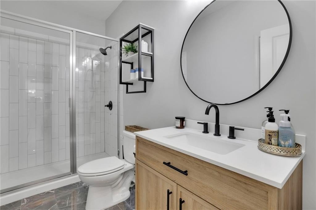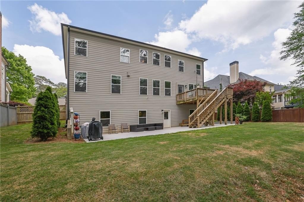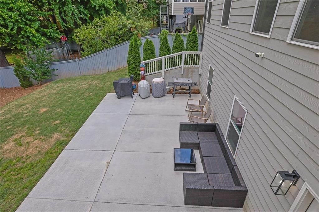 The terrace level provides additional living space, including a bedroom and full bathroom—perfect for guests or an in-law suite. An unfinished area offers exciting potential for a home theater or media lounge, giving you the opportunity to customize the space to suit your lifestyle. Outside, the backyard becomes your private escape with a deck, a vast patio, a fully fenced yard, and a hardscaped firepit. Within this special community, you'll find a scenic lake, clubhouse, pool, tennis courts, and walking trails.