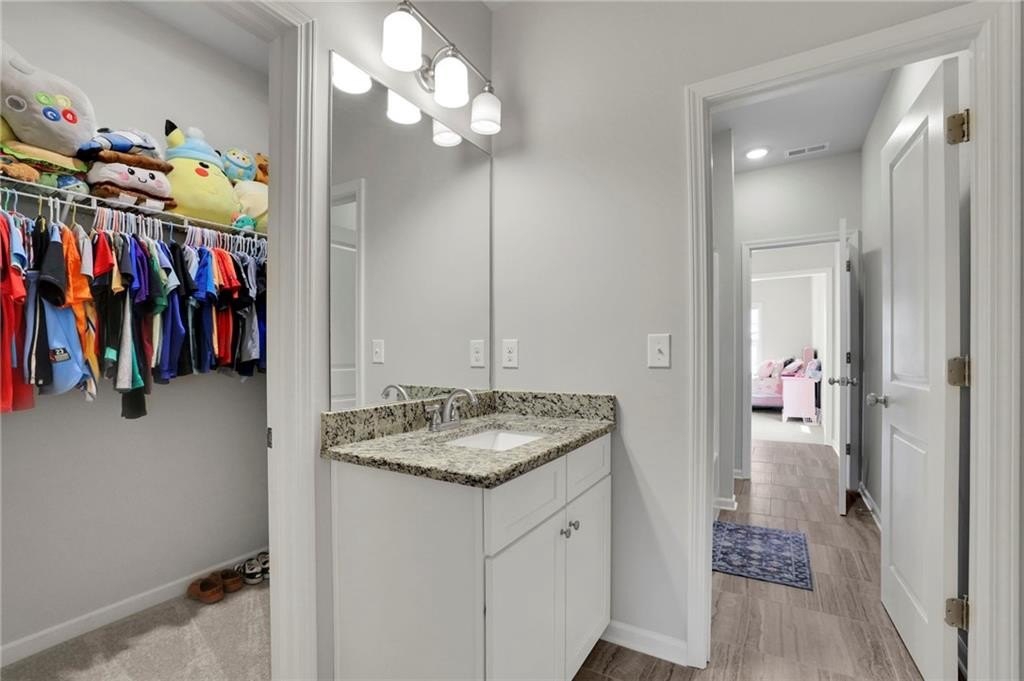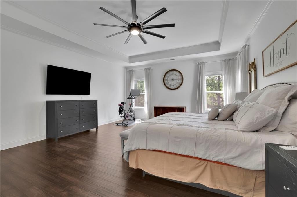 Upstairs, the opulent master suite awaits, complete with a custom-finished closet and a spa-like bathroom that offers a serene retreat after a long day. For added convenience, the master bath connects directly to the laundry room. Two additional bedrooms, plus a versatile media/playroom, and a flexible space for work or relaxation complete the upper level, catering to every lifestyle need.