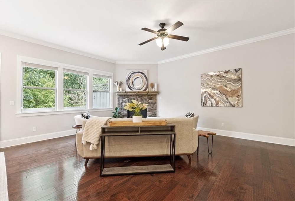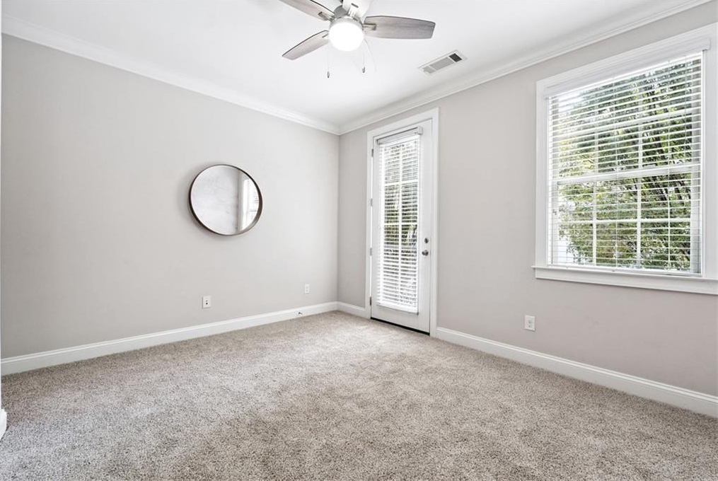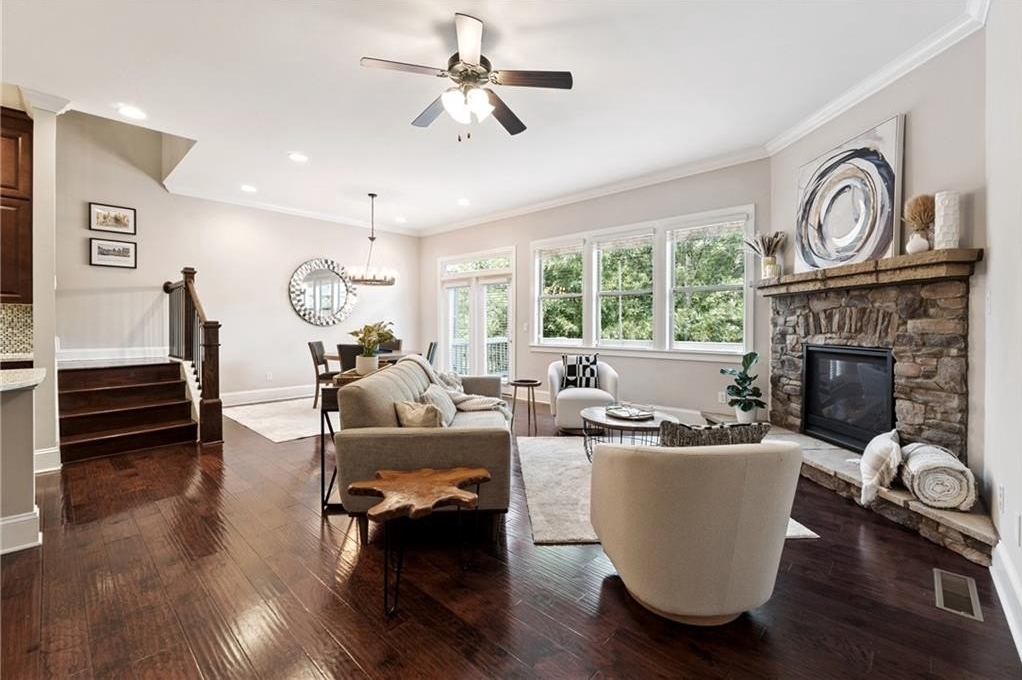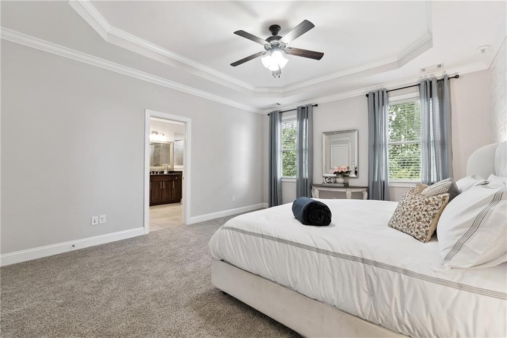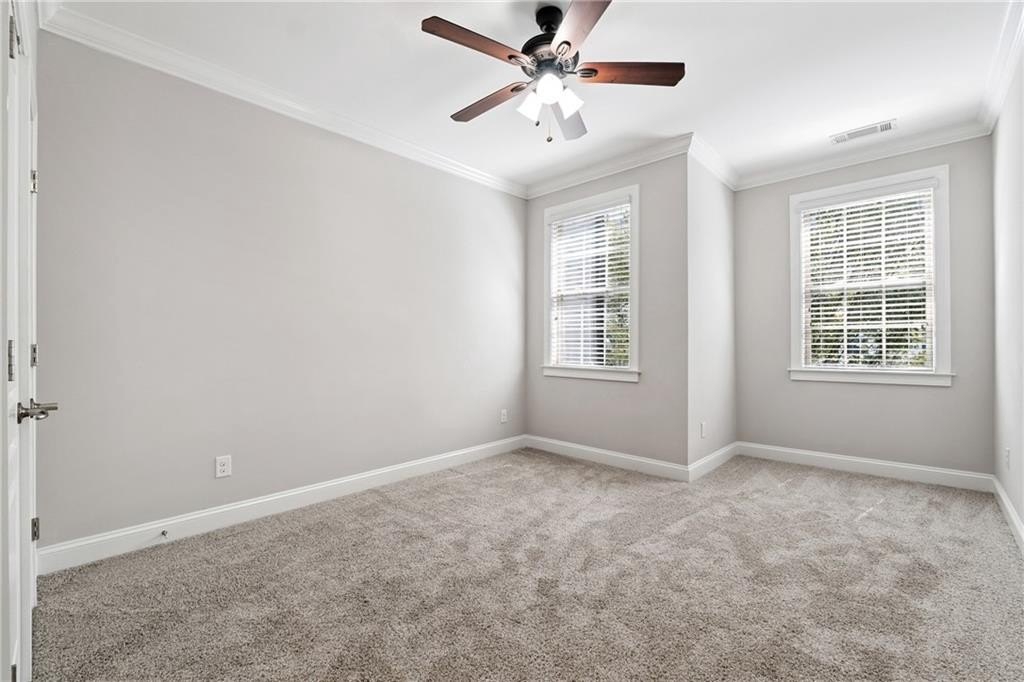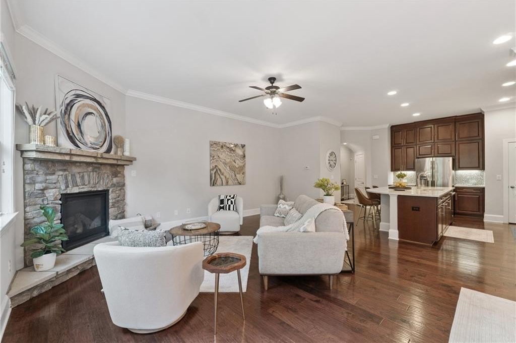 Welcome to your new home in the sought-after gated community of Towns at Breton Ridge! Just a quarter mile from The Battery and Truist Park, this luxurious 4-bedroom, 3.5-bath townhouse offers quick access to I-75 and I-285, making it perfect for both work and play. Step inside this thoughtfully designed floor plan that has new carpet and fresh paint throughout. The gourmet kitchen features double-stacked cabinets with under-cabinet lighting, quartz countertops, stainless steel appliances (including a refrigerator), double ovens with warming drawer, motion-sensor faucet, and a pantry with ClosetMaid shelving. The lower level offers a spacious fourth bedroom, full bath, and versatile living space—ideal for an in-law suite, playroom, or media room. Enjoy the outdoor patio and deck with a wooded view. Underdecking installed in 2022. Upstairs, a flexible loft area provides the perfect spot for a home office or additional sitting room. The laundry room is conveniently located on the upper level with generous storage. All full bathrooms are finished with tile floors and granite countertops, adding to the home’s upscale feel. Additional highlights include low Cobb County taxes, ample storage throughout, and a one-step entry from the garage for easy access. Move-in ready and waiting for you—don’t miss the opportunity to make this stunning home your own!