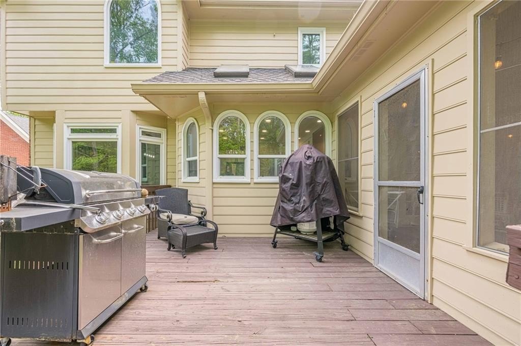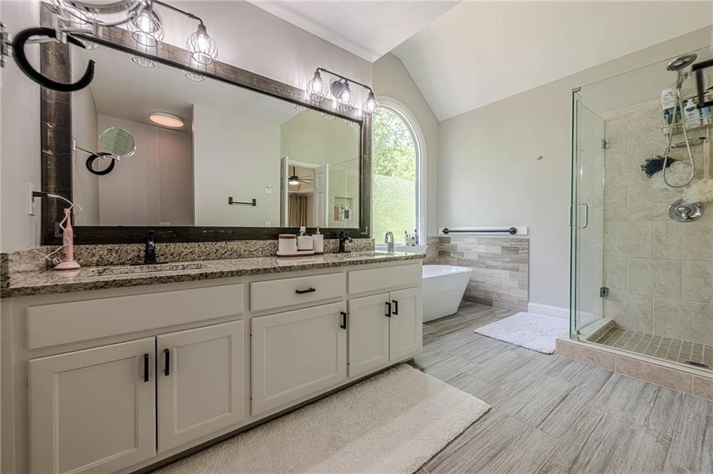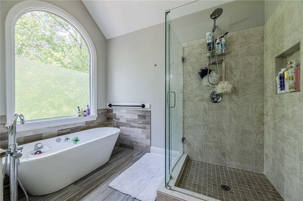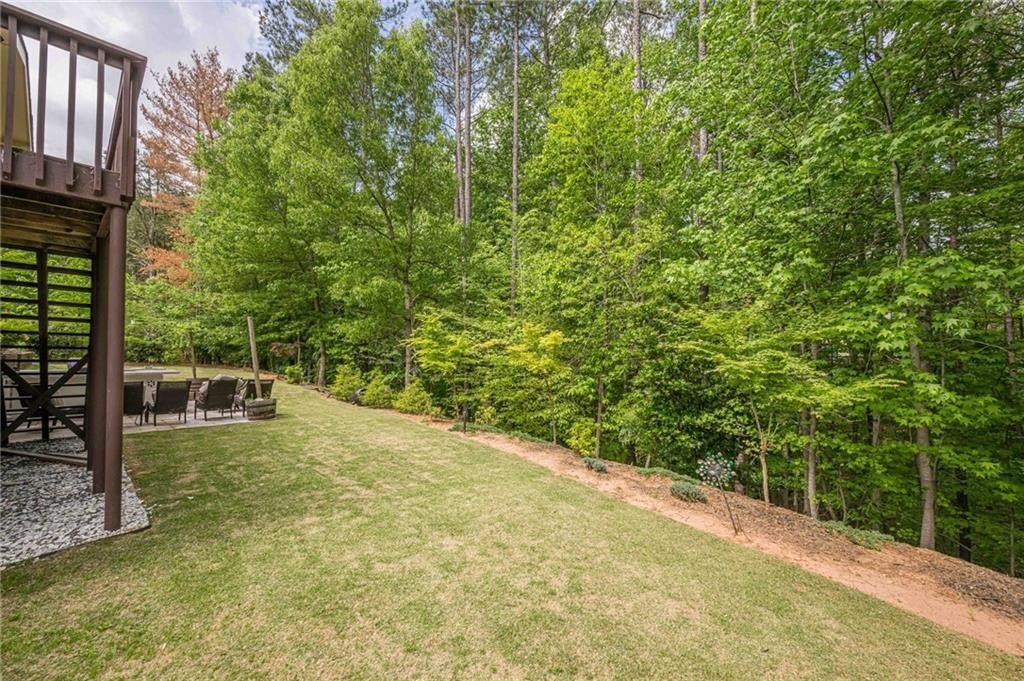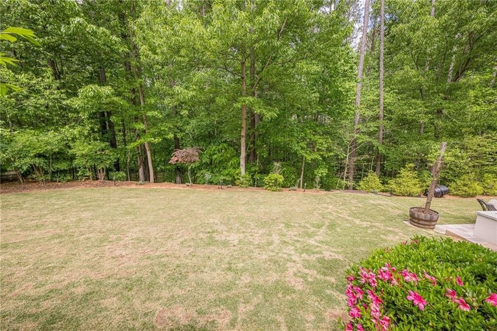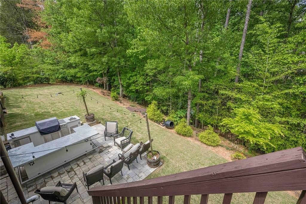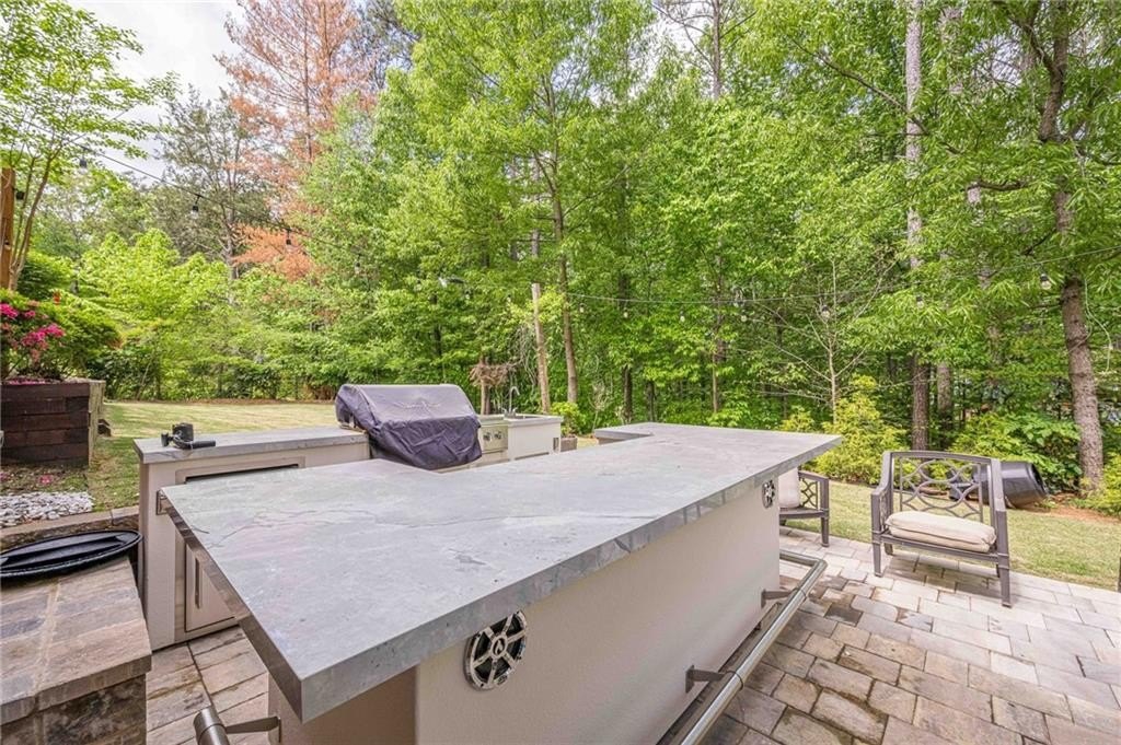 Outdoor living is a delight with a wooded backyard showcasing beautiful Japanese maples and a tranquil stream. The newly installed pavers and lush Zoysia sod create an ideal setting for relaxation and gatherings. An outdoor kitchen enhances your entertaining options, while Volt landscape lighting and Ring spotlights add both elegance and security. For electric vehicle owners, a dedicated 50amp/240volt outlet is conveniently located in the garage for easy charging.