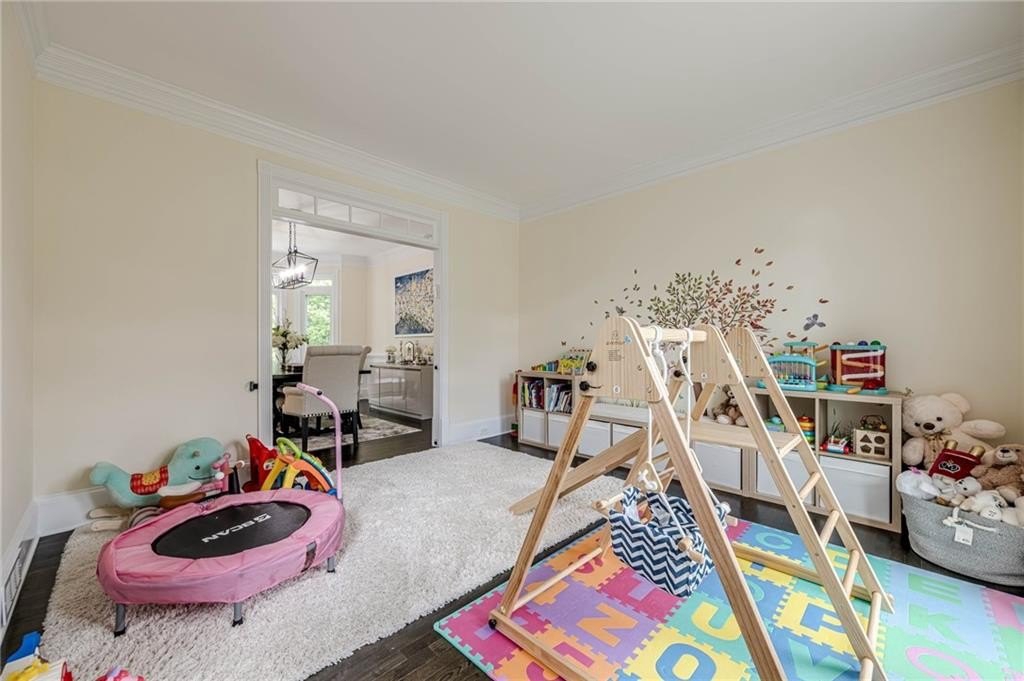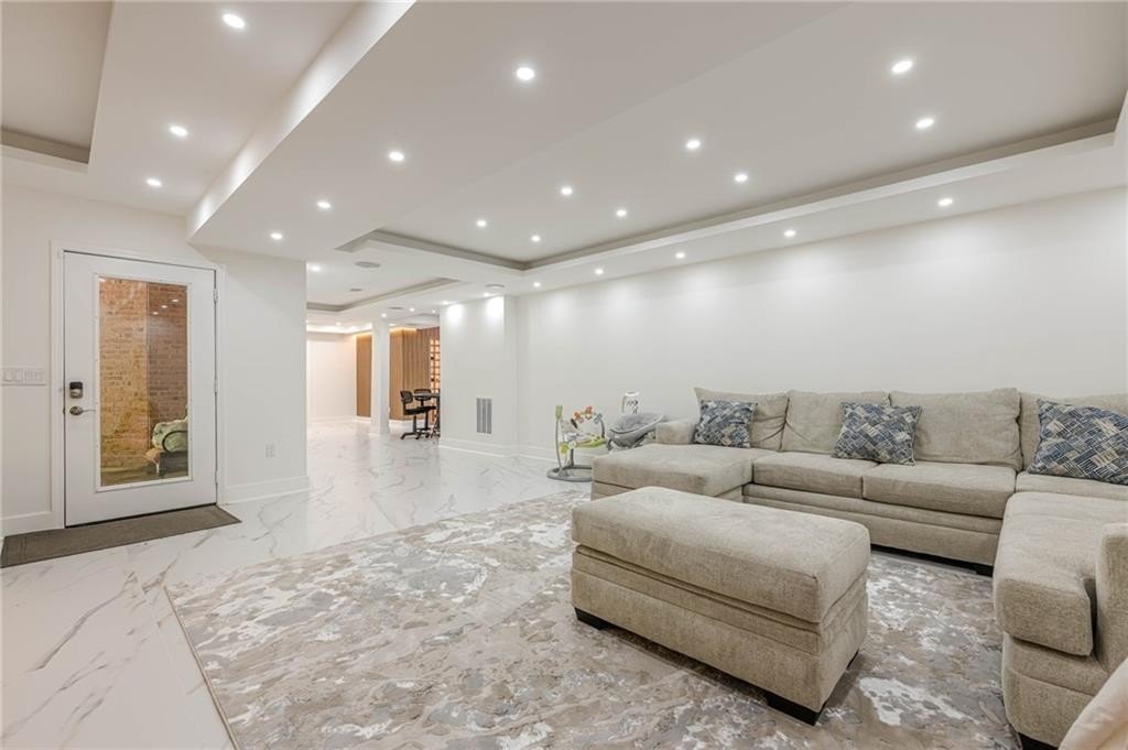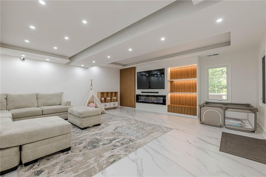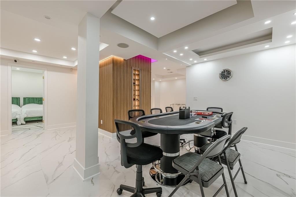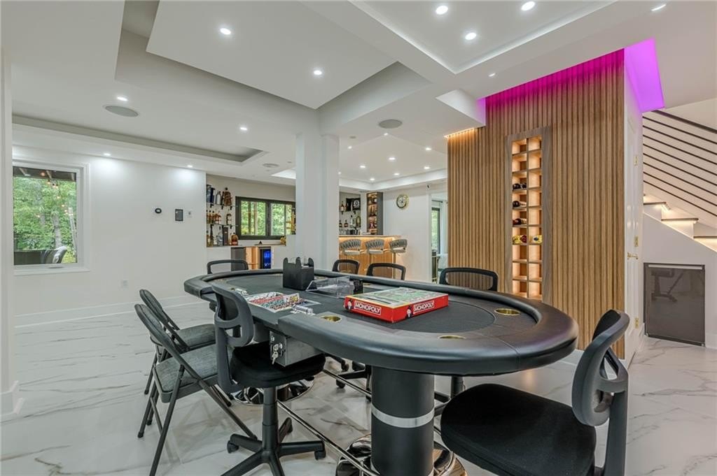 The finished terrace level expands the living space with two of the six bedrooms, a stylish bar area perfect for entertaining, and a spacious recreation zone for leisure and fun.