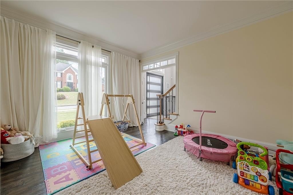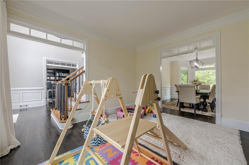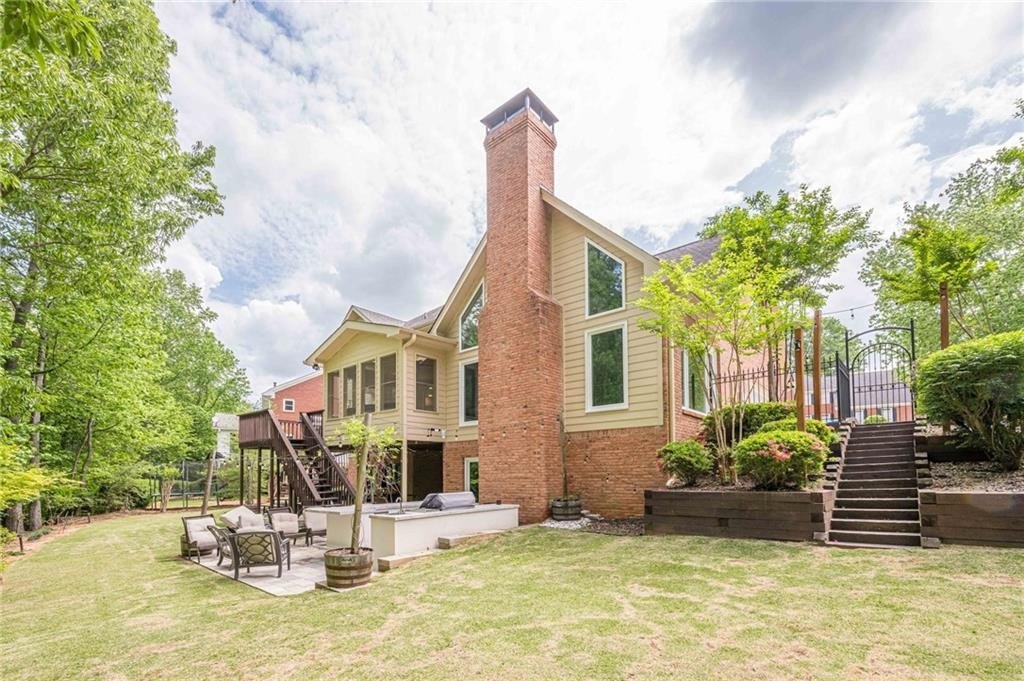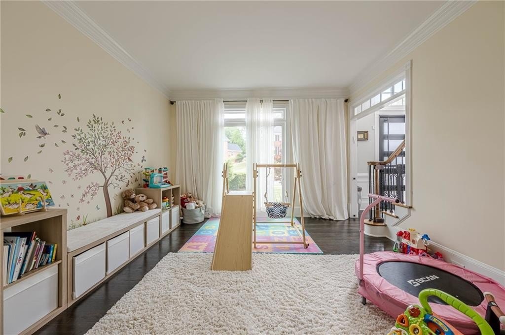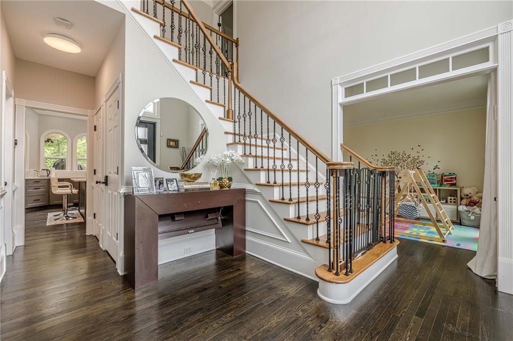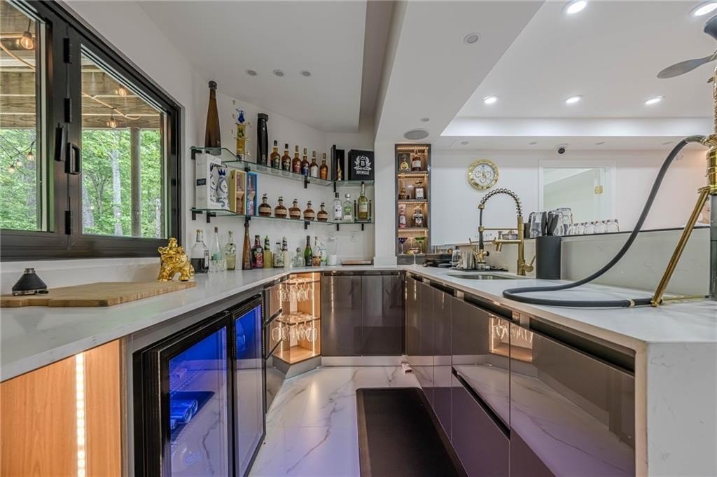 The finished terrace level expands the living space with two of the six bedrooms, a stylish bar area perfect for entertaining, and a spacious recreation zone for leisure and fun.