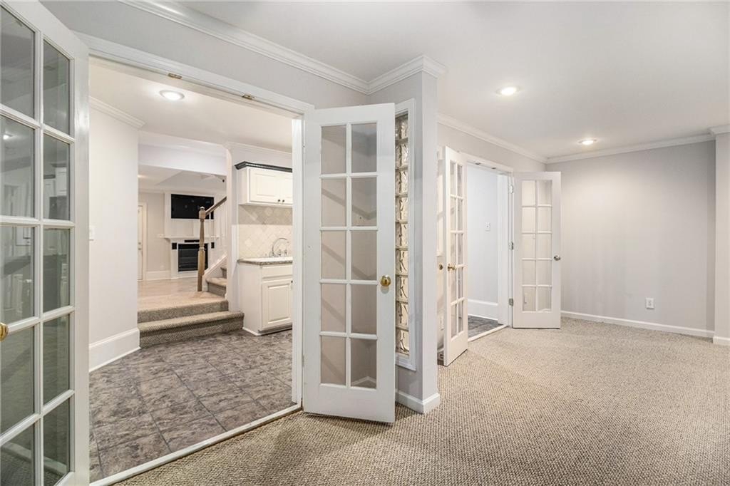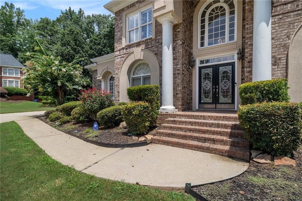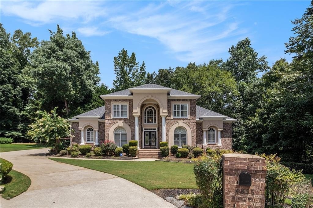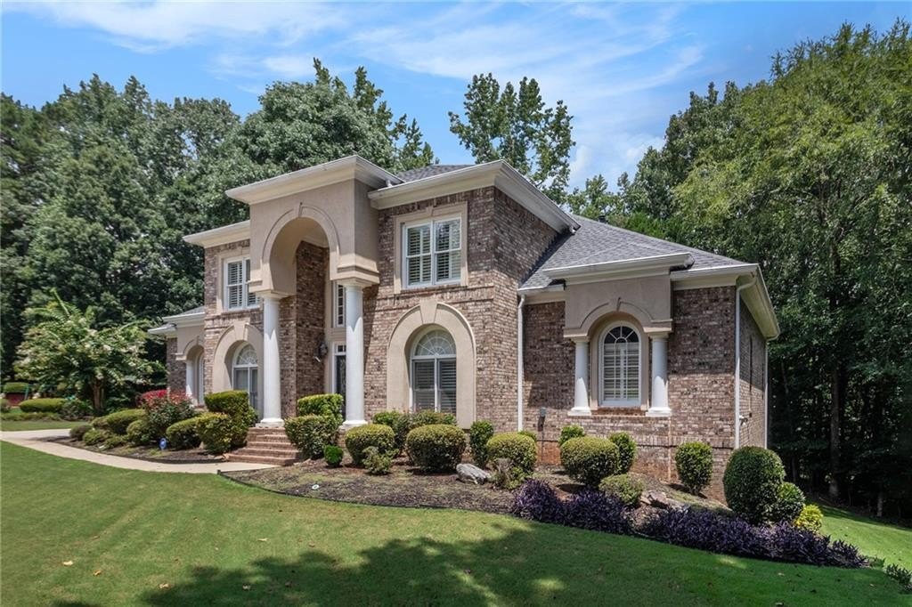 Stately three-sided brick home on a full finished basement, ideally situated in a quiet cul-de-sac. The property features a spacious three-car side-entry garage and a well-designed floor plan offering both functionality and elegance. Inside, you'll find a private office, a formal dining room, and an eat-in kitchen with solid surface countertops—perfect for everyday living and entertaining. The main-level primary suite includes two walk-in closets and a luxurious en-suite bathroom with dual vanities, a separate shower, and a whirlpool tub. Upstairs, there are three additional generously sized bedrooms. The fully finished basement adds even more living space with a second kitchen, a dining area, a cozy bonus room with an electric fireplace, an additional bedroom, a full bathroom, and multiple flex rooms ideal for a home gym, media room, or guest space. Enjoy outdoor living with a spacious deck and patio—perfect for relaxing or hosting gatherings.