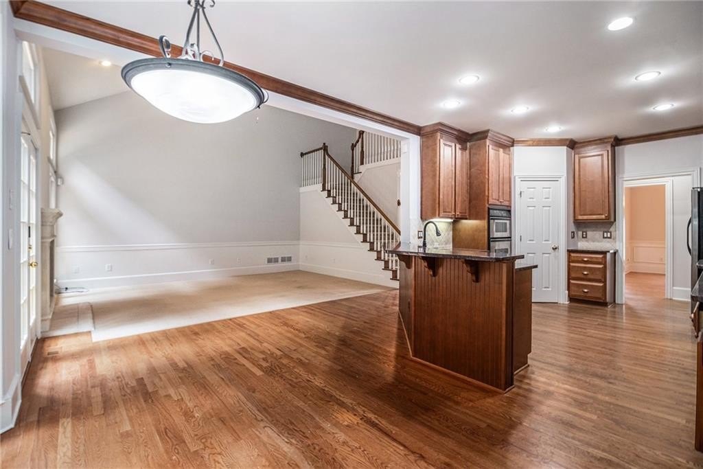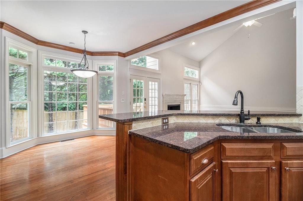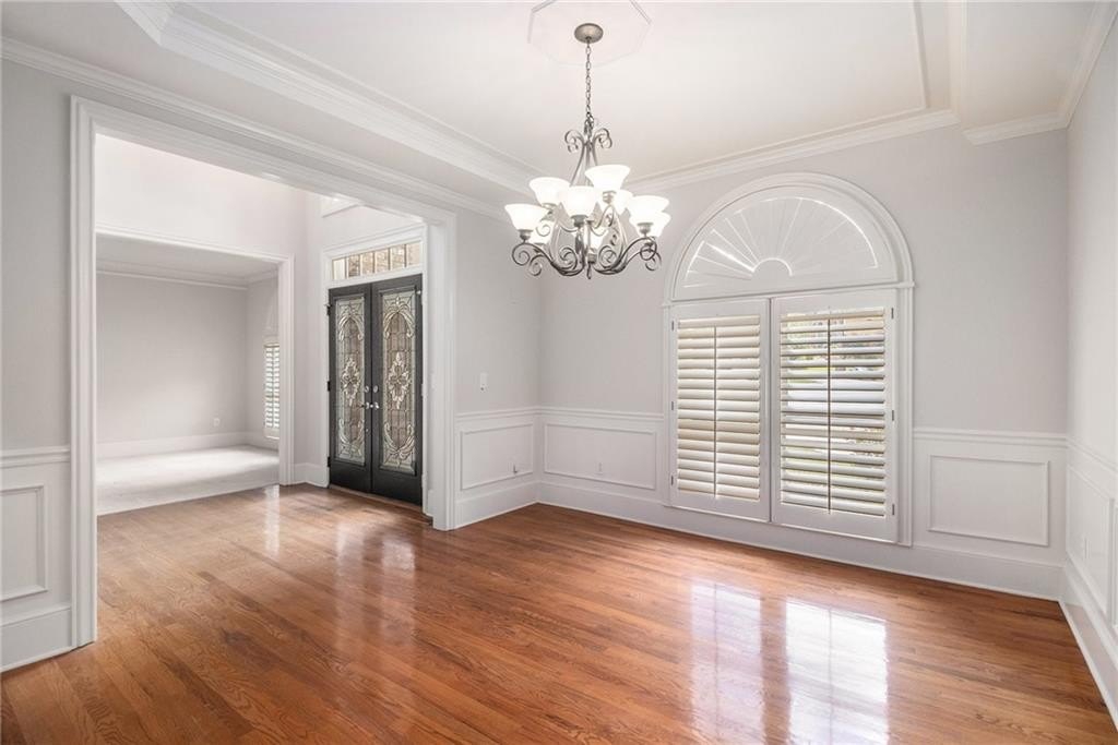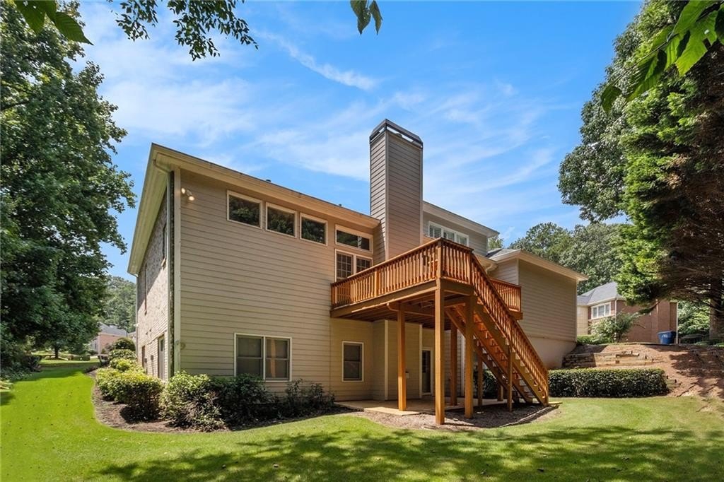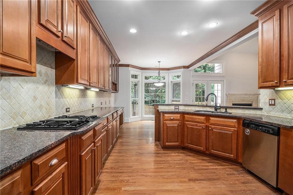 Stately three-sided brick home on a full finished basement, ideally situated in a quiet cul-de-sac. The property features a spacious three-car side-entry garage and a well-designed floor plan offering both functionality and elegance. Inside, you'll find a private office, a formal dining room, and an eat-in kitchen with solid surface countertops—perfect for everyday living and entertaining. The main-level primary suite includes two walk-in closets and a luxurious en-suite bathroom with dual vanities, a separate shower, and a whirlpool tub. Upstairs, there are three additional generously sized bedrooms. The fully finished basement adds even more living space with a second kitchen, a dining area, a cozy bonus room with an electric fireplace, an additional bedroom, a full bathroom, and multiple flex rooms ideal for a home gym, media room, or guest space. Enjoy outdoor living with a spacious deck and patio—perfect for relaxing or hosting gatherings.