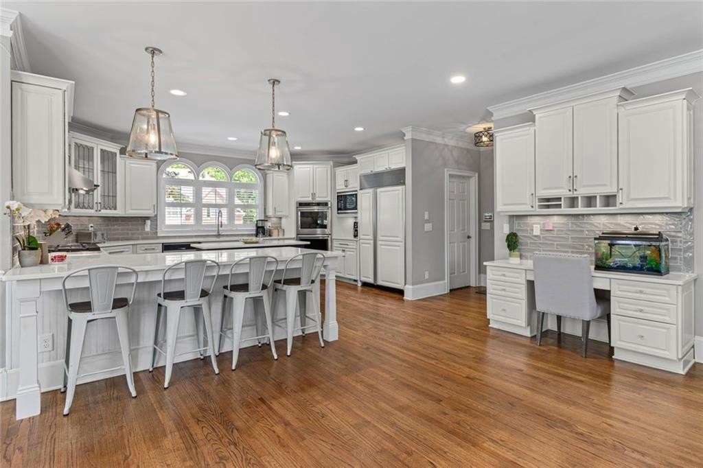 Welcome to this exceptional home offering 7 bedroom, 6.5 baths, an oversized bedroom & bathroom on the main & a finished terrace, in the highly sought after Crooked Creek gated golf community, in Milton, with top ranked North Fulton schools! This magnificent opportunity awaits discerning home buyers seeking a spacious & versatile living space that truly embodies comfort & luxury. As you approach this stunning property, you will immediately notice its captivating curb appeal on a cul-de-sac lot, featuring the architecturally detailed full brick facade, that perfectly blends traditional charm with contemporary elegance. Beautiful landscaping, including a high end turfed backyard, serves as a picturesque backdrop for gatherings and outdoor activities with family and friends. Upon entering the grand foyer, you are welcomed by an abundance of natural light pouring in and beautiful hardwood floors throughout, creating an open and airy atmosphere. To your right, a formal dining room accommodating 12+ guests and to your left, a large office with glass french door for privacy. Stepping into the expansive living area with a wall of windows and coffered ceilings, you will appreciate the seamless flow between the living area, breakfast/casual dining room, desk area and kitchen, allowing for a perfect balance of entertaining and intimate gatherings. The warm, inviting palette of the interior design is complemented by tasteful finishes. Impeccably designed with a modern touch, the heart of this home lies in the gourmet kitchen, which is a chef's dream come true. Featuring a generous layout, an abundance of cabinetry, the large island, an oversized custom walk in pantry, and high-end appliances including a Zub-zero paneled refrigerator and large wine storage, this kitchen sets the stage for culinary creativity and open-concept dining experiences. The main floor is complete will an oversized guest room connected to a full bath, as well as you will appreciate the half bath on the main. As you wander upstairs, you will discover the oversized luxurious owner's suite with vaulted ceilings and sitting room, then the exquisite bathroom with it's oversized high end tiled shower, soaking tub, the abundance of counter space and double vanities, that is then complemented with the expansive double sided closet. Upstairs you will also find an additional 4 spacious bedrooms that offer a sanctuary for rest and rejuvenation. Each bedroom is designed with comfort in mind, providing ample closet space and easy access to well-appointed bathrooms. One en-suite. The welcoming and functional floor plan continues as you head to the expansive terrace level that offers high ceilings and an abundance of natural light. You will find a beautiful full bathroom, an inviting large wet bar to gather at that includes a sink & mini refrigerator, an oversized theater room (new projector & screen remain), a separate living/gaming/tv room and 2 flex rooms that would make great bedrooms/offices/gyms/etc. The outdoor space is a veritable paradise, with a beautifully designed new deck that beckons for alfresco dining and relaxation. The backyard is a private oasis, perfect for entertaining guests or unwinding after a long day. The community offers fabulous resort-style amenities, to include the gated entrance with 24-hour security, an 18 hole golf course, beautiful clubhouse with meeting rooms/ catering kitchen/bar, 10 lighted tennis courts & 4 lighted pickleball courts, basketball court, Jr. Olympic-sized pool with a splash pad & water slide & playground. Crooked Creek is conveniently located near downtown Alpharetta to include an abundance of shopping at dining at Halcyon, Avalon, Crabapple as well as parks and Ga 400. This home is a must-see!