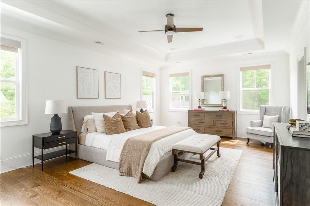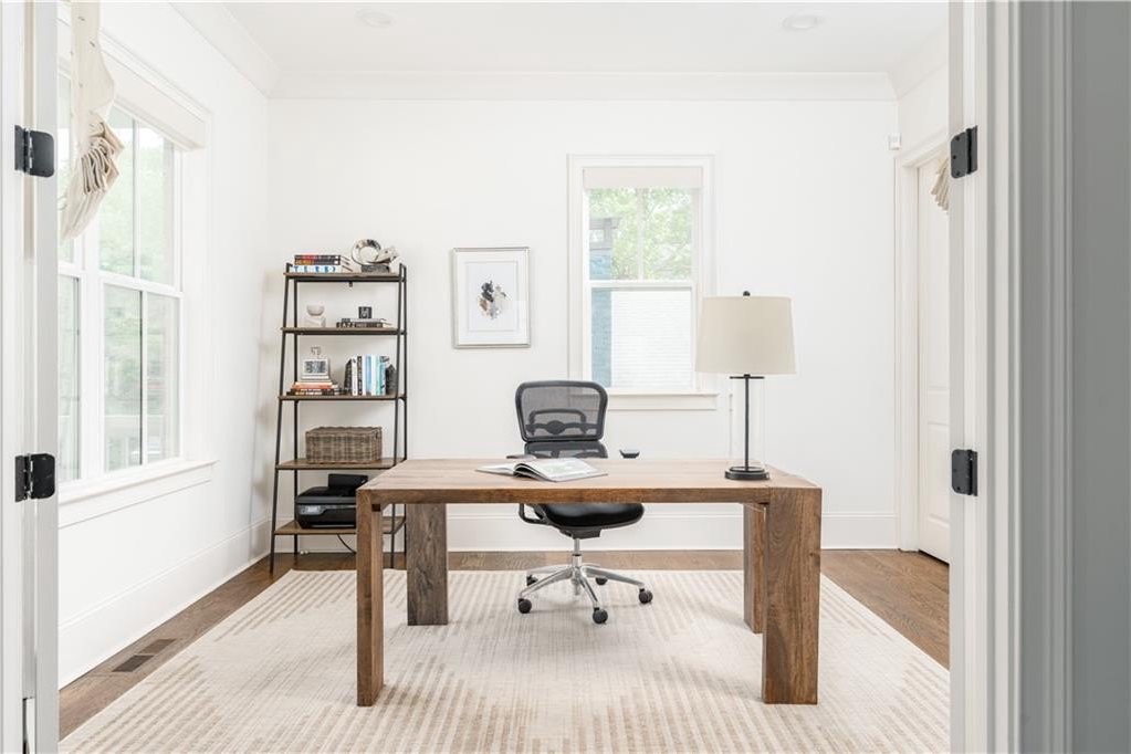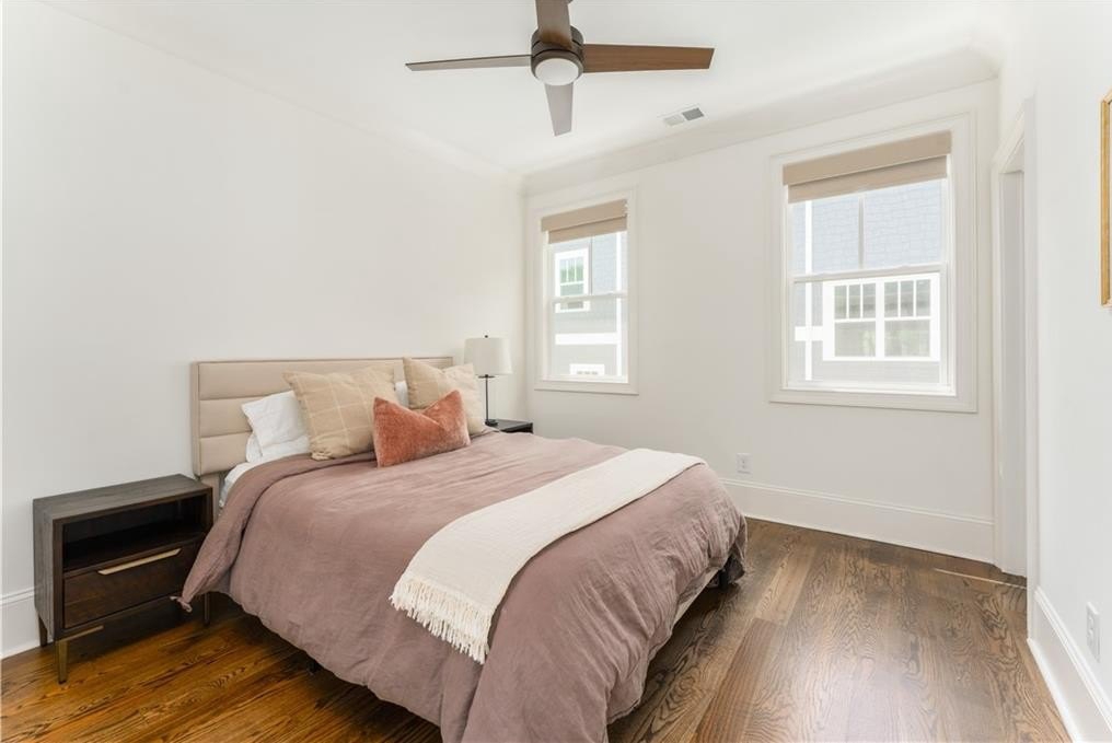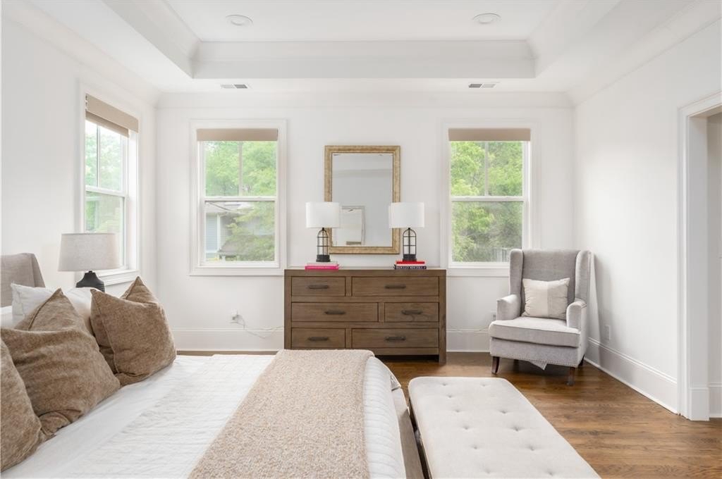 Perfectly positioned only a 1/2 mile to both Lake Claire and Candler Park, perched among the tree lined streets of the highly desirable idyllic neighborhood of Lake Claire, sits 425 Harold Avenue, a newer construction craftsman only moments to all the city has to offer, yet nestled on one of the best streets in a vibrant, close-knit community! Harold Avenue is a quiet, dead-end street with no cut through traffic, which is exceptionally hard to find intown! At only 2 years old, this meticulously maintained home lives and feels like brand new construction! Welcoming curb appeal, complimented by a classic brick water table and a quintessential southern front porch highlighted by gas lanterns invite you in. Enter to a stately interior showcasing hardwood floors throughout both the main and upper level, soaring 10ft ceilings, abundant natural light, Acadia custom window treatments and a neutral palette. Flanking the foyer on the right is a spacious dining room accentuated by timeless wood paneling that comfortably seats 12+ guests, and lining the foyer on the left is a bedroom currently being used as an office, which is adjoined by a full bathroom. As you flow towards the family room, you will pass a built-in mud bench furnishing opportune storage space. Enjoy a generously sized family room presenting a fireplace surrounded by built-ins that is open to the kitchen. Relish in your dream kitchen equipped with an immensely sized island that's just shy of 13ft long, marble counters, Thor appliances, gas range with double oven, organic textured subway tile stretching to the ceiling and custom cabinetry with significant drawer space helping you avoid the hassle of constantly maneuvering to reach items stowed away in the back of cabinets. Access to the back deck, which overlooks a level and grassy backyard, is conveniently located off the kitchen providing ease for grilling out and dining al fresco. A butler’s pantry connecting the kitchen to the dining room features marble counters, a sink, wine fridge and pantry with custom shelving and room for a second refrigerator! Faultless functionality between the kitchen, dining and family room makes everyday living and entertaining a breeze! Retreat upstairs to a sizable primary bedroom with tray ceiling, two closets with custom shelving and spa-like ensuite with two vanities, water closet, stand alone soaking tub and large shower. Three roomy bedrooms, two of which are connected by a shared bathroom, and a decently sized laundry room complete the upper level. Unfinished space on the terrace level offers a fantastic storage or an amazing opportunity to add a flex area, media room, secondary living space, bedroom or additional office. An extra long driveway easily fits 3-4 cars and a rare oversized 2.5-car garage provides even more room for storage or gym space. Harold Avenue allows street parking on both sides, which is another major plus, and excellent for guests or a quick pit stop when you need to run inside for something your forgot! Your parking options are endless! Unbeatable, sought after location minutes to shopping, dining, multiple parks including Lake Claire Park with playground and tennis, pickleball and basketball courts, Candler park with golf course, playground, pool, tennis and basketball courts, Druid Hills Golf Club, the Beltline, Ponce City Market, Krog Market, top rated schools, the airport, MARTA and major highways! Up to $6k in lender paid closing costs available when working with Logan Hinton at Ameris Bank to purchase this property! Reach out for more details!