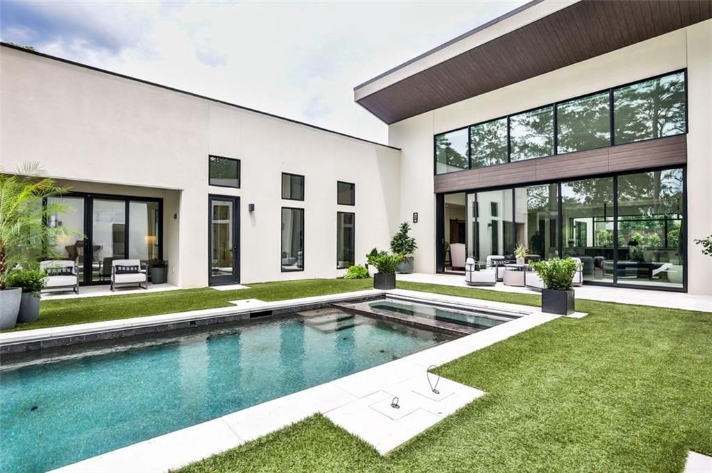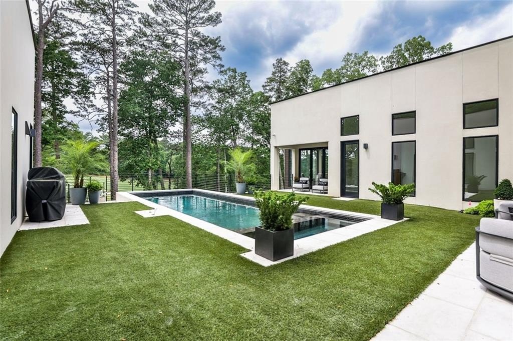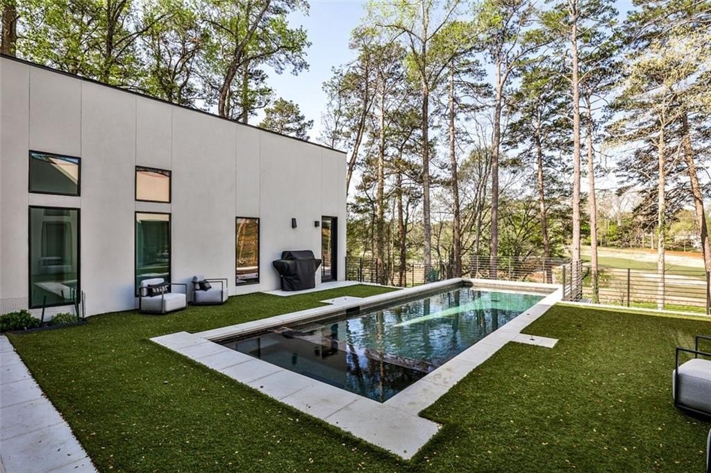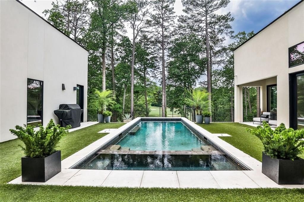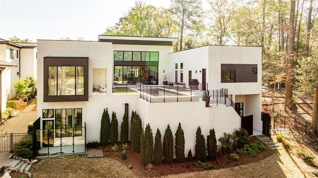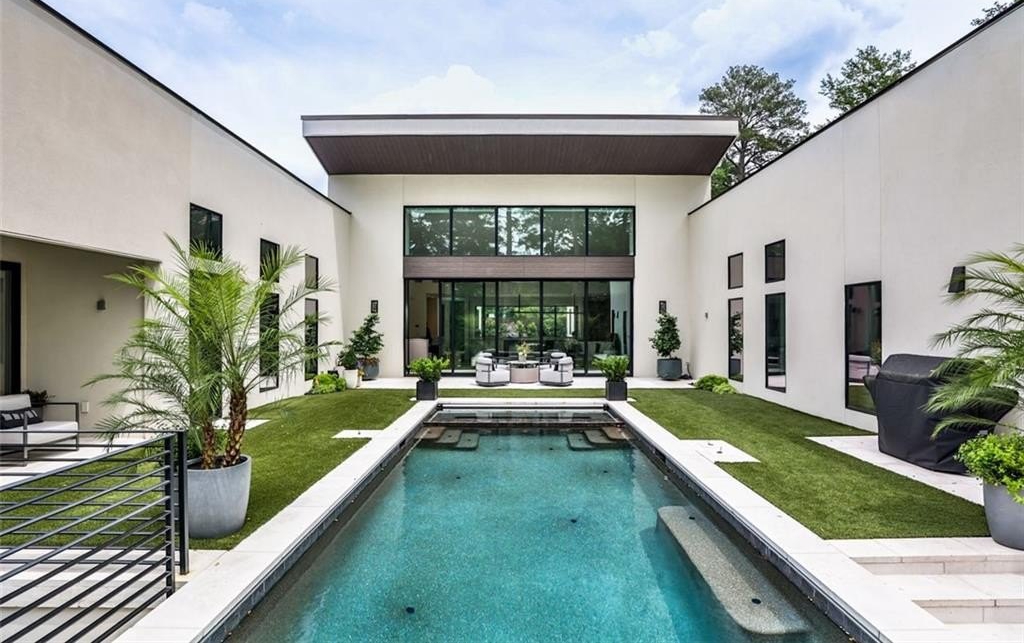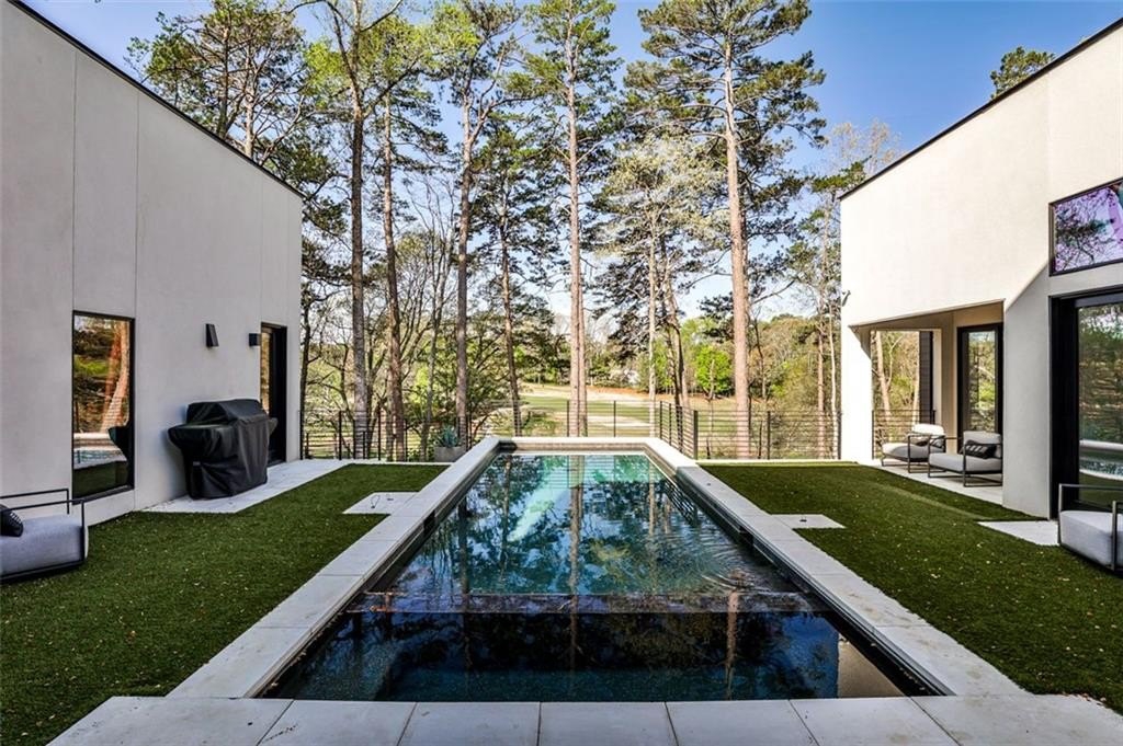 Welcome to this stunning contemporary gem, one of only 5 homes located in this exclusive Druid Hills enclave. The inviting, step-less foyer opens to a light-filled, sophisticated living space with high ceilings, art-filled gallery walls, wide oak floors and dining for 12+---the perfect setting for luxury entertaining —-and a full wall of Nano glass doors opens completely to showcase a large, plant-filled patio with outside seating and dining and gorgeous saltwater pool, offering breathtaking views of the 14th hole of the Druid Hills Golf Course. To open custom window treatments, turn on designer lighting or listen to music, simply ask Josh ai, the ultimate in-home automation system, to do it for you! The kitchen, overlooking a private garden, is a true chef’s paradise with a large center work and casual dining island, top of the line Gaggenau appliances, including refrigerator, freezer, induction stovetop with grill, 2 ovens, 2 dishwashers, built in coffee machine and coffee station, sub zero wine fridge and walls and walls of custom cabinetry PLUS a scullery with an additional sink and fridge. A 3-car garage leads to an informal foyer, perfect for coats and shoes, a large laundry room, and an awesome powder room. The right wing of the home features the private, primary suite, with stunning golf course views and pool access and an ensuite bath featuring a steam shower, tub, double sinks and seamless cabinetry. An enormous walk-in closet "room" completes the suite. The relaxing den features comfortable seating areas and state of the art media equipment and a “hidden” separate home office completes the right wing. The left wing contains 3 well-proportioned secondary bedrooms, each with its own ensuite bath and ample closets. The lower level, with high ceilings and space galore, is the perfect place to play— with an enormous game/recreation room, soundproofed music room, sun-filled home gym with 2-person sauna, studio- sized in- law or au pair suite with its own separate entrance, two full baths and plenty of unfinished space for storage or additional rooms. A high tech, enhanced state-of-the art security system, A Halo whole house water system and a generator are just a few of the extra enhancements in this one-of-a-kind home. This home has a SIGNIFICANT price adjustment -- originally priced at $6,995,000, making this an incredible buyer opportunity.