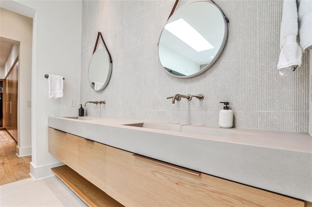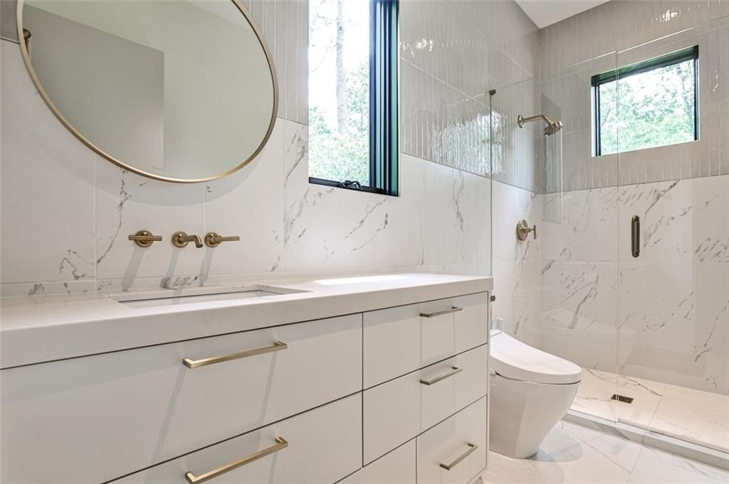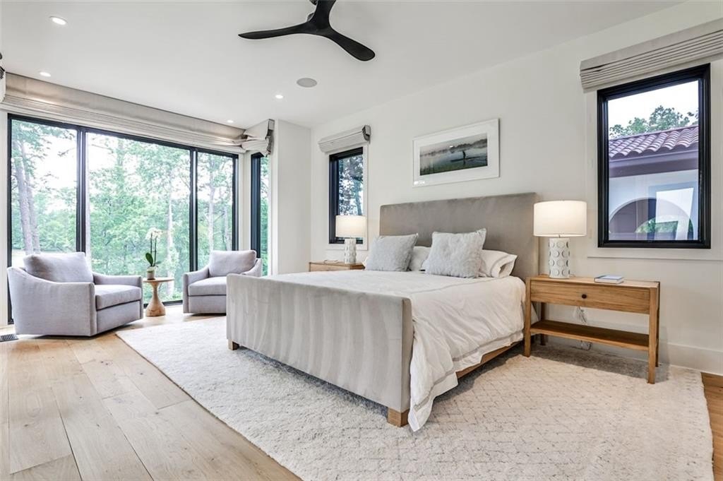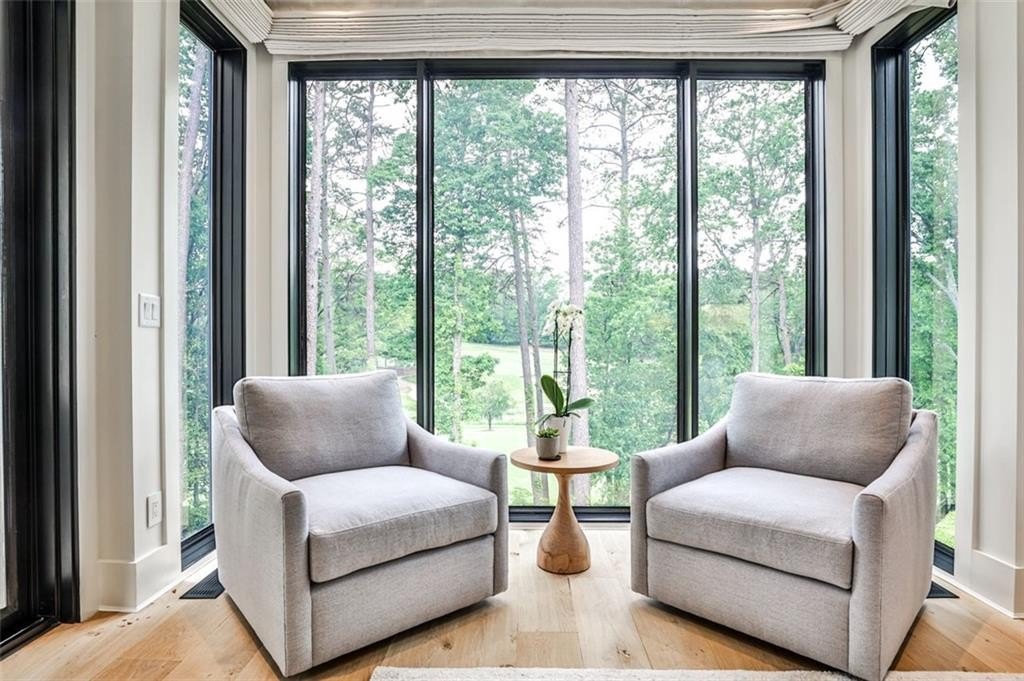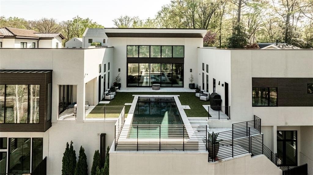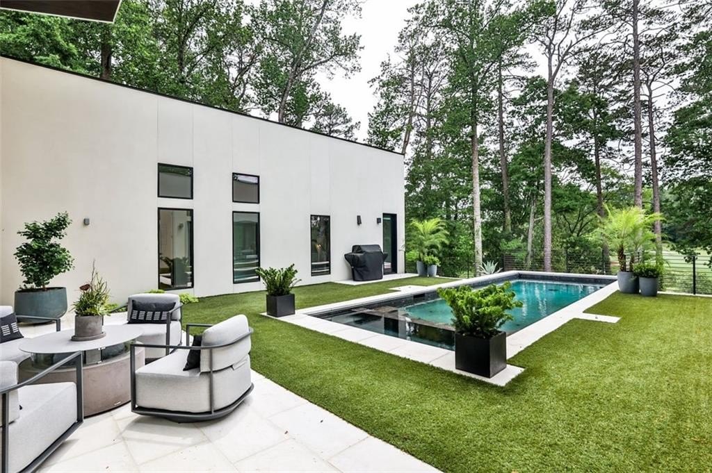 Welcome to this stunning contemporary gem, one of only 5 homes located in this exclusive Druid Hills enclave. The inviting, step-less foyer opens to a light-filled, sophisticated living space with high ceilings, art-filled gallery walls, wide oak floors and dining for 12+---the perfect setting for luxury entertaining —-and a full wall of Nano glass doors opens completely to showcase a large, plant-filled patio with outside seating and dining and gorgeous saltwater pool, offering breathtaking views of the 14th hole of the Druid Hills Golf Course. To open custom window treatments, turn on designer lighting or listen to music, simply ask Josh ai, the ultimate in-home automation system, to do it for you! The kitchen, overlooking a private garden, is a true chef’s paradise with a large center work and casual dining island, top of the line Gaggenau appliances, including refrigerator, freezer, induction stovetop with grill, 2 ovens, 2 dishwashers, built in coffee machine and coffee station, sub zero wine fridge and walls and walls of custom cabinetry PLUS a scullery with an additional sink and fridge. A 3-car garage leads to an informal foyer, perfect for coats and shoes, a large laundry room, and an awesome powder room. The right wing of the home features the private, primary suite, with stunning golf course views and pool access and an ensuite bath featuring a steam shower, tub, double sinks and seamless cabinetry. An enormous walk-in closet "room" completes the suite. The relaxing den features comfortable seating areas and state of the art media equipment and a “hidden” separate home office completes the right wing. The left wing contains 3 well-proportioned secondary bedrooms, each with its own ensuite bath and ample closets. The lower level, with high ceilings and space galore, is the perfect place to play— with an enormous game/recreation room, soundproofed music room, sun-filled home gym with 2-person sauna, studio- sized in- law or au pair suite with its own separate entrance, two full baths and plenty of unfinished space for storage or additional rooms. A high tech, enhanced state-of-the art security system, A Halo whole house water system and a generator are just a few of the extra enhancements in this one-of-a-kind home. This home has a SIGNIFICANT price adjustment -- originally priced at $6,995,000, making this an incredible buyer opportunity.