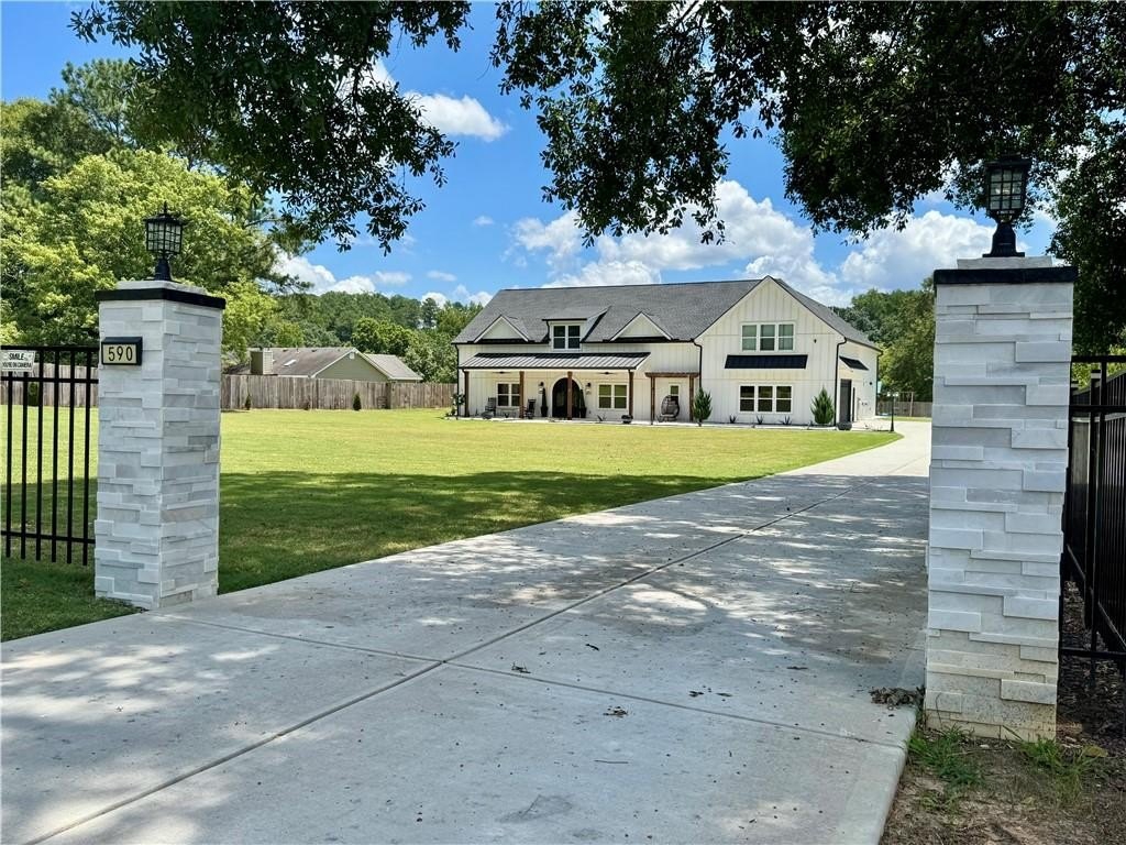 Welcome to this stunning modern home in the highly sought-after location of Fayetteville GA. Conveniently, 10-minute drive to Trilith Studios, near dining, shopping, entertainment options, 4-minute ride to Fayetteville Pavilion, and walking distance to Fayette County Schools. The no HOA property offers endless possibilities, including space for a pool and a private outdoor oasis. This open concept custom home features over 5,000 square feet, 5 beds and 4 full baths. The kitchen is a dream, including high-end appliances, 8 burner gas stove, double oven, hidden pantry, large island with waterfall sides, farm sink, custom white cabinets, and beautiful lighting. On the main level there are 4 bedrooms and 3 baths to include the primary suite that offers a large walk-in closet with designer shelving, high end countertops in the bathroom, and an array of detailed finishes. Upstairs, there is 1 additional bedroom, a full bathroom, and an oversized loft space that can be used as a game room, theater room, in-law suite or whatever one may desire. Exterior has a fenced yard for privacy, electric vehicle charging station, large green space, basketball court, playground, and a shed with power for the perfect flex space.