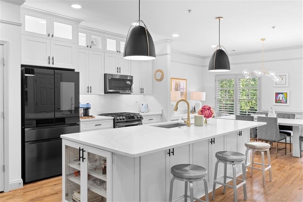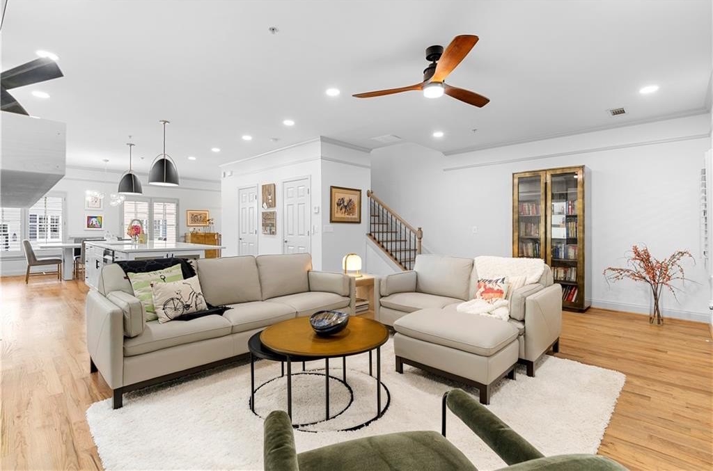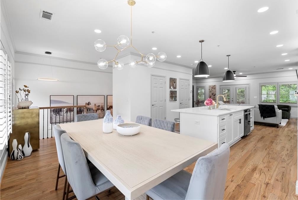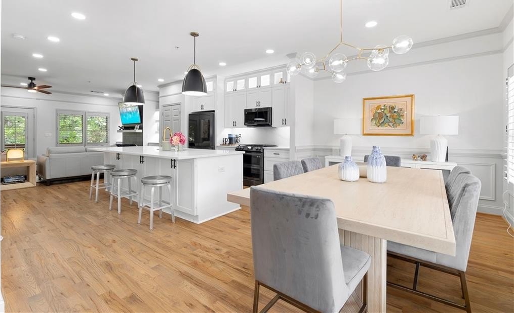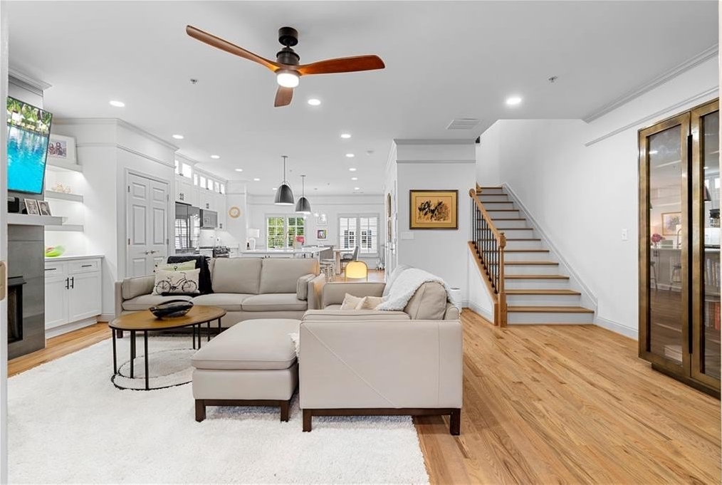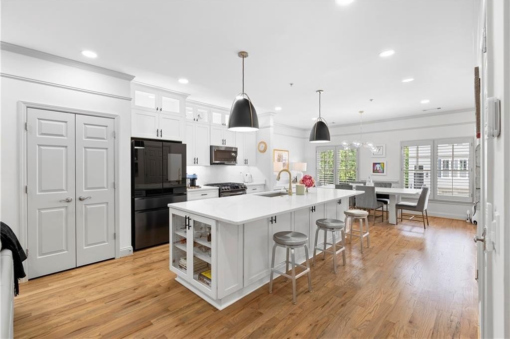 MAJOR PRICE REDUCTION ON COMPLETELY RENOVATED Luxury End-Unit Townhome – Walk to Downtown Alpharetta & Avalon! Perfectly situated in the heart of Alpharetta, this stunning 4-bedroom, 3.5-bath 2 car garage fee-simple townhome offers an unbeatable combination of location, modern upgrades, and thoughtful design. Just steps from downtown, Avalon, top restaurants, shopping, parks, and The Alpha Loop, this home provides both convenience and elegance. Inside, three levels of beautifully refinished living space feature rich 3/4-inch hardwood floors throughout, including both staircases. The completely renovated kitchen is a true showpiece, with brand-new cabinetry, a striking 13-foot custom island with extra storage, quartz countertops, and black stainless steel appliances. A custom-designed walk-in pantry with hardwood organizers ensures effortless organization, and a second pantry for additional storage. The spacious dining area flows seamlessly into the inviting family room, where a modern tiled fireplace is flanked by custom built-in bookcases. The primary suite feels like a private retreat, with its raised ceiling, custom closet system, and a fully remodeled spa-like bath featuring new tile walls, vanities, countertops, and fixtures. Each additional bathroom has been updated with high-end finishes, including new tile, sleek vanities, and designer lighting. The entry-level suite offers a large bedroom with an en-suite bath, perfect for guests or a private home office. Every inch of this home has been designed for comfort and style, with custom color-matched interior shutters on every window, upgraded lighting throughout, and an extended deck with a covered overhang—ideal for outdoor entertaining. The newly renovated laundry room features custom cabinetry and designer tile, while additional custom storage solutions enhance both the master bedroom and bathrooms. New HVAC, three-sided brick construction, and refreshed exterior lighting complete this move-in-ready masterpiece. With luxury upgrades, impeccable design, and a prime walkable location, this townhome is a rare opportunity in Alpharetta. HOA includes water/sewer and trash service! Don’t miss your chance to make it yours!