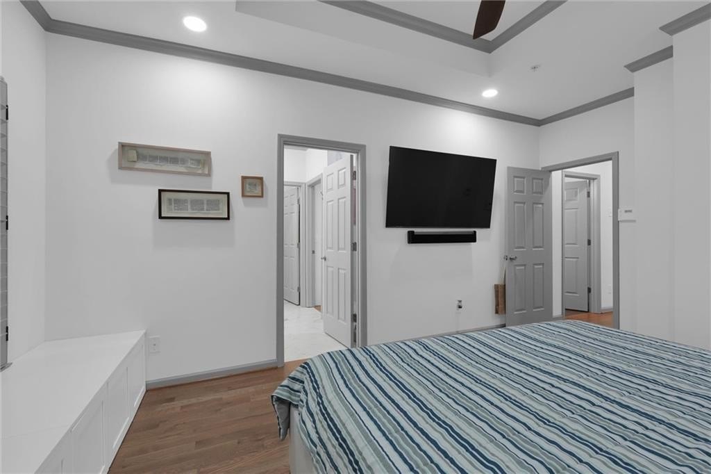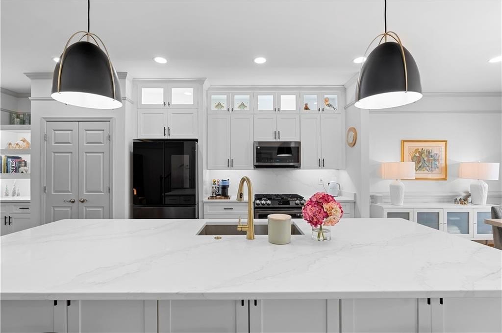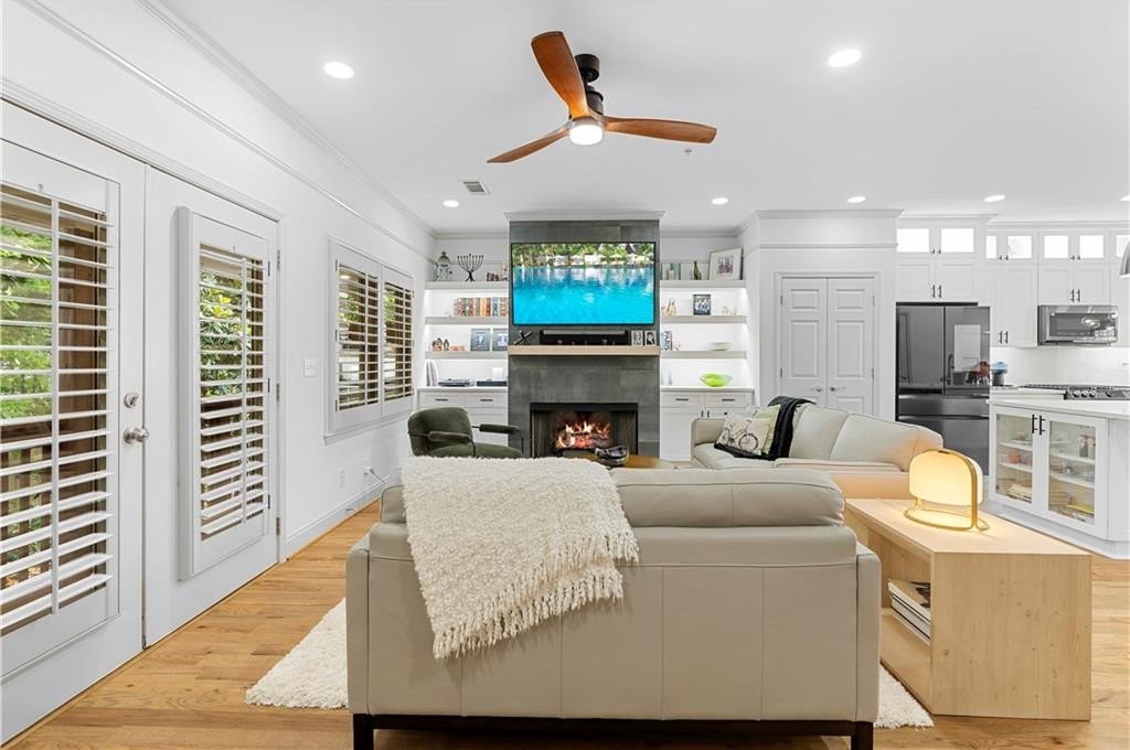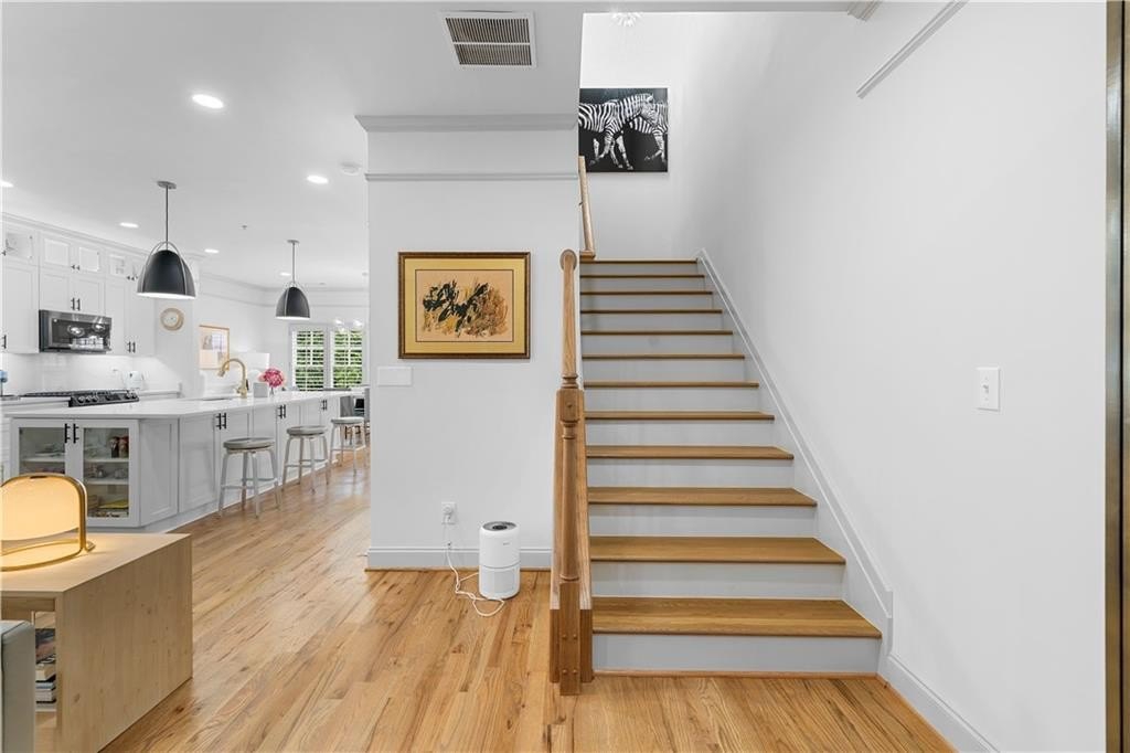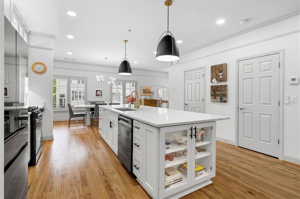 MAJOR PRICE REDUCTION ON COMPLETELY RENOVATED Luxury End-Unit Townhome – Walk to Downtown Alpharetta & Avalon! Perfectly situated in the heart of Alpharetta, this stunning 4-bedroom, 3.5-bath 2 car garage fee-simple townhome offers an unbeatable combination of location, modern upgrades, and thoughtful design. Just steps from downtown, Avalon, top restaurants, shopping, parks, and The Alpha Loop, this home provides both convenience and elegance. Inside, three levels of beautifully refinished living space feature rich 3/4-inch hardwood floors throughout, including both staircases. The completely renovated kitchen is a true showpiece, with brand-new cabinetry, a striking 13-foot custom island with extra storage, quartz countertops, and black stainless steel appliances. A custom-designed walk-in pantry with hardwood organizers ensures effortless organization, and a second pantry for additional storage. The spacious dining area flows seamlessly into the inviting family room, where a modern tiled fireplace is flanked by custom built-in bookcases. The primary suite feels like a private retreat, with its raised ceiling, custom closet system, and a fully remodeled spa-like bath featuring new tile walls, vanities, countertops, and fixtures. Each additional bathroom has been updated with high-end finishes, including new tile, sleek vanities, and designer lighting. The entry-level suite offers a large bedroom with an en-suite bath, perfect for guests or a private home office. Every inch of this home has been designed for comfort and style, with custom color-matched interior shutters on every window, upgraded lighting throughout, and an extended deck with a covered overhang—ideal for outdoor entertaining. The newly renovated laundry room features custom cabinetry and designer tile, while additional custom storage solutions enhance both the master bedroom and bathrooms. New HVAC, three-sided brick construction, and refreshed exterior lighting complete this move-in-ready masterpiece. With luxury upgrades, impeccable design, and a prime walkable location, this townhome is a rare opportunity in Alpharetta. HOA includes water/sewer and trash service! Don’t miss your chance to make it yours!