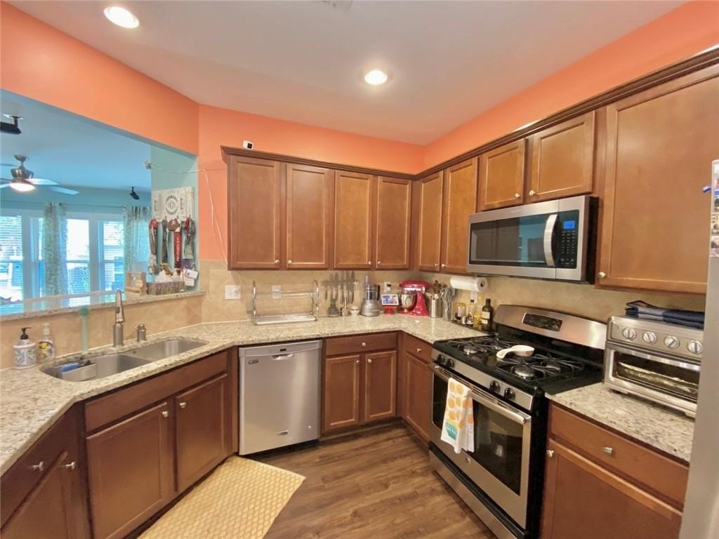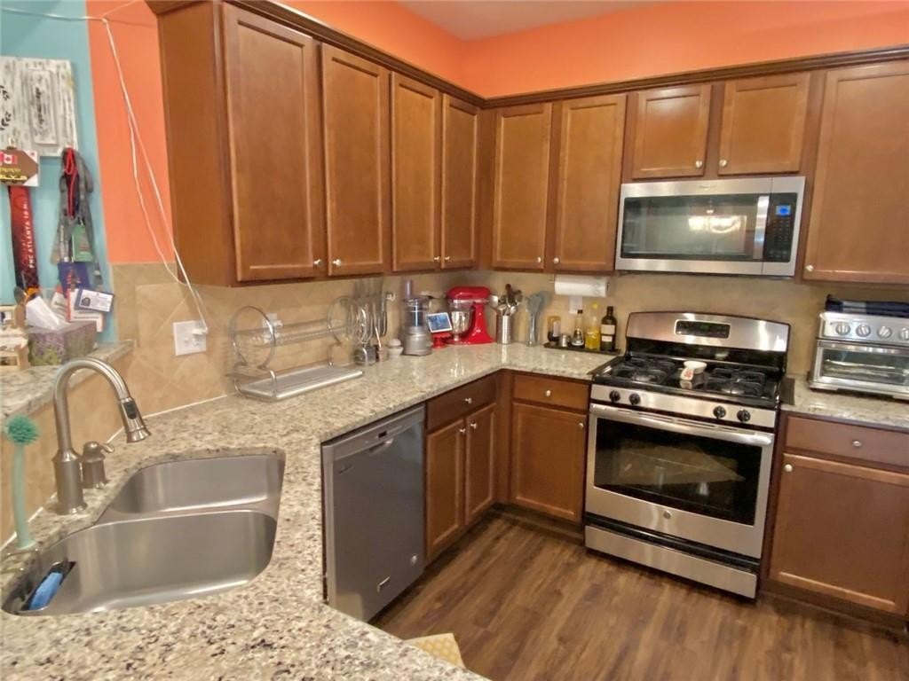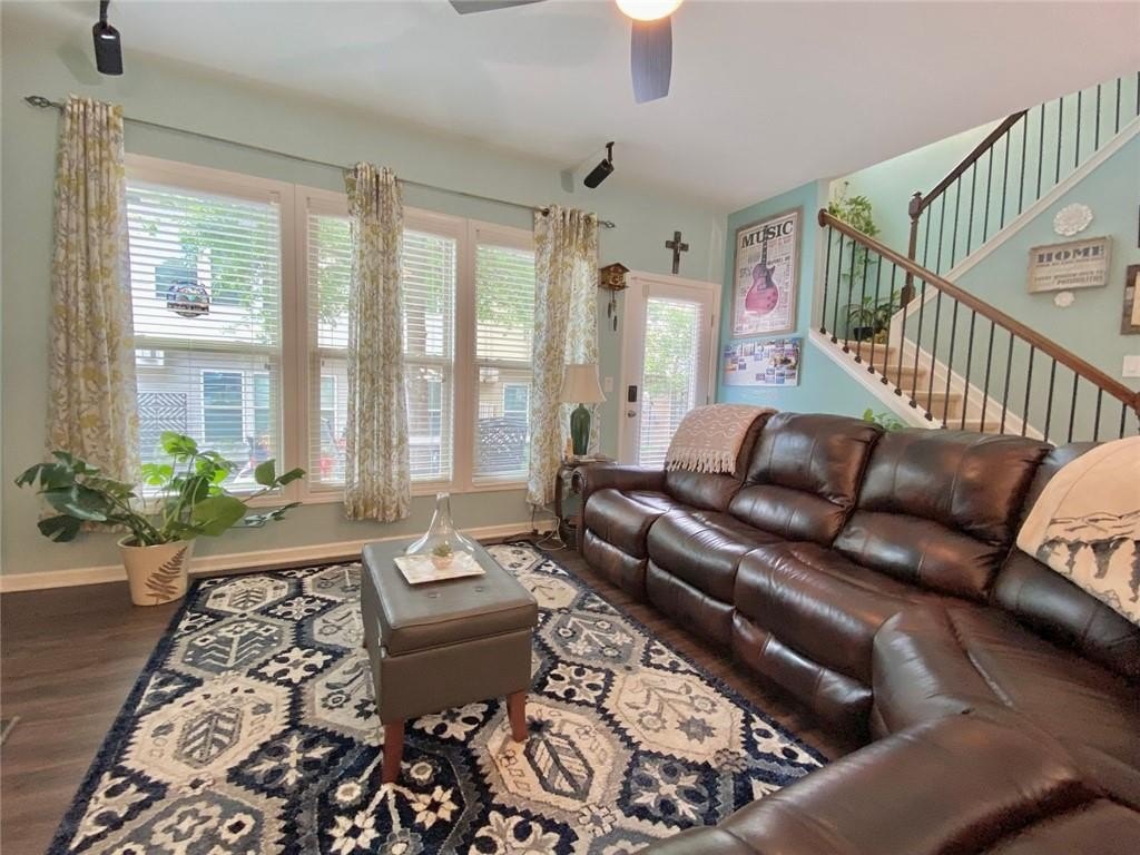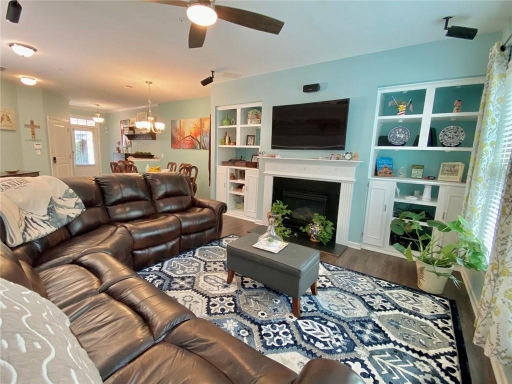 Welcome Home to Your Perfectly Located Townhome in Smyrna! This desirable end-unit brick townhome is tucked away on the quietest street in the community, offering peace, privacy, and charm. With its two-story layout and abundance of windows, it feels more like a single-family home—flooded with natural light throughout. Roomier than most: this home is about 100 SqFt larger than comparable townhouses. New fresh paint. Interior Highlights: Newer luxury flooring throughout the main level adds warmth and elegance. Contemporary kitchen with granite countertops, stainless steel appliances, and a full-size refrigerator. Open-concept living and dining area with a cozy fireplace—perfect for entertaining. Spacious loft/office area upstairs, ideal for remote work or a creative space. Laundry room conveniently located on the upper level. Bedrooms & Baths: Expansive primary suite with a soaking tub, separate shower, double vanity, and a large walk-in closet. Two additional generously sized bedrooms with a shared full bath. Outdoor & Community Features: Private back patio—perfect for relaxing, entertaining, or gardening. Access to community pool and clubhouse just steps away. HOA dues include water, sewer, trash, and more—an incredible value! Two-car garage plus ample guest parking. Location Perks: Live in one of Smyrna’s most convenient and sought-after locations, close to shopping, dining, parks, and major highways.